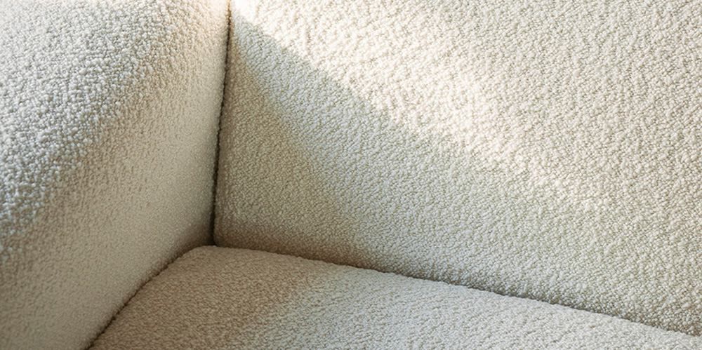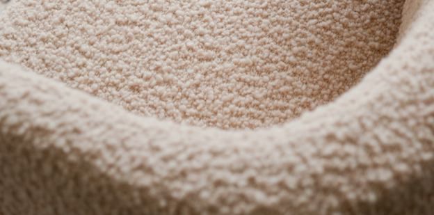 A soft wool bouclé fabric reminiscent of puffy clouds. An uneven surface and textural richness are the distinctive features of this fabric. The delicate colour palette, including natural tones and darker shades, enhances the intrinsic nature of wool