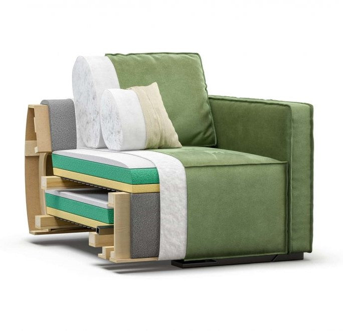 Filling: seat cushions — flexible polyurethane foam, BAYER, BASF (Germany), SHELL (Netherlands) raw materials, Interfoam (Ukraine) moulding, back cushions and throw pillows — Hollowfiber