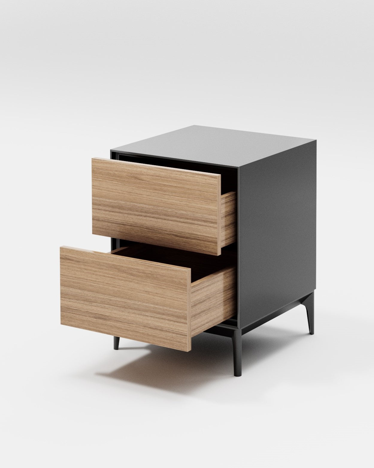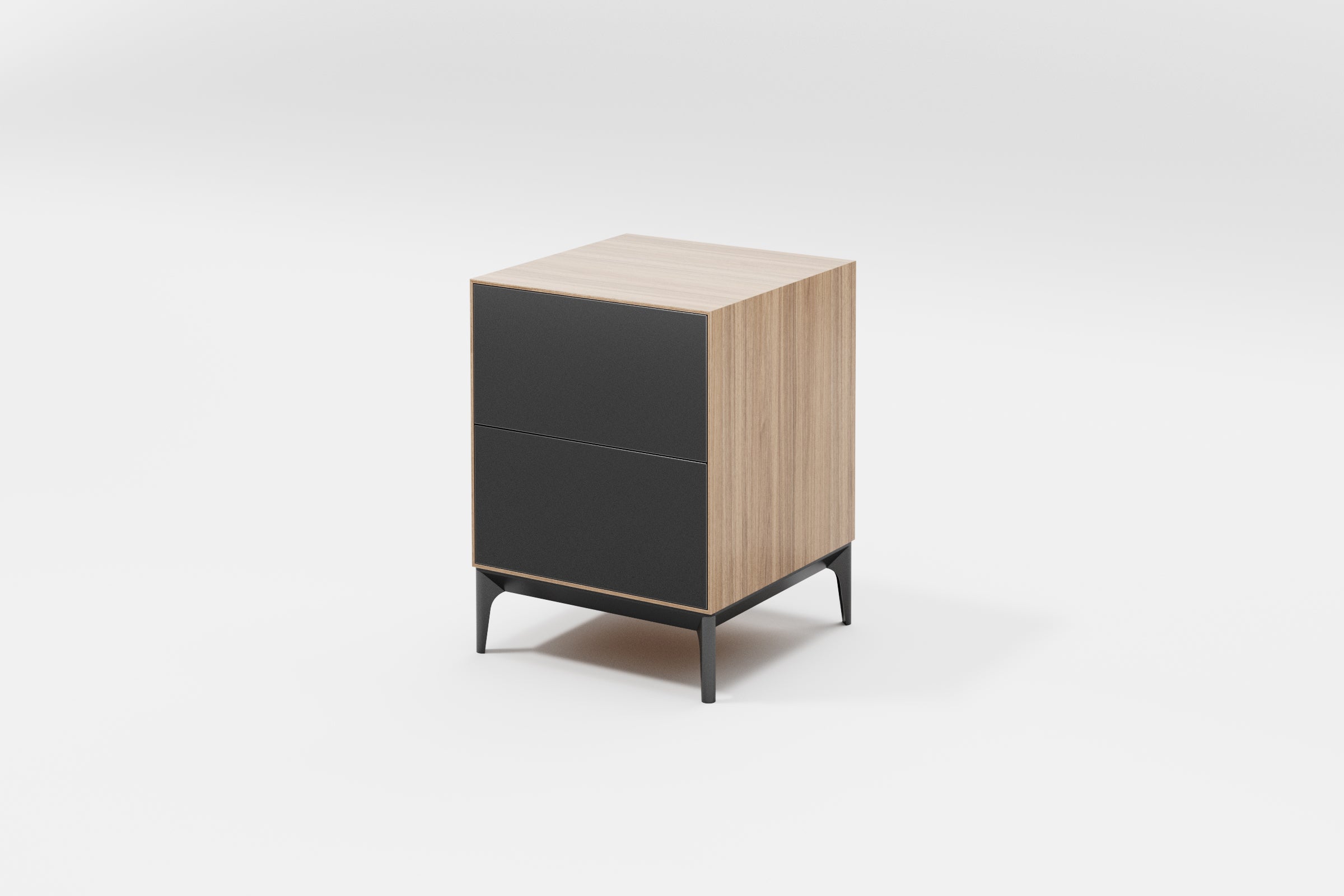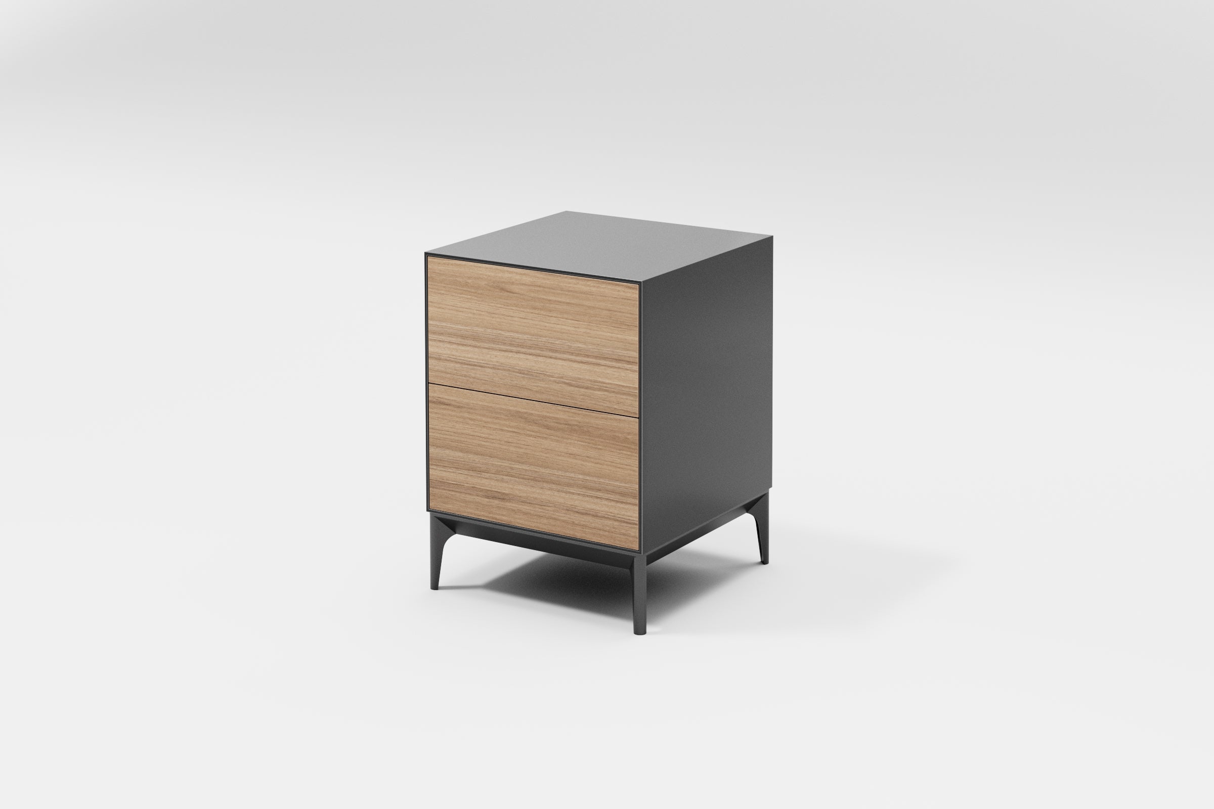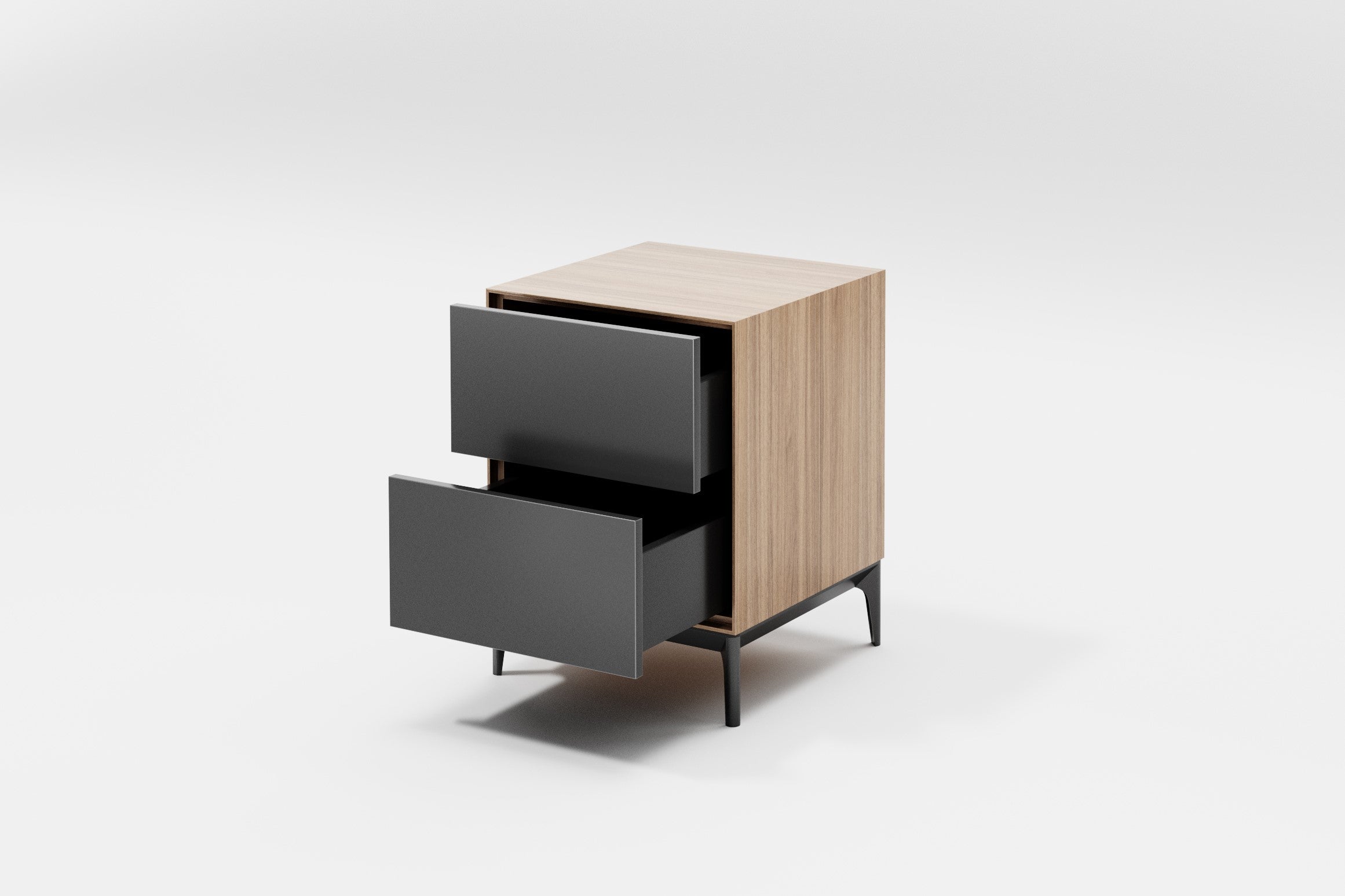 The Gamma 1 bedside table, like the entire Gamma collection, has its own unique charm: the front panel is crafted in one colour – wood, while the side panels are in another – grey. And vice versa. This clever design is perfect for those who can’t decide which colour they prefer.