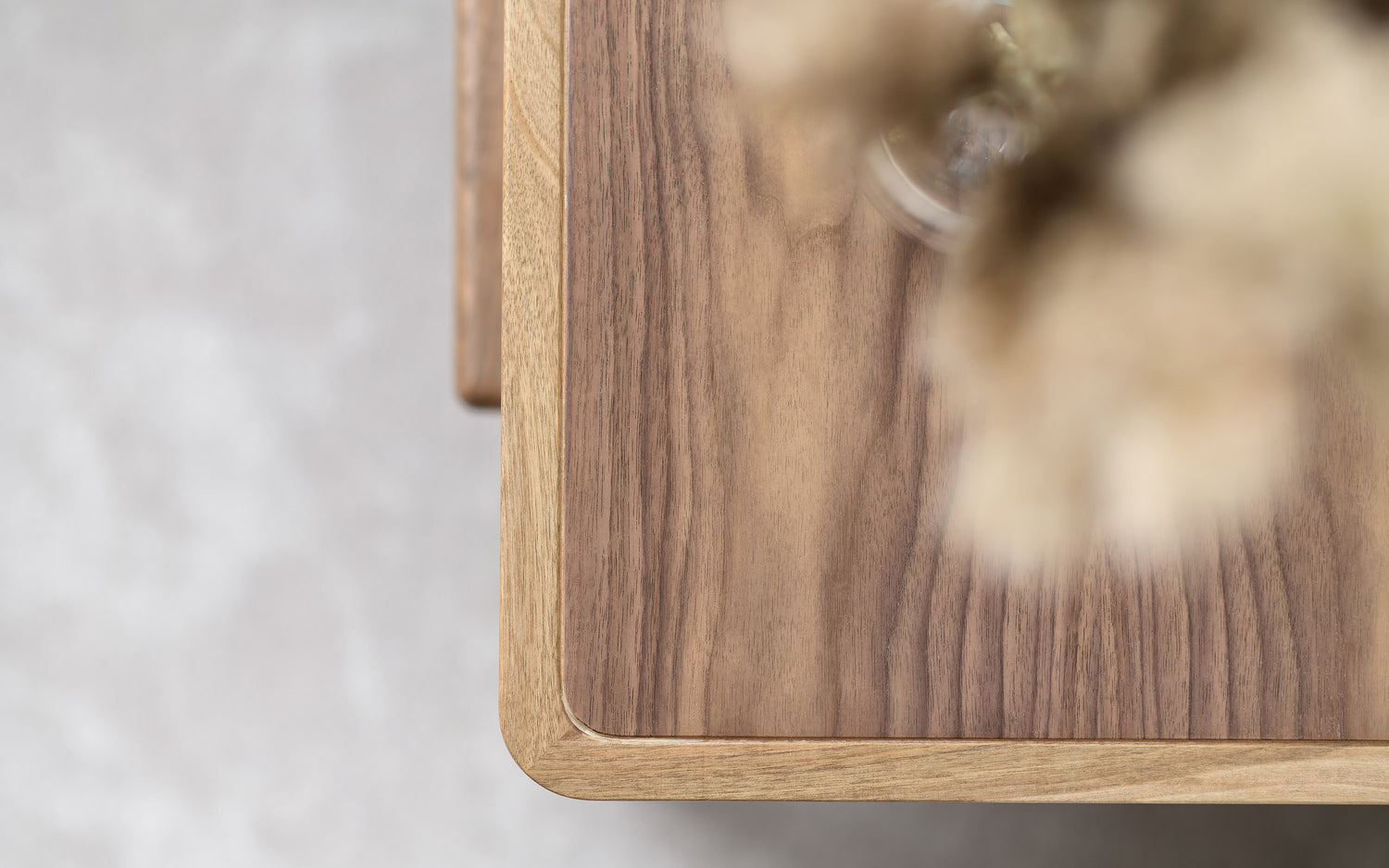 With a coating of varnish and oil, the Glare bedside table receives the utmost care, providing protection while preserving the natural beauty of the walnut wood. The result is a lustrous and well-maintained bedside table that will continue to shine with brilliance for years to come.