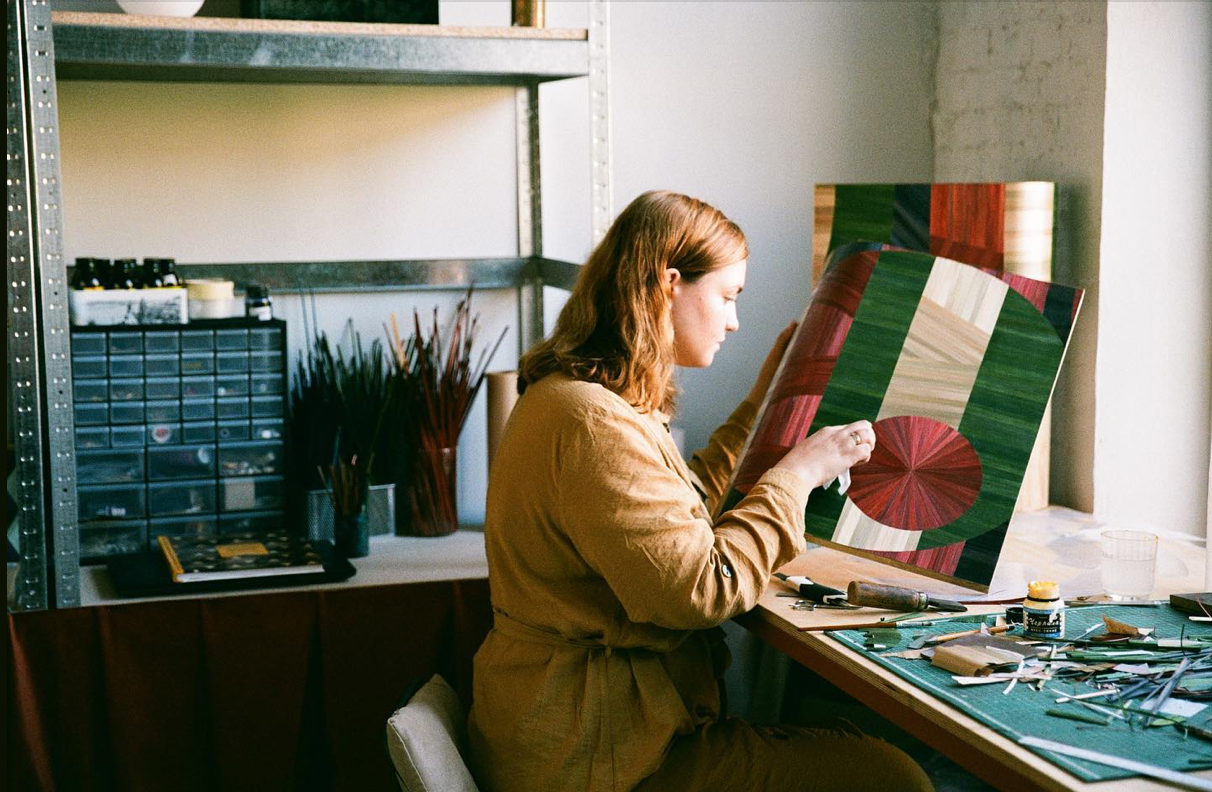 NATŪRA Forest cabinet is truly unique and collectable, crafted from the finest materials with care and precision. The straw used for its exquisite inlay is carefully hand-selected from the Western Ukrainian countryside before being dyed in our workshop to add a vibrant colour. Once complete, each solid oak frame is impressively adorned with this beautiful technique making the cabinet something very special indeed! Materials: solid wood (oak), rye straw inlay, plywood, brass handles and legs.