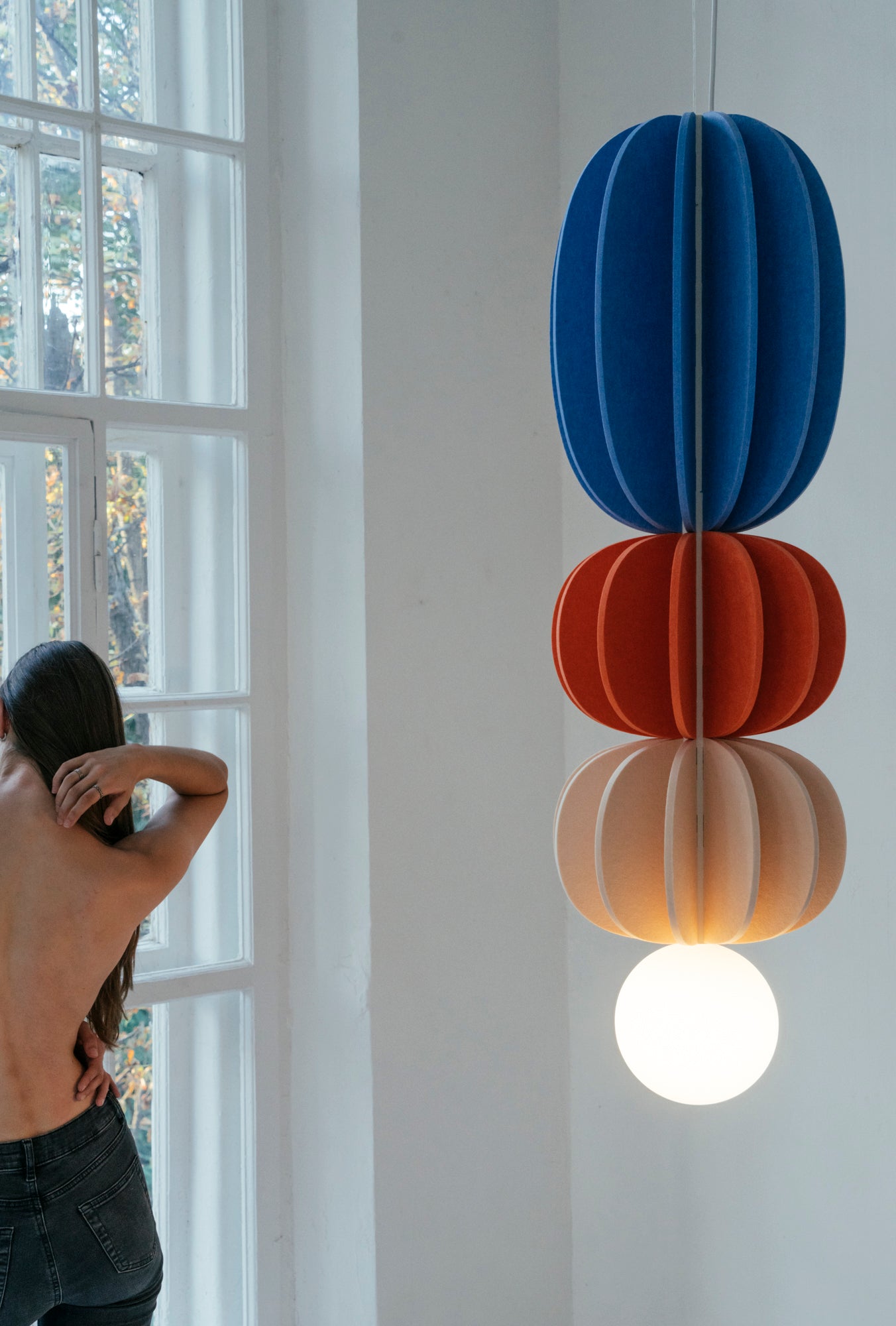This innovative pendant lamp combines sleek, modern aesthetics with functional sound absorption, making it perfect for creating a comfortable and stylish atmosphere in any room. Designed to effectively absorb sound waves, it enhances room acoustics while adding a contemporary flair. Crafted from 9mm PET felt made from recycled plastic bottles, it’s an eco-friendly choice for modern living. Available in 16 stunning colors and multiple size combinations, you can tailor it to suit your style and preferences. Easy Installation will simplify your setup with a lightweight design and user-friendly assembly process. Perfect Dimensions at 120 cm (47.24 in) tall and 36 cm (14.17 in) wide, it’s ideal for high ceilings and spacious interiors.