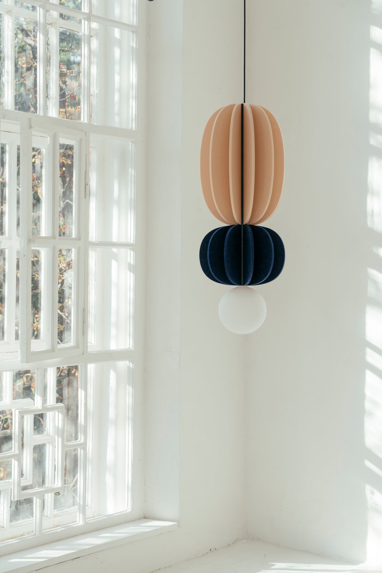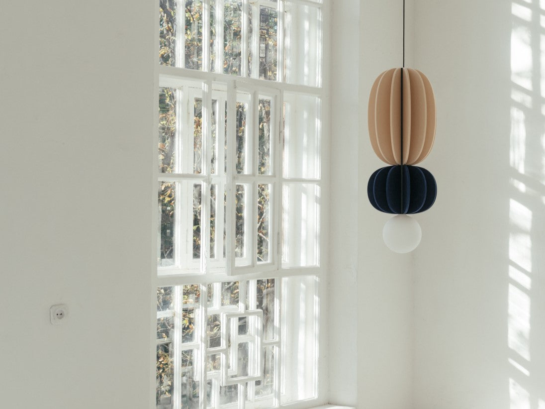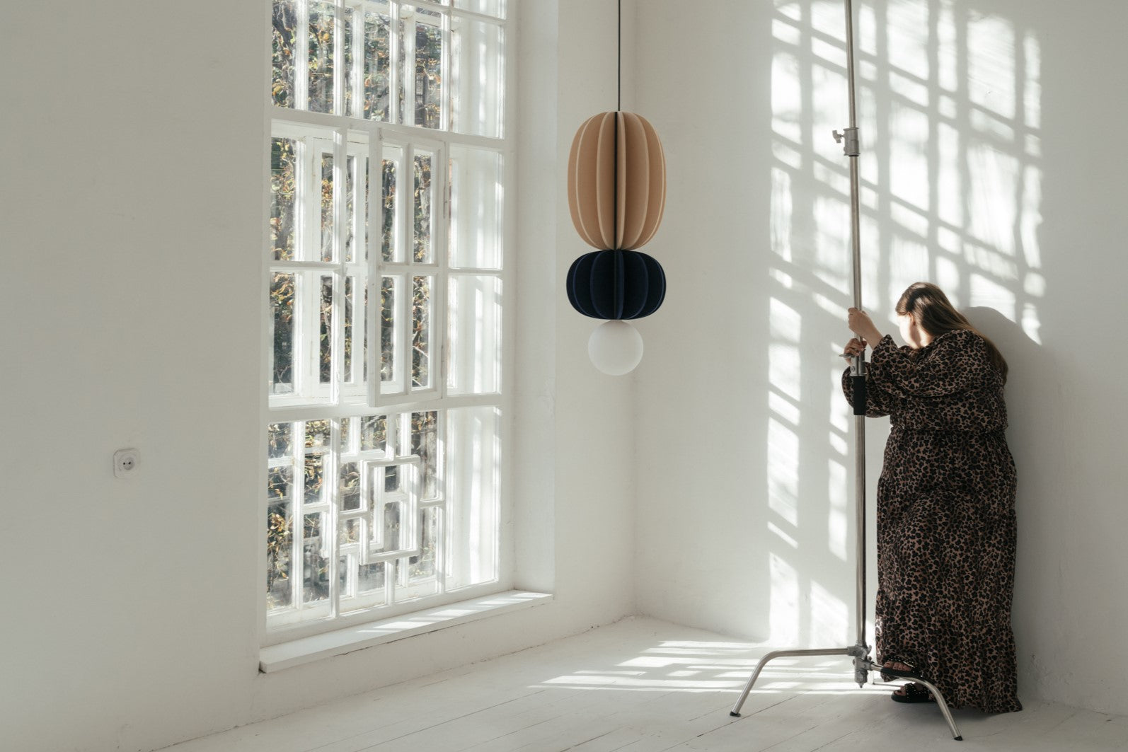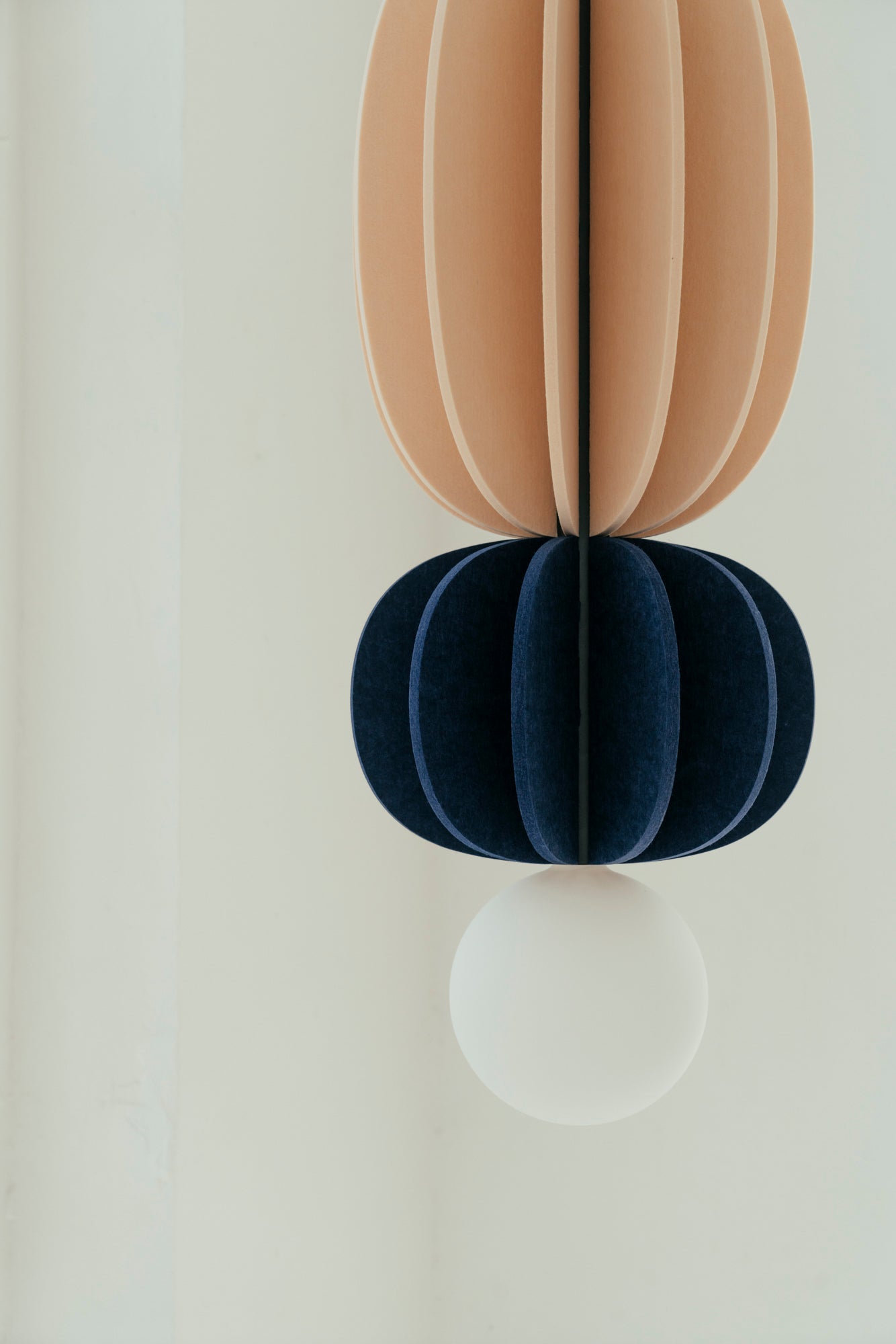 Ceiling Light 75 from our Sound of Light collection – a interesting designed lamp available in a variety of colour combinations. Unlike standard lighting, it effectively absorbs sound waves, enhancing both comfort and acoustics in any room. Easy to install and available in 16 colours, this lamp is crafted from recycled plastic bottles, so by choosing it, you're not only adding style and comfort to your space but also caring for the environment.