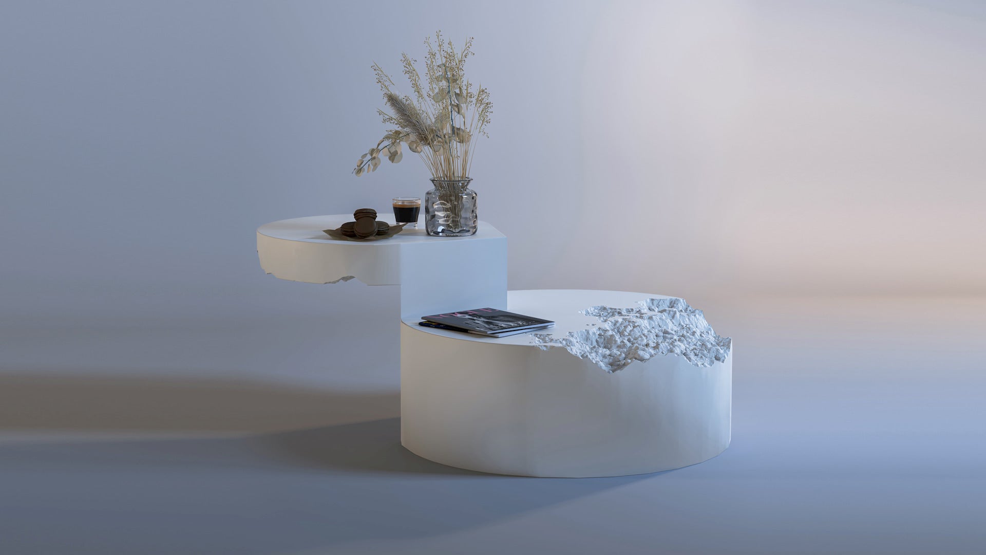 BREAKFREE Center Table is more than just a piece of furniture; it's a testament to the unyielding determination of humankind to conquer even the most formidable forces of nature. The rough, ragged edge on one side stands as a reminder of our unrelenting pursuit to shape and tame the very elements that have shaped our world.