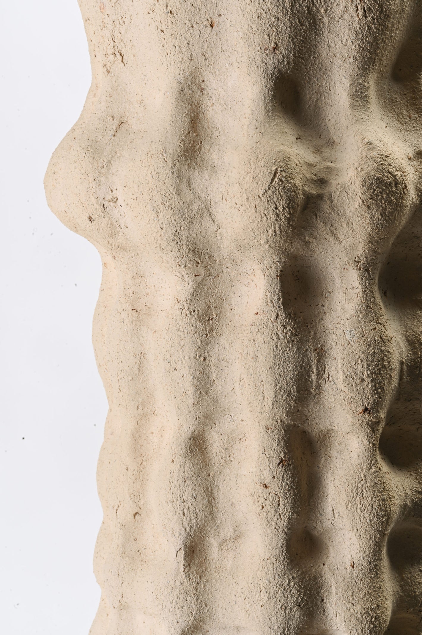 The "Temples 23" ceramic vase is a magnificent creation meticulously shaped by hand from clay. This impressive piece commands attention with its substantial size and a towering height of 111 cm.