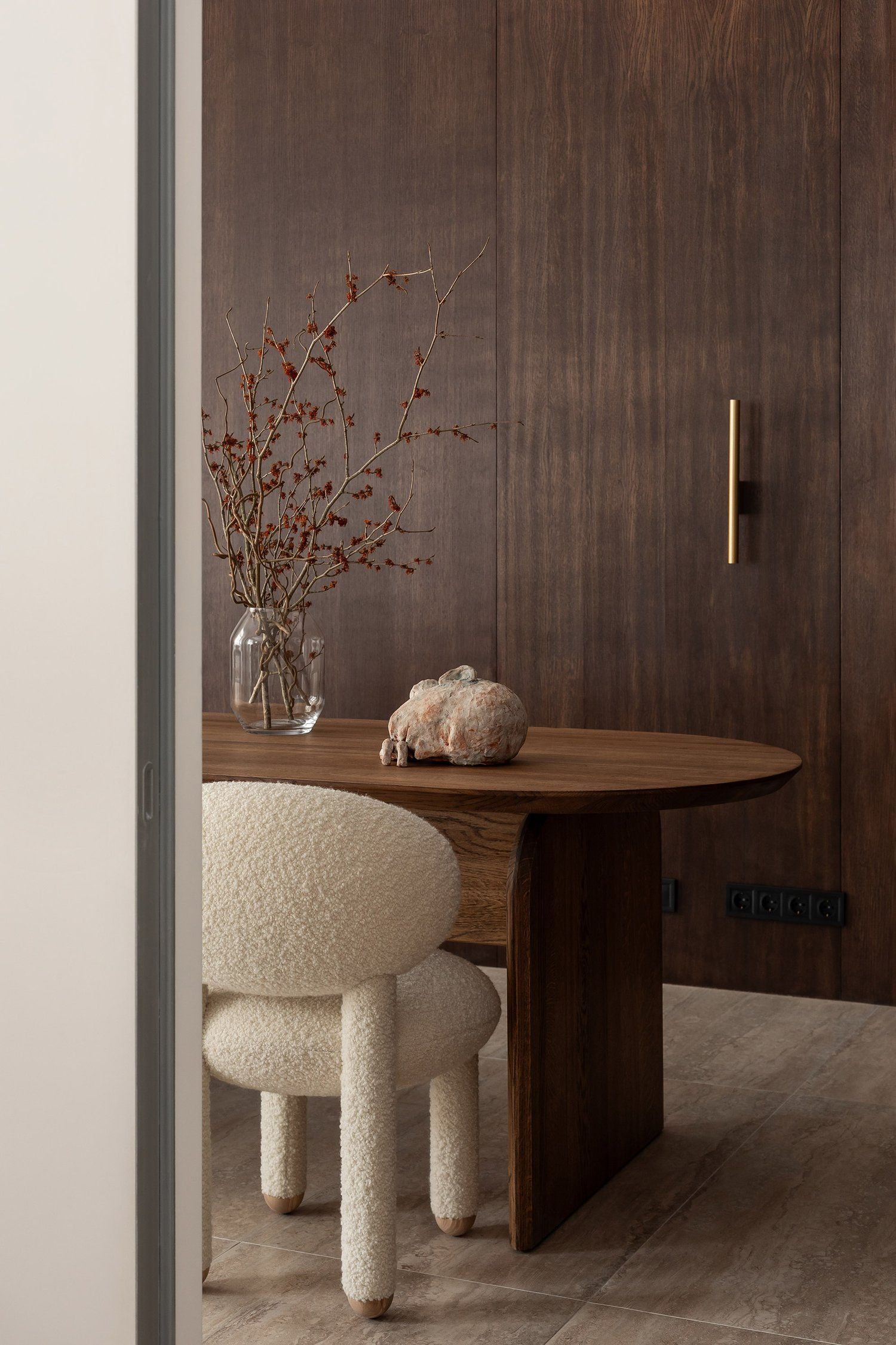 The "Flock" collection embodies the idea that home should be a haven of comfort, a sanctuary adorned with personalized, character-rich, and visually striking statement objects. The name "Flock" symbolizes a tranquil oasis and a central meeting space within the home, where soft, voluptuous forms, natural materials, and pleasing tactile surfaces create an ambiance of warmth and coziness.