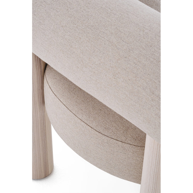 Low chairs with non-upholstered legs have a minimalist outline, but the designer's attention to detail suggests that this is an individual, unique work of art, rather than just a chair.