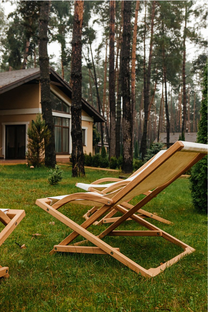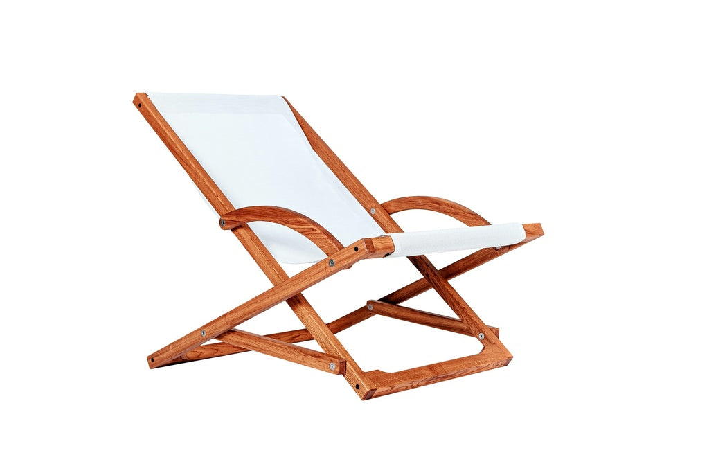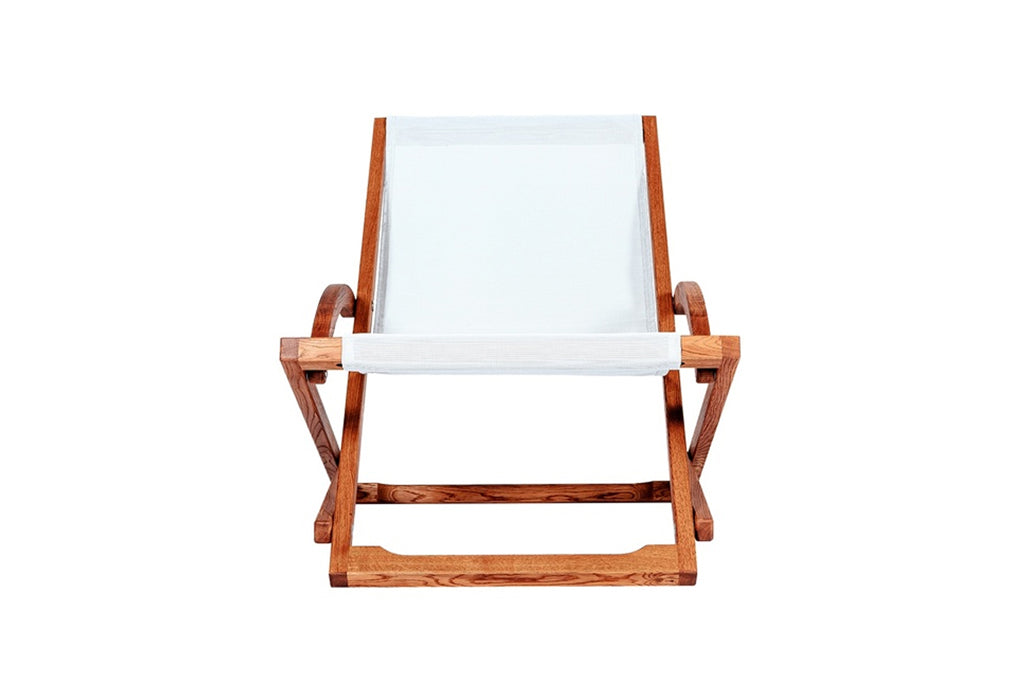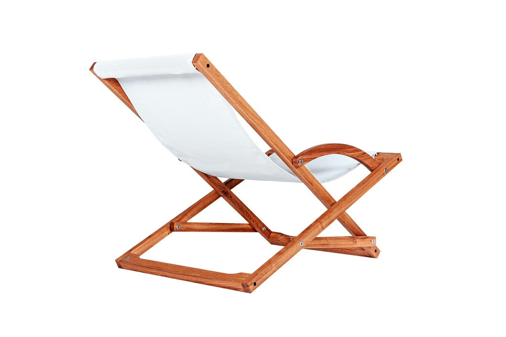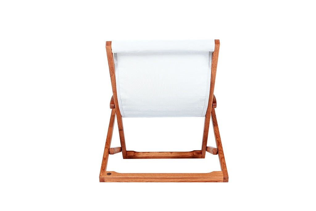 Crafted from natural wood, this chair is both environmentally friendly and durable. When not in use, the chaise lounge can be folded into a single plane, minimizing storage space in closets or car trunks.