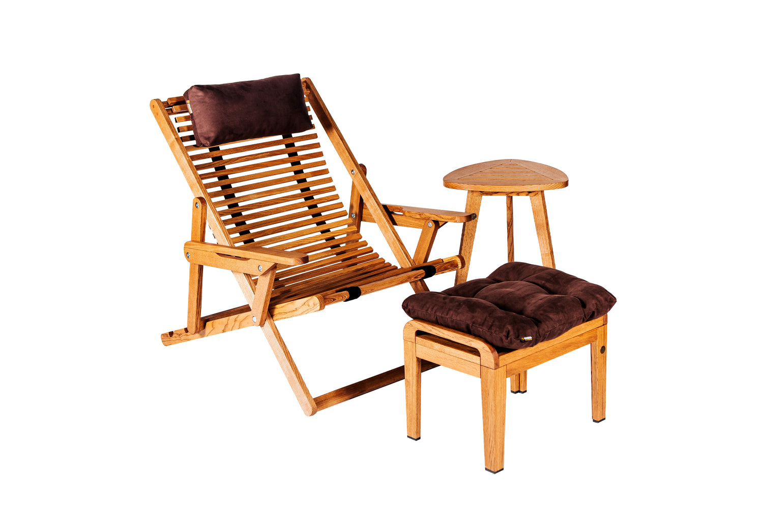 You have the option to order a complete set that includes a chaise lounge chair, a coffee table, a footrest, a tray and a head pillow.