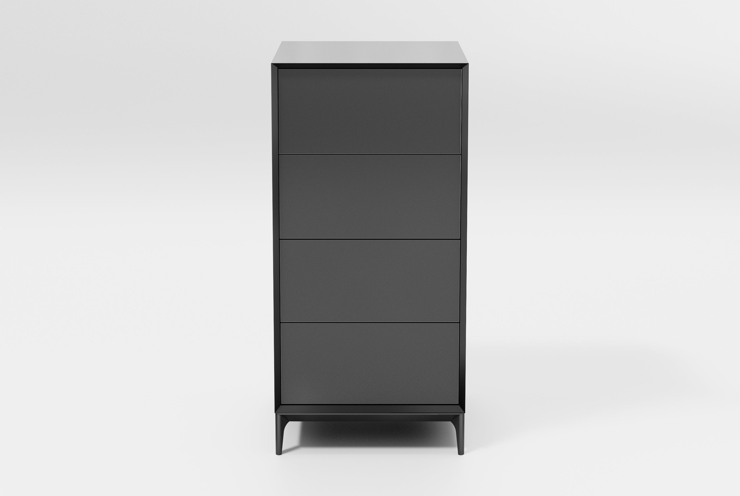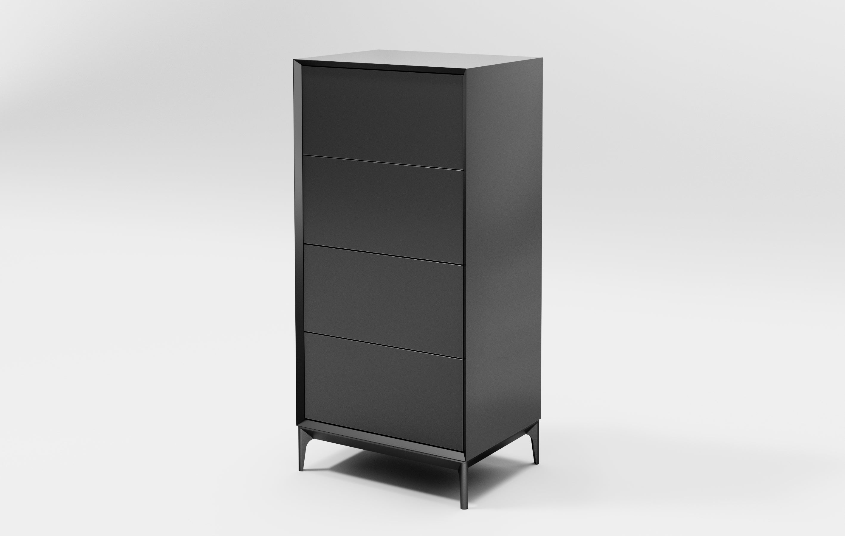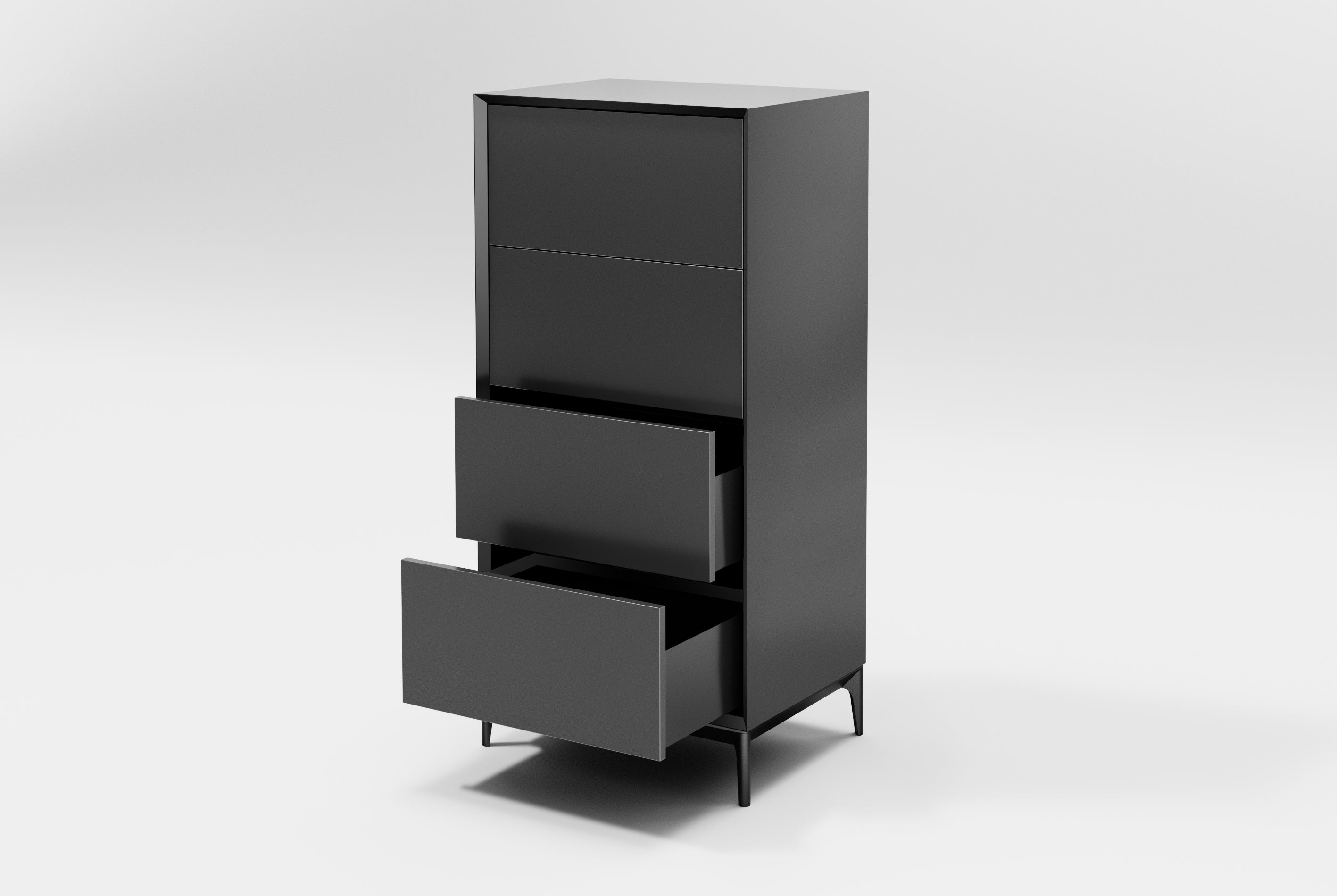 The chest of drawers Delta 4 features four spacious compartments, offering ample storage to help organise your space, whether at home or in the office. This collection showcases a minimalist design with a distinctive touch – a black edge on the front panel. It’s an elegant and functional addition to any interior.