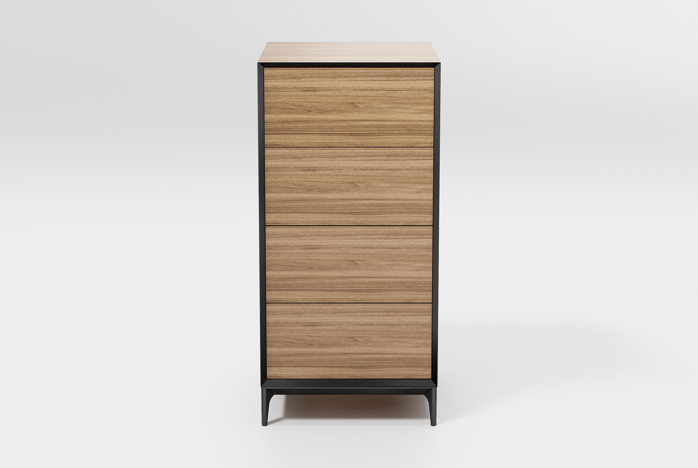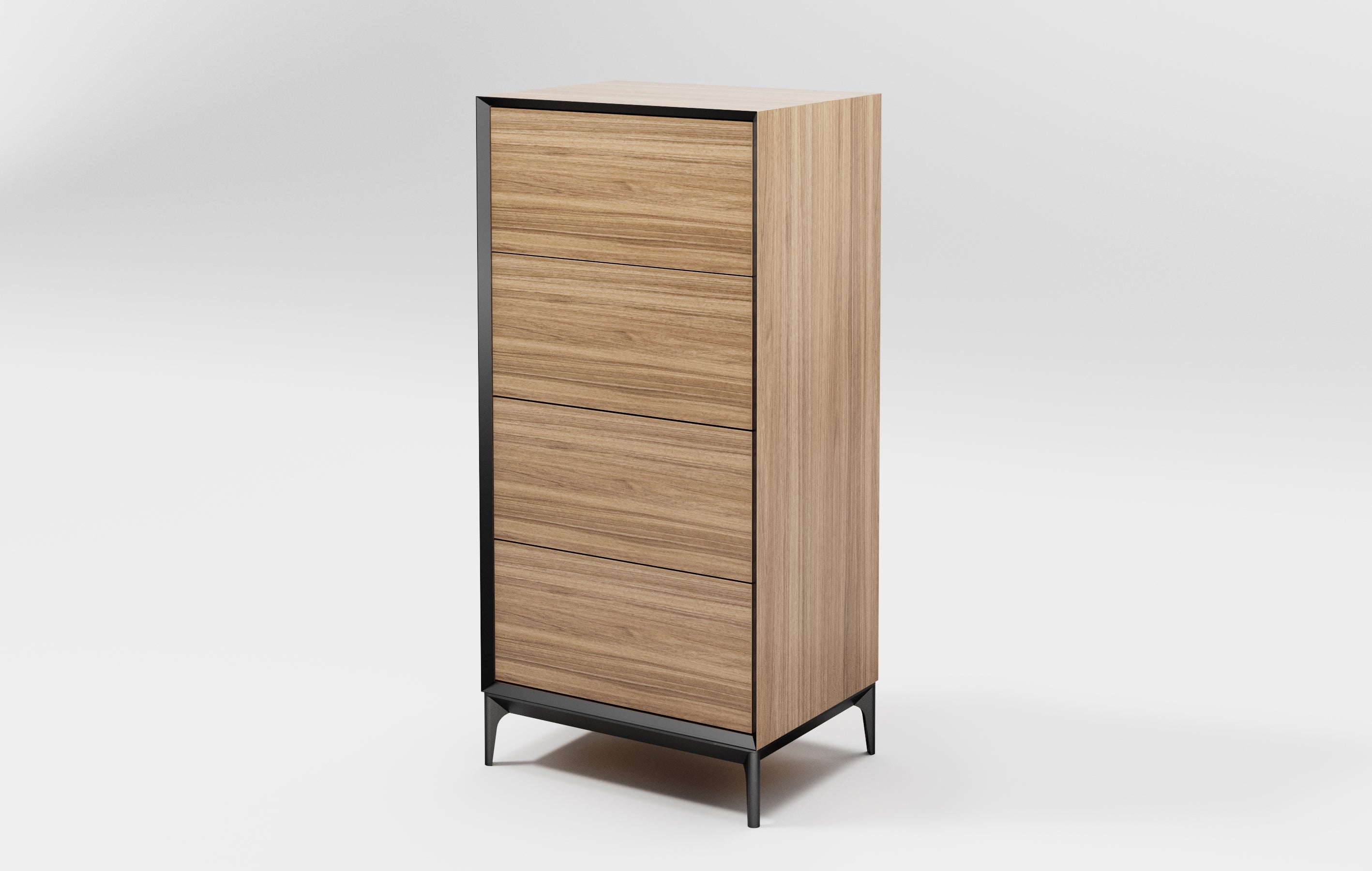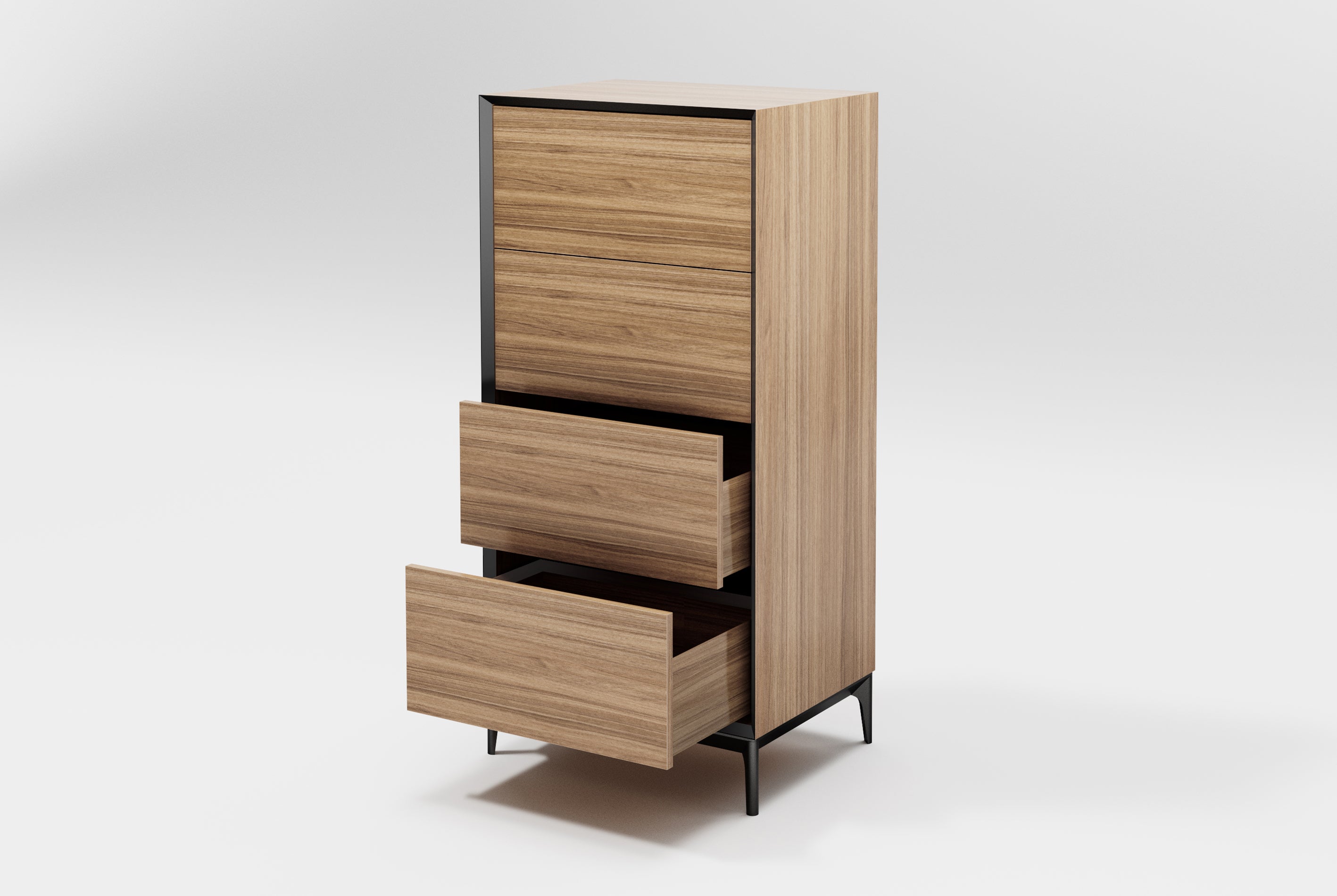 The chest of drawers Delta 4 features four spacious compartments, offering ample storage to help organise your space, whether at home or in the office. This collection showcases a minimalist design with a distinctive touch – a black edge on the front panel. It’s an elegant and functional addition to any interior.