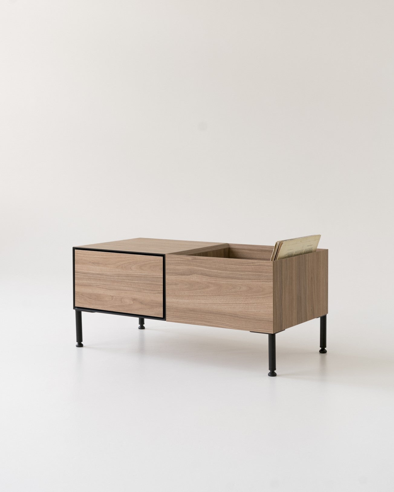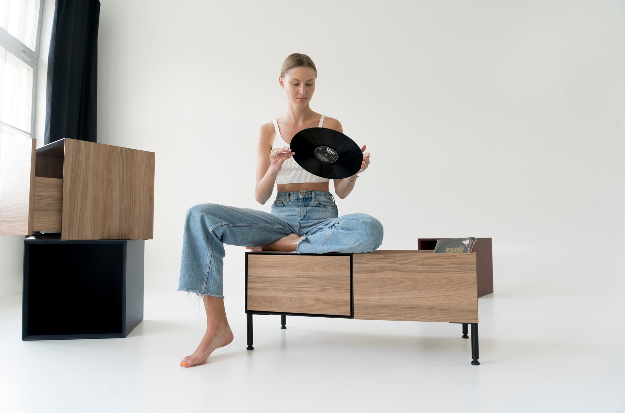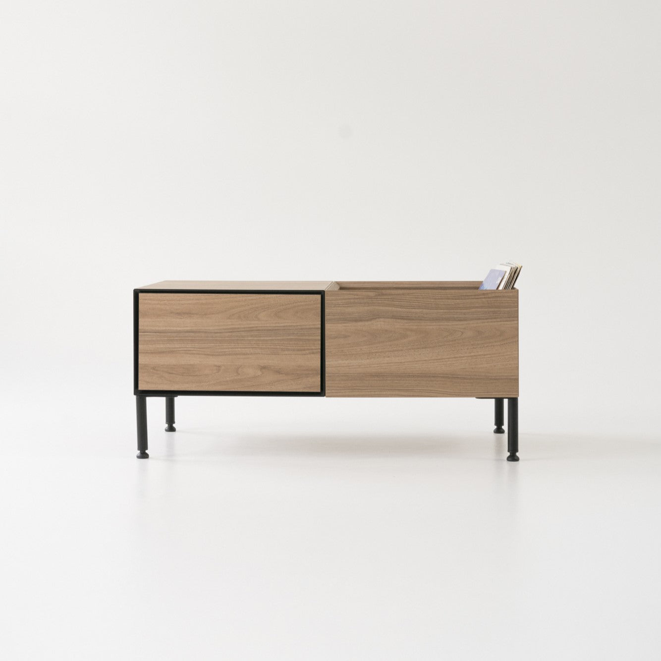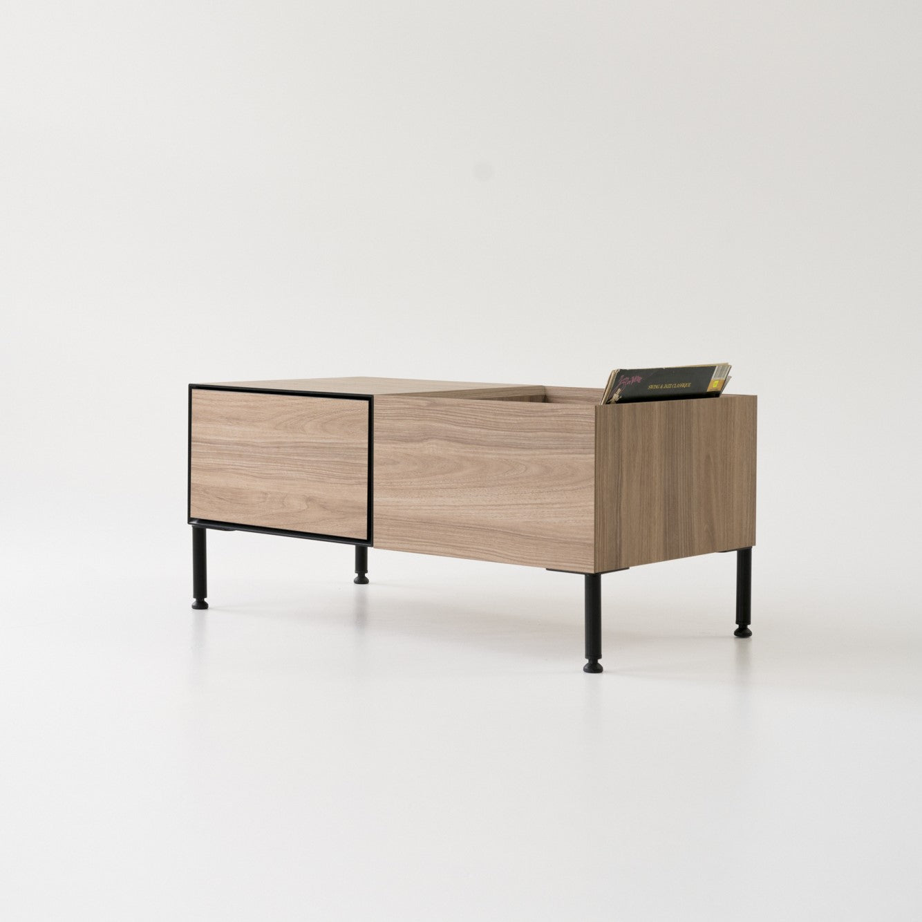 The contemporary Vinyl 1 chest of drawers is a versatile piece of furniture, perfect for housing a vinyl player, multimedia devices, audio equipment, books, records, documents, and other essentials.