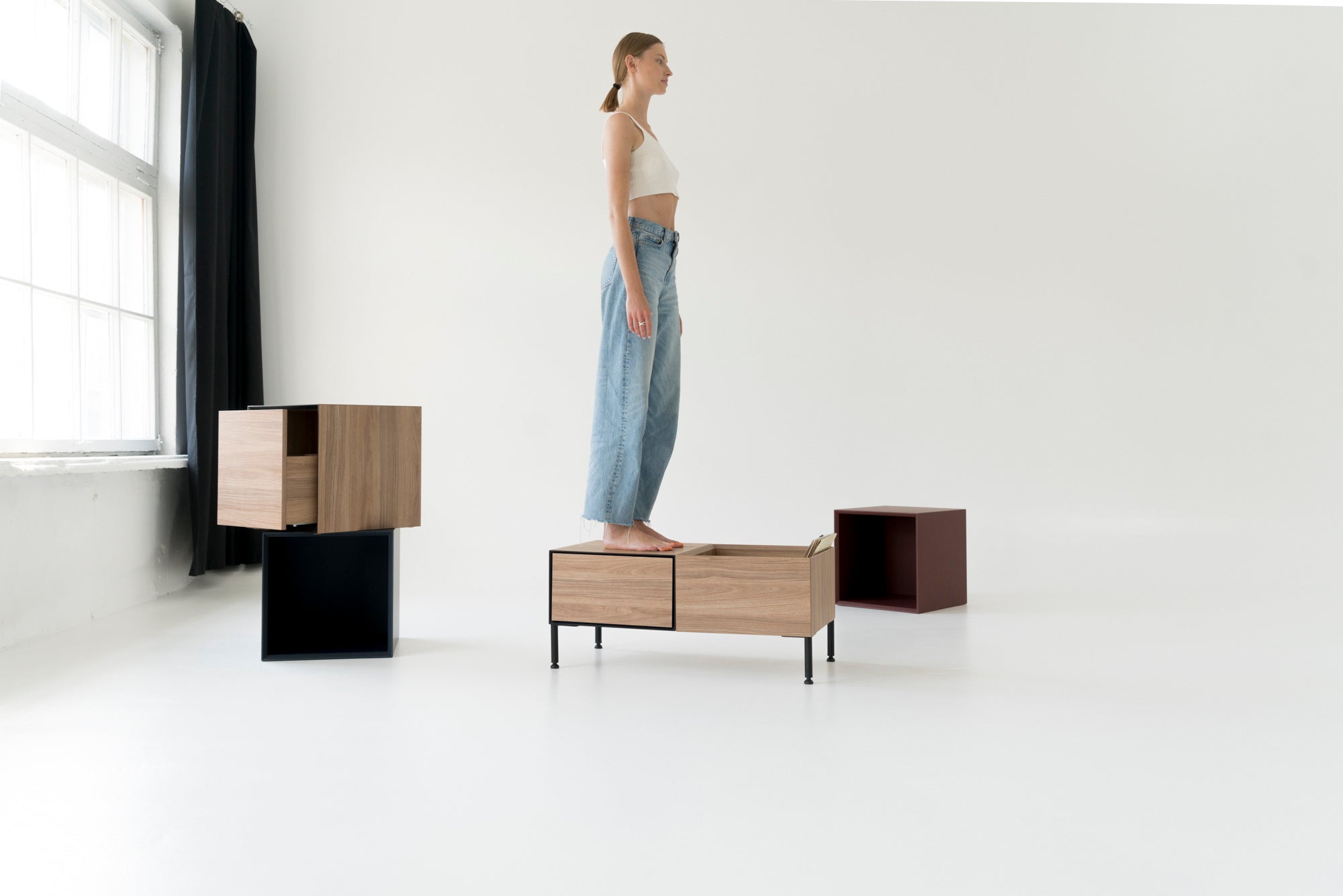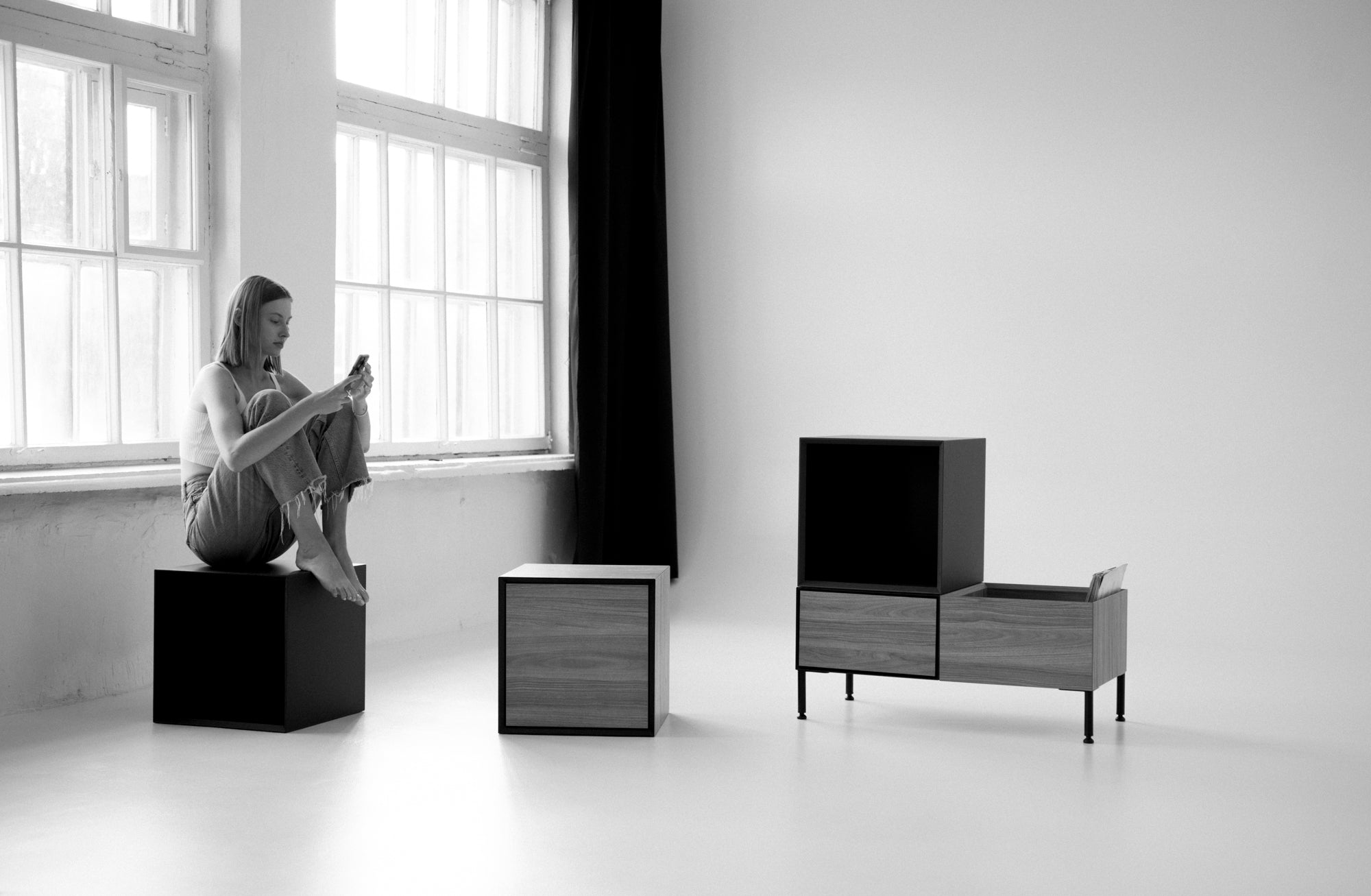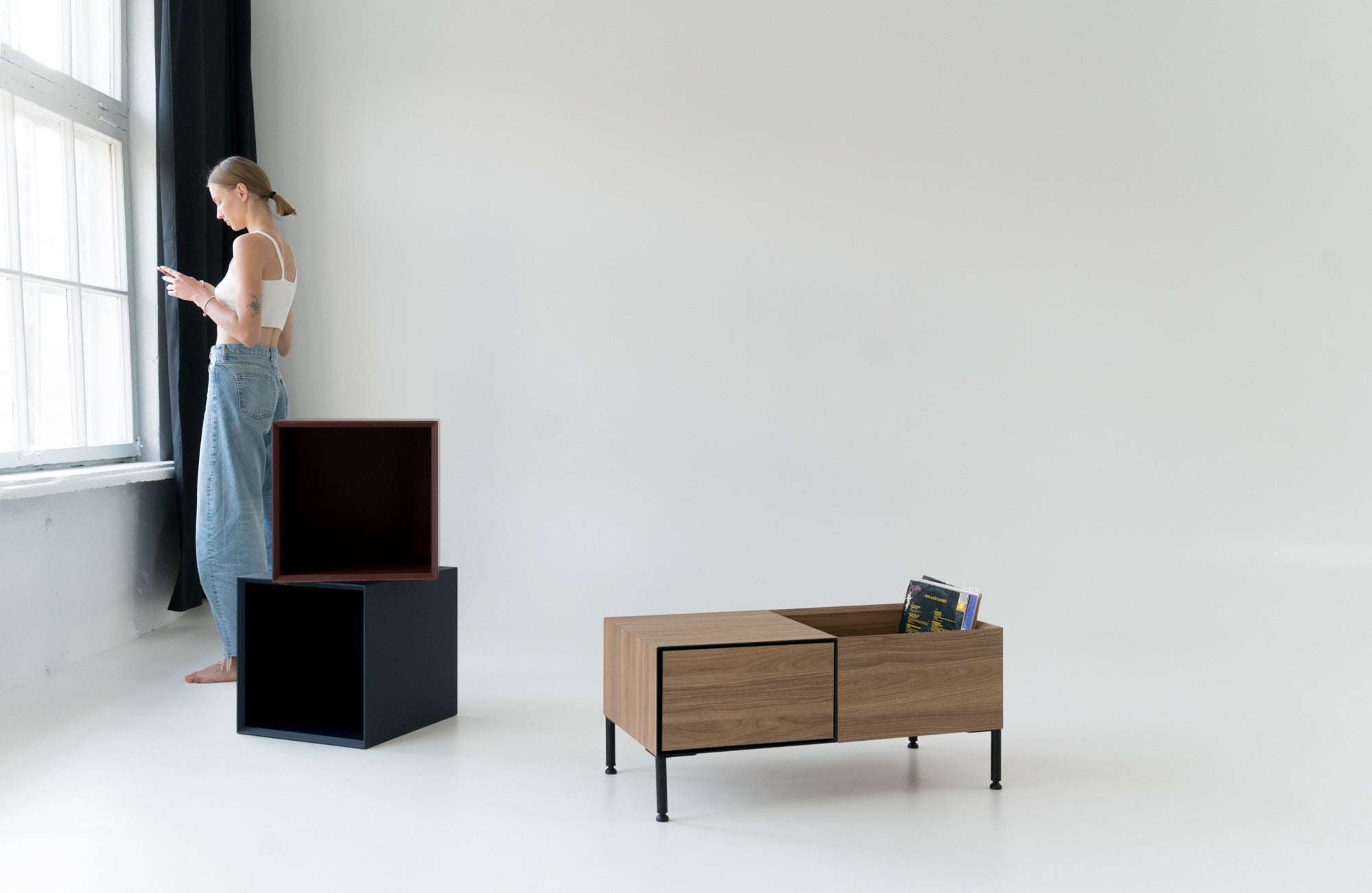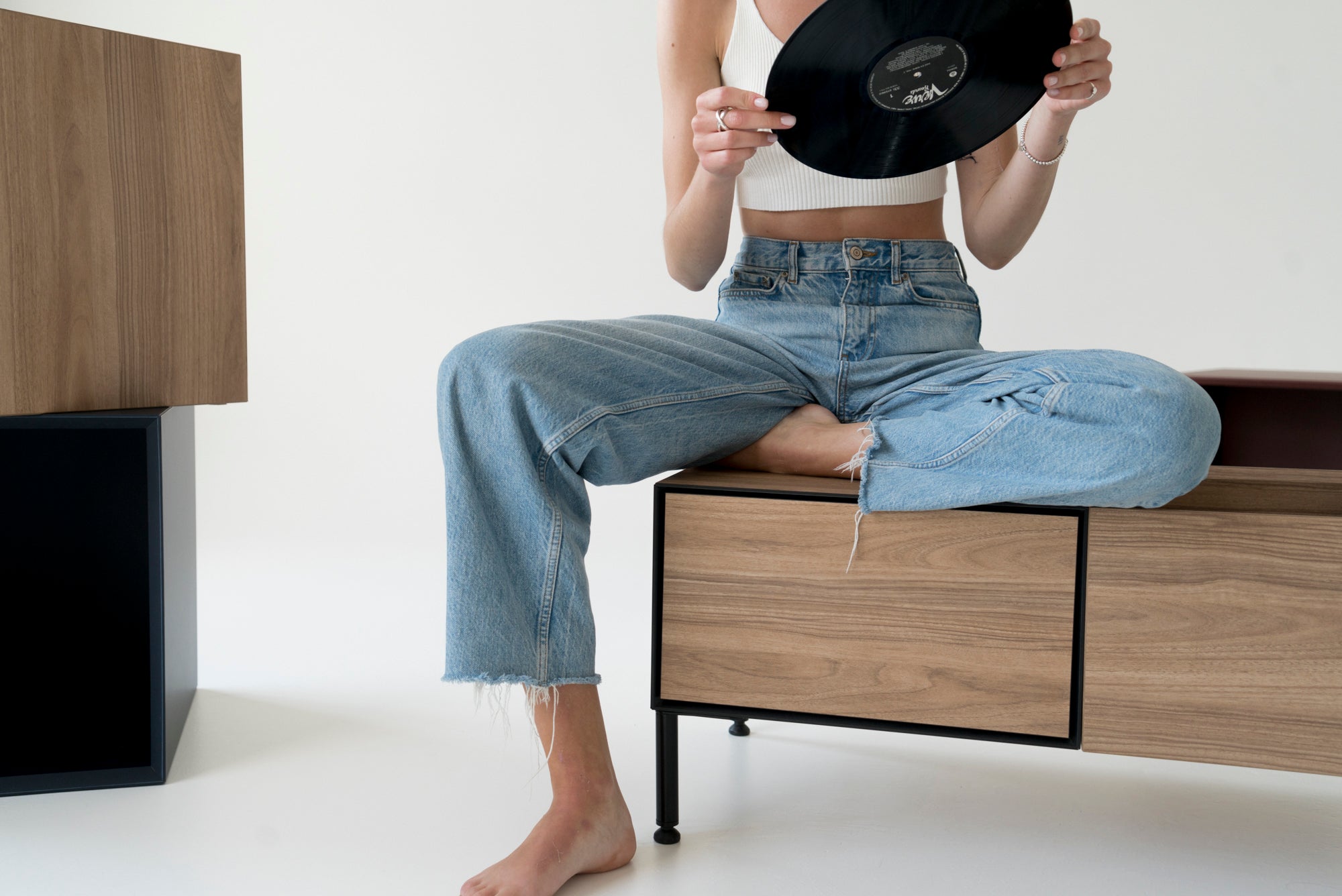 The contemporary Vinyl 1 chest of drawers is a versatile piece of furniture, perfect for housing a vinyl player, multimedia devices, audio equipment, books, records, documents, and other essentials.