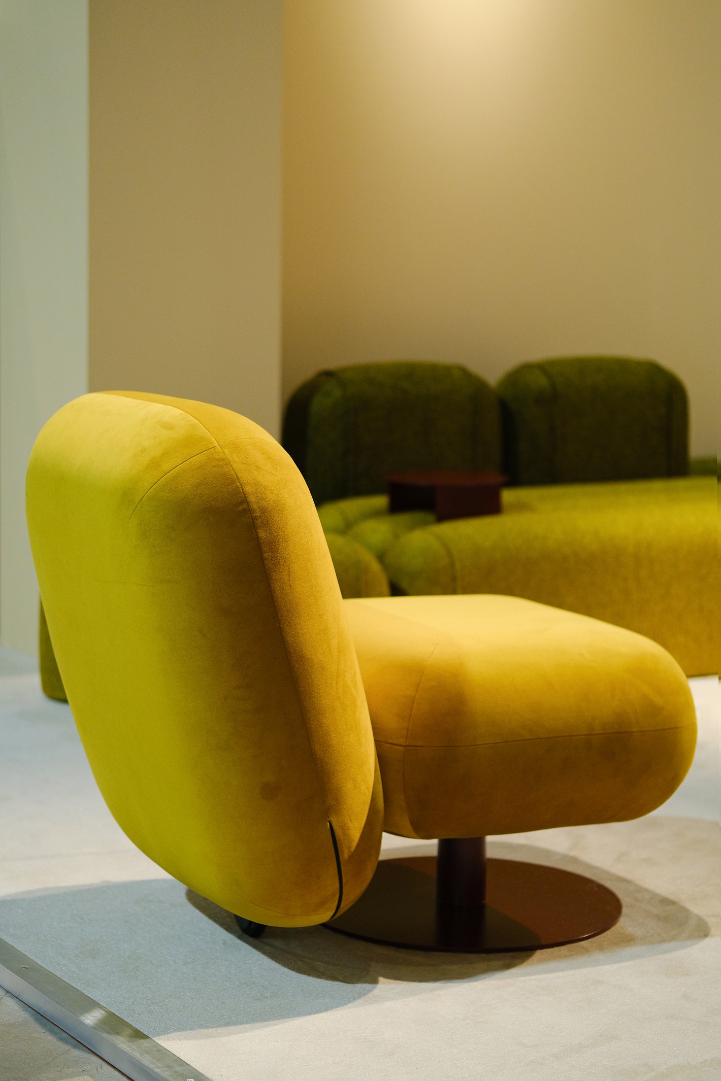 CIRCLE Lounge Chair is a sculptural swivel seating object designed by the Ukrainian creative studio Dinner Studios for the Kint brand. It embodies the philosophy of soft minimalism through smooth, flowing lines and a precisely engineered structure that supports everyday comfort and expressive form.