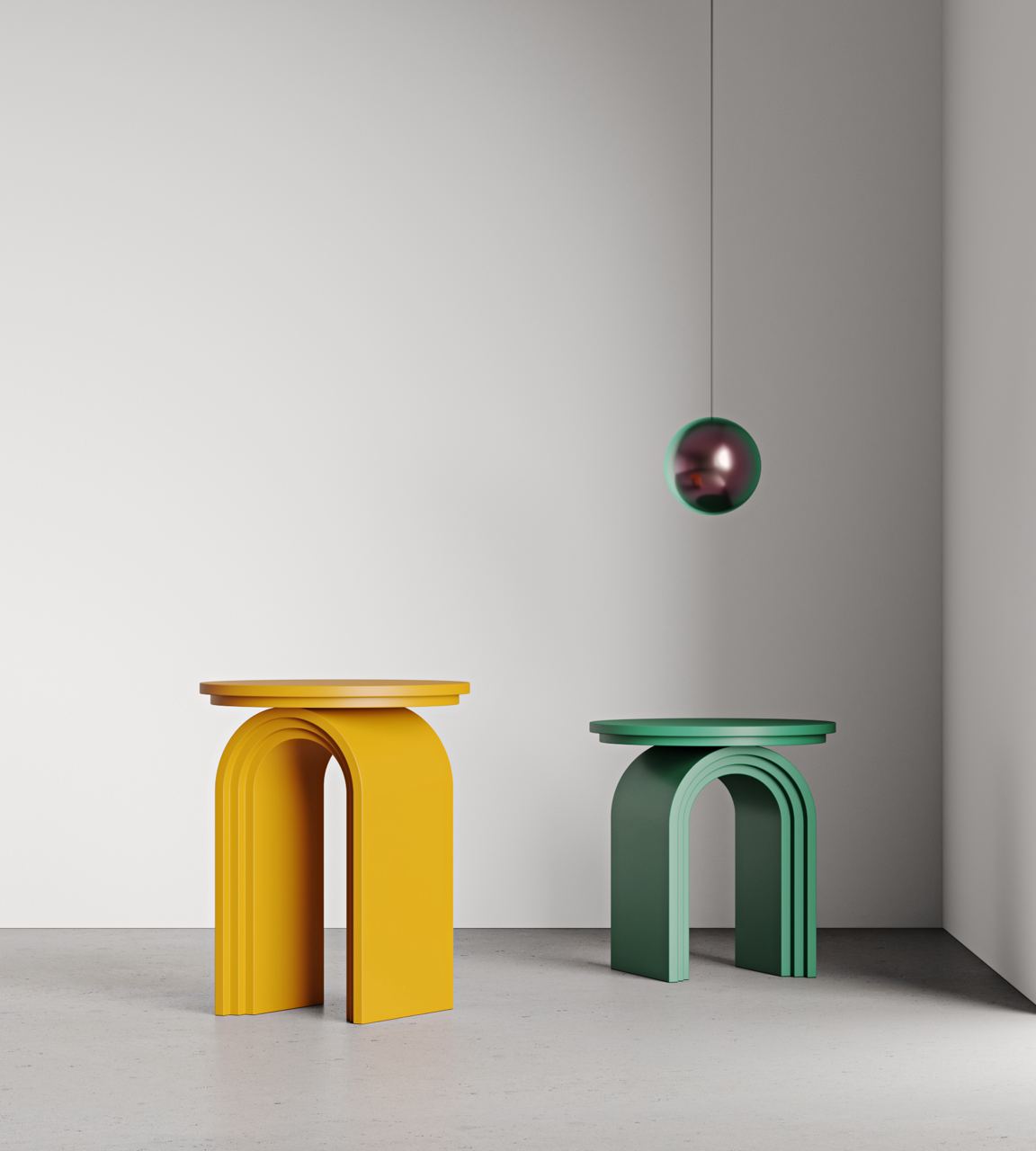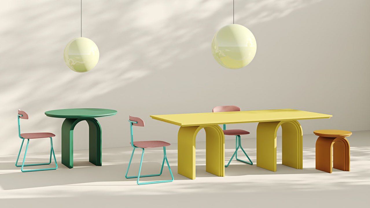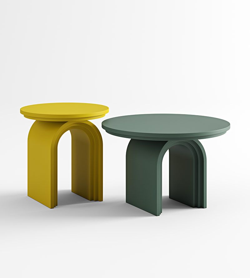 RAINBOW coffee and side tables are crafted from bent plywood and painted in an array of captivating colours, these tables redefine minimalistic design with their sculptural aesthetics.