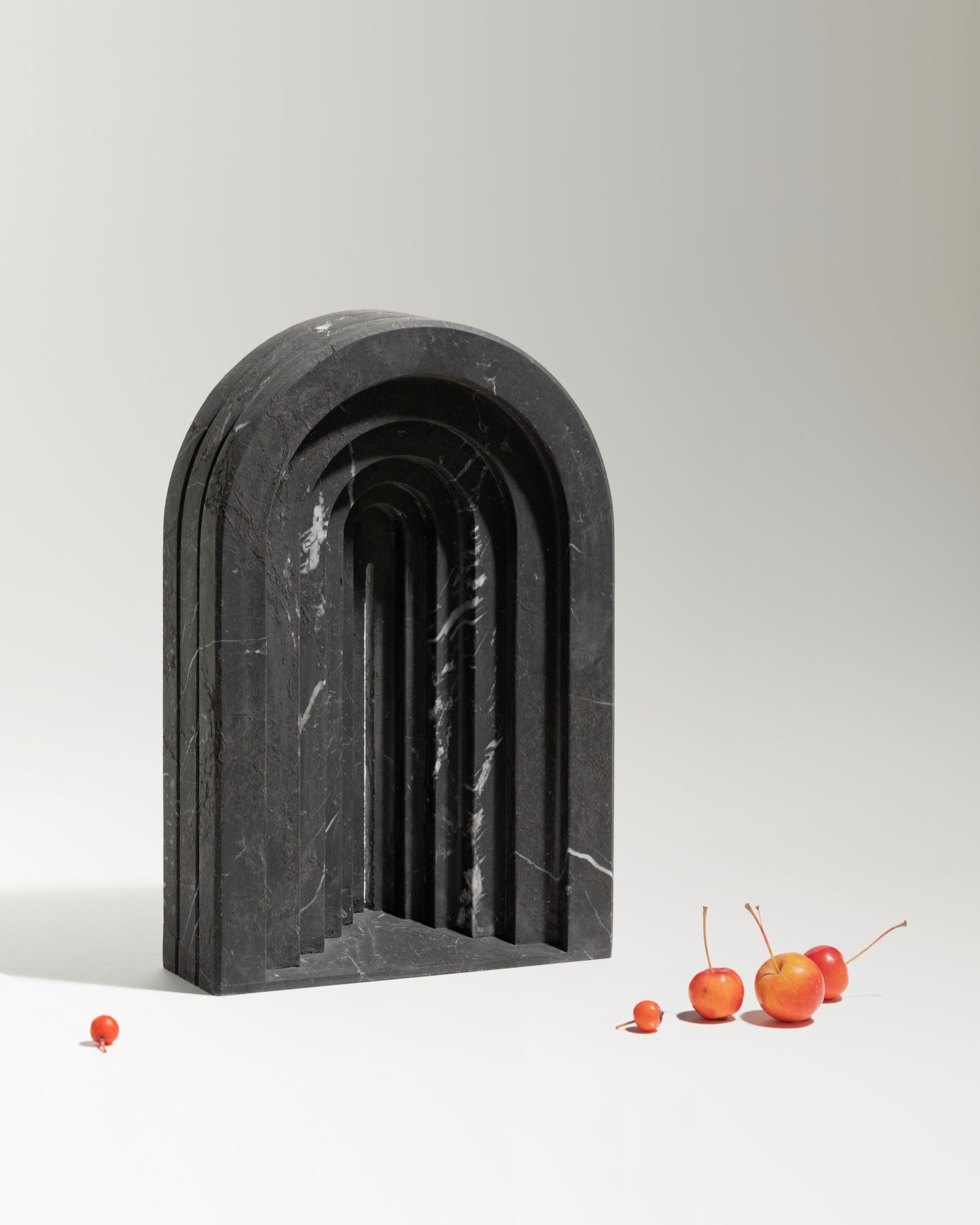 PERSPECTYVA takes its inspiration from the graceful arches that adorn Palazzo Spada. To bring this illusion to life, we meticulously crafted a series of self-similar silhouettes. These carefully designed proportions were then ingeniously deformed, creating the illusion of perspective commonly found in architectural drawings with one-point perspective.