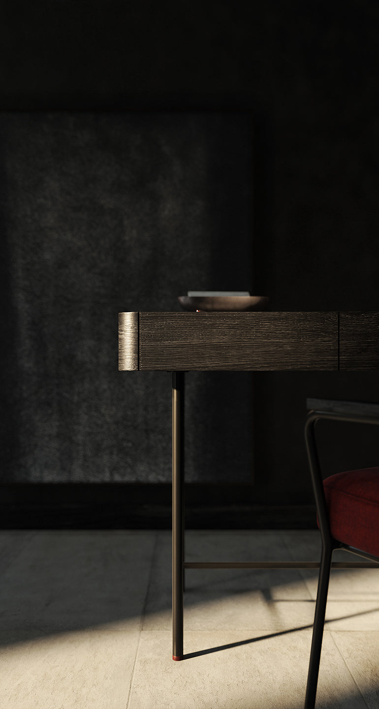 Sense desk is a sophisticated addition to our Urban Chic furniture collection. Crafted with veneered MDF and ash, the Sense desk exudes elegance through its laconic forms and the harmonious fusion of metal and wood. The design showcases strict lines and consistent toning, adding a touch of refinement to any space.