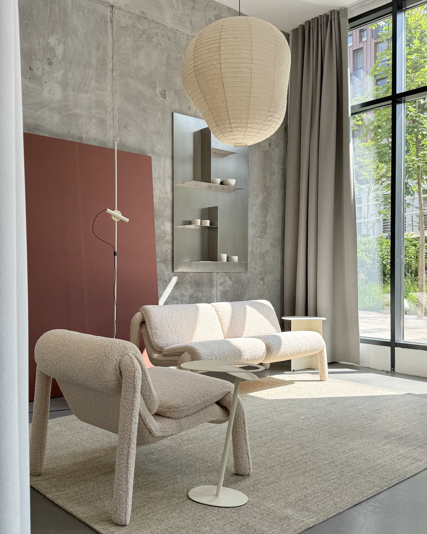 The sofa features a low, laconic silhouette with smooth rounded geometry. Thanks to its considered ergonomics and soft construction, the Falda Sofa provides comfortable seating while maintaining a refined visual presence. It is suitable for modern living spaces, lounge zones and public relaxation areas.
