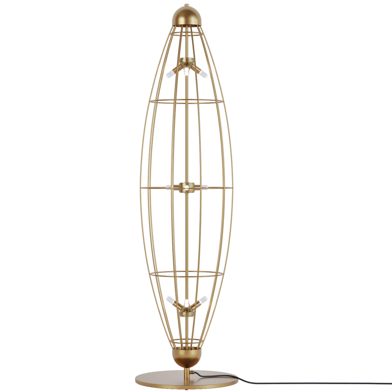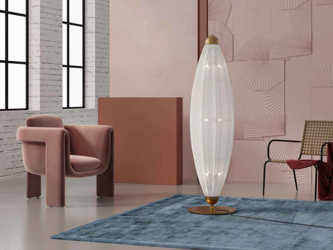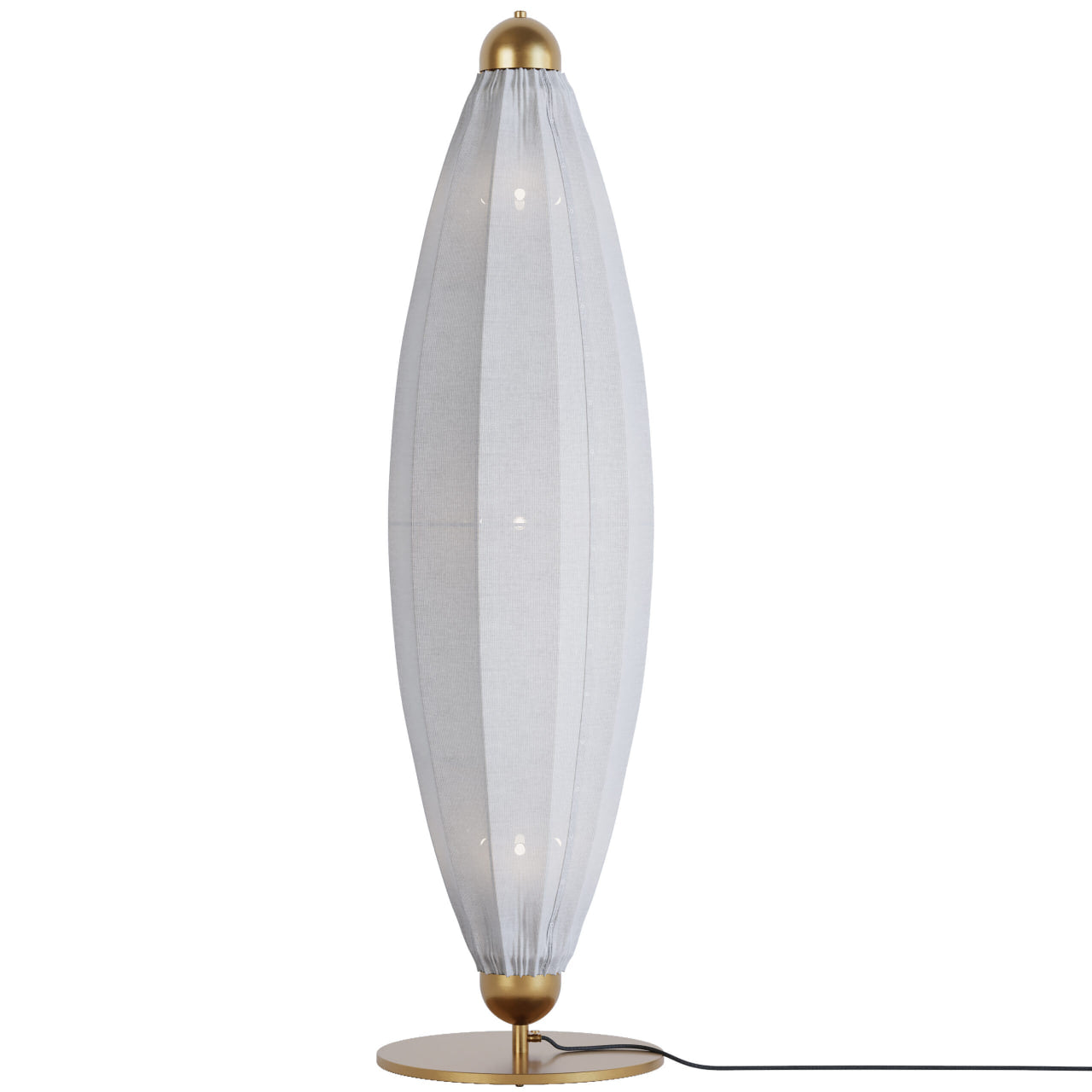 This floor lamp from the Chrysalis collection captures attention with its simple yet intriguing design, evoking a sense of whimsy and lightness.