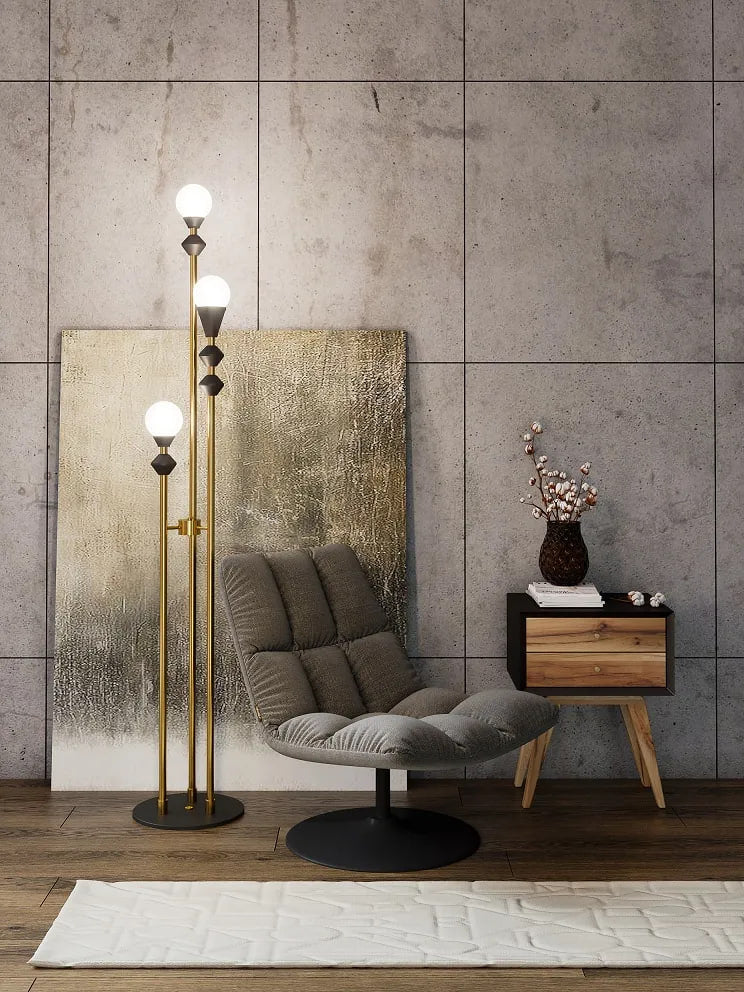 The floor lamp Dome Trio continues the aesthetic and functional design legacy of the Dome lighting line. Carefully selected colours and materials, allows the lamp to adapt to different moods and styles. For example, the brass option fits perfectly into mid-century interiors, the sleek black finish complements modern and loft spaces, and the stylish white is ideal for Scandinavian aesthetics.
