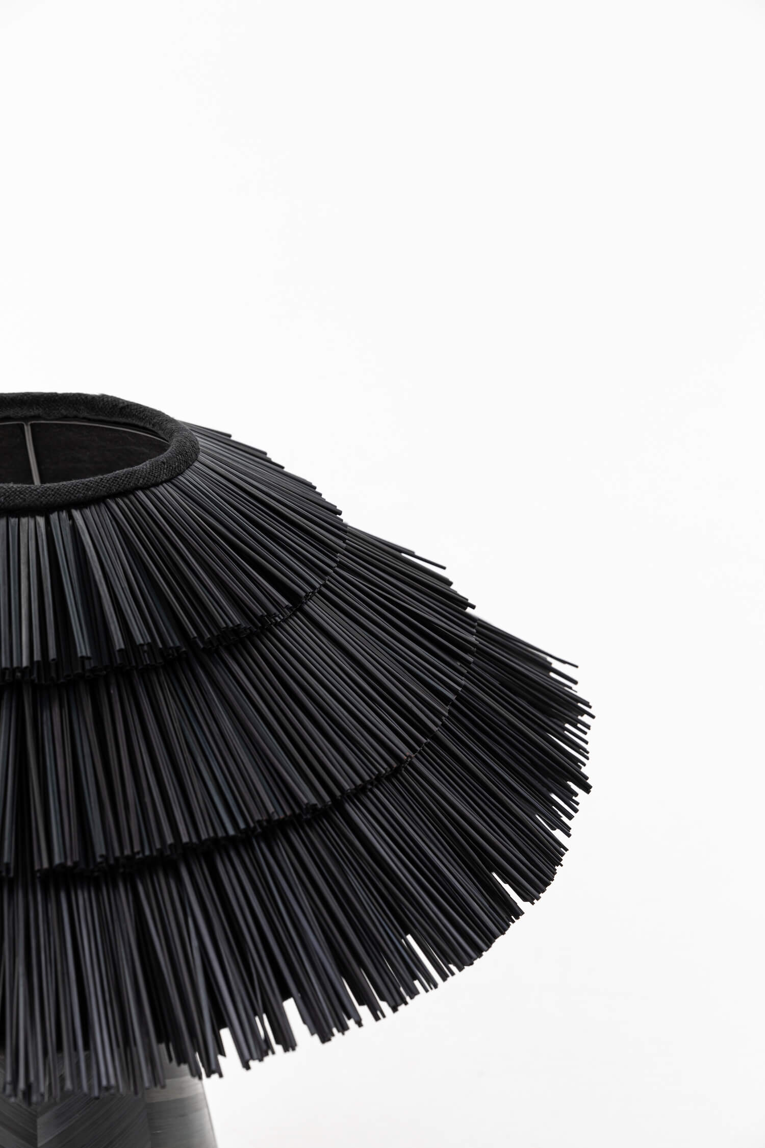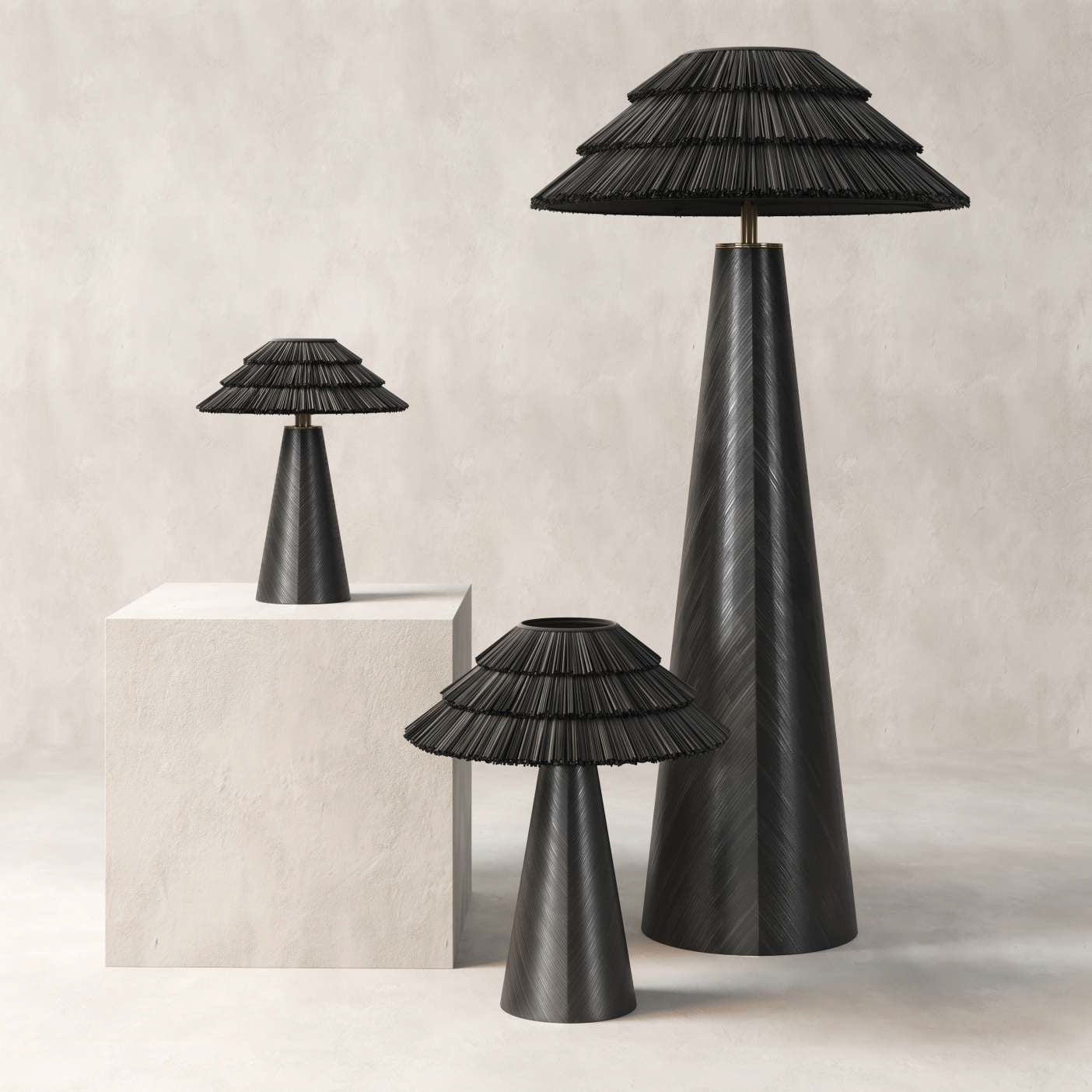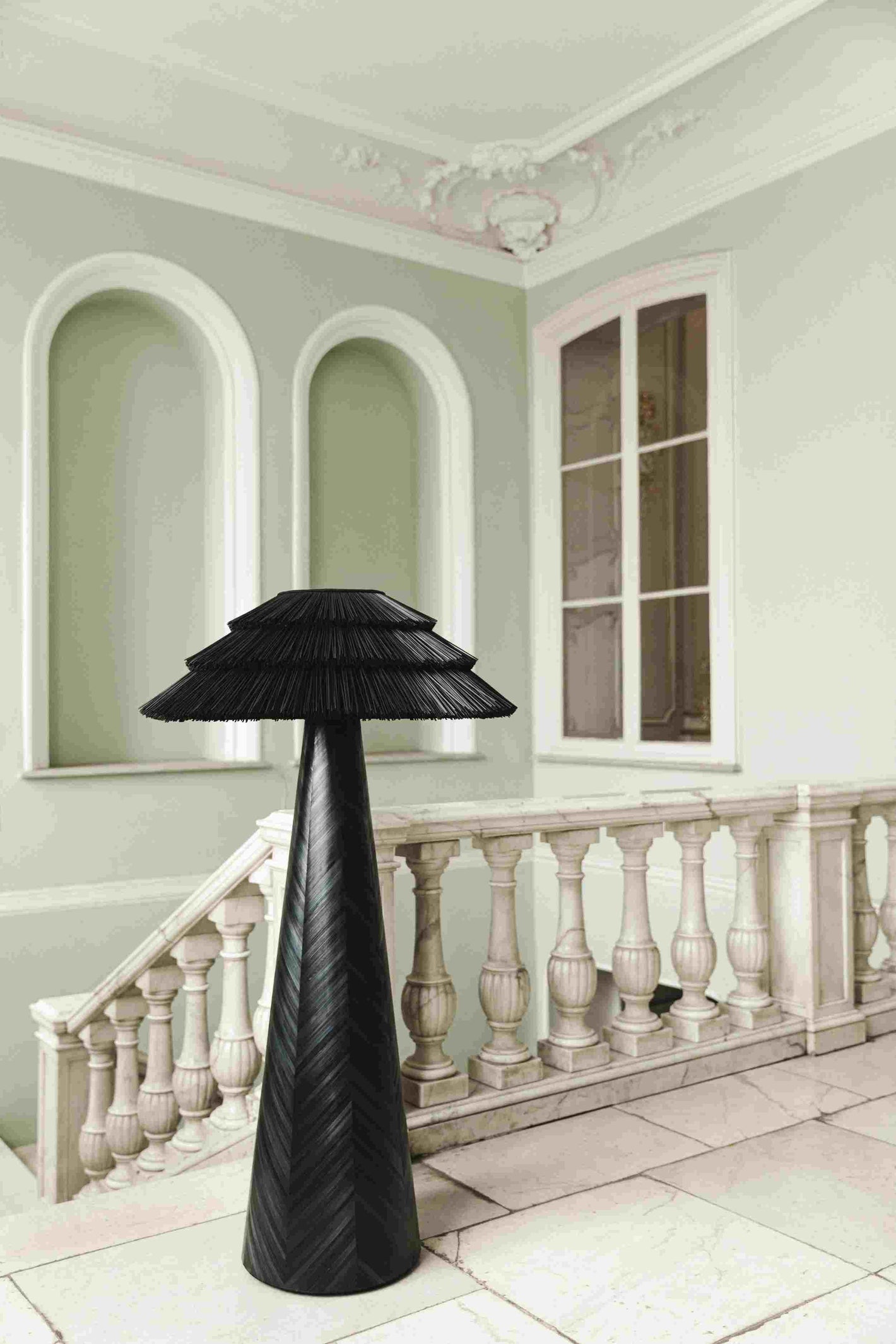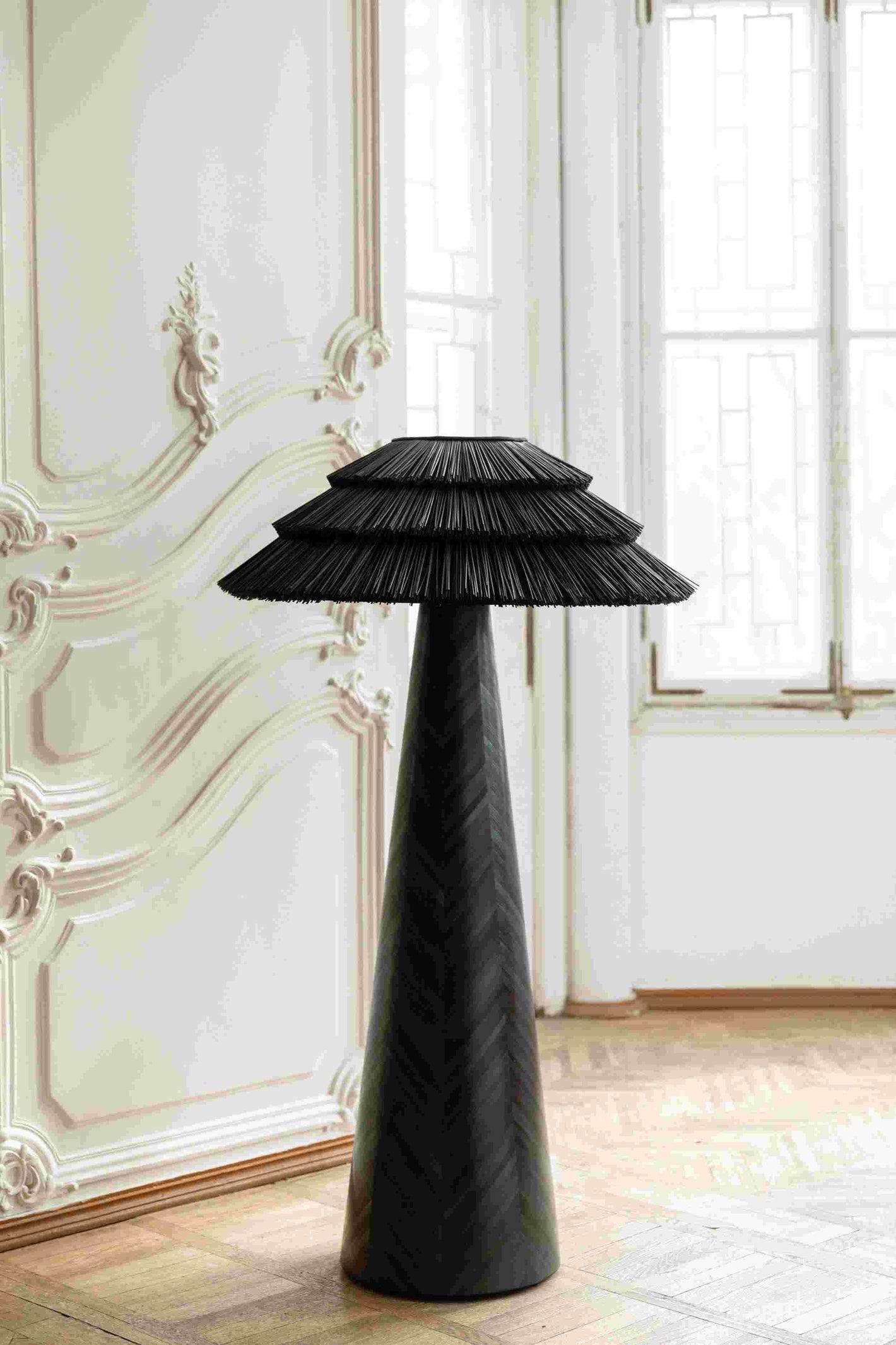 This modern floor lamp from the ROOTS OF HOME collection was inspired by the architectural beauty of ancient Ukrainian homes. The lampshade gracefully mirrors the appearance of a traditional roof, adorned with its terracing of straw or shingles, meticulously created using a centuries old intricate technique.