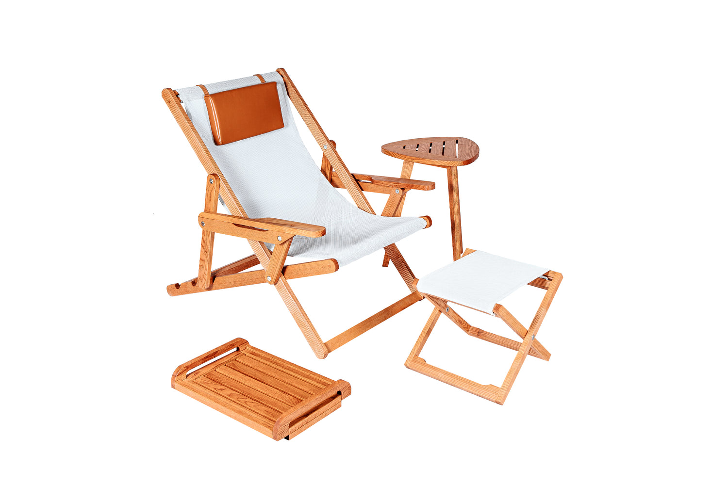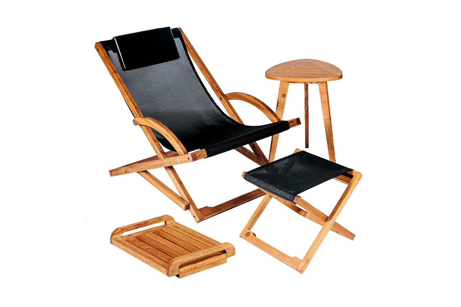 You have the option to order a complete set that includes a chaise lounge chair, a coffee table, a footrest, a tray and a head pillow.