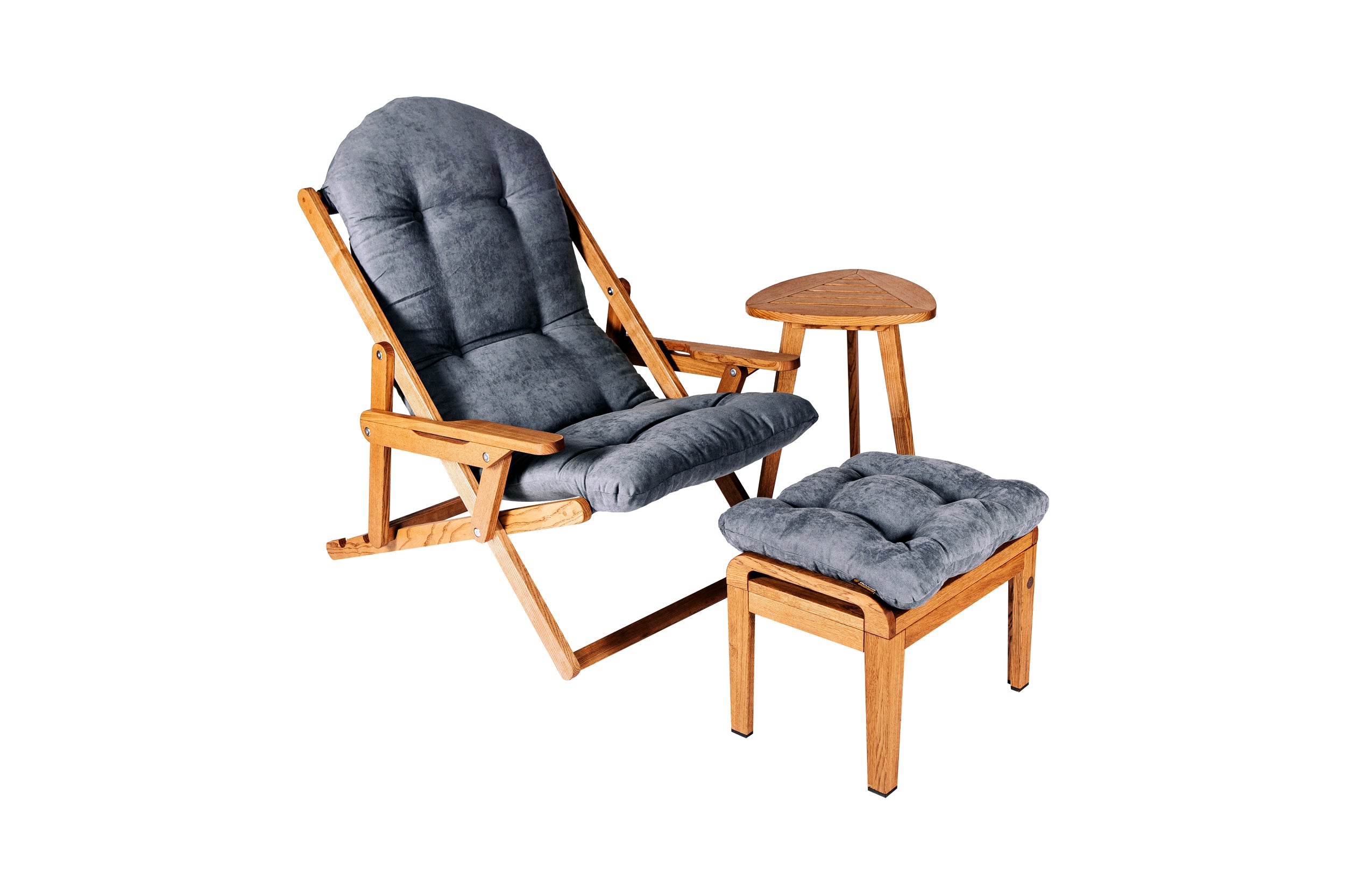 You have the option to order a complete set that includes a chaise lounge chair, a coffee table, a footrest, a tray and a cushion.