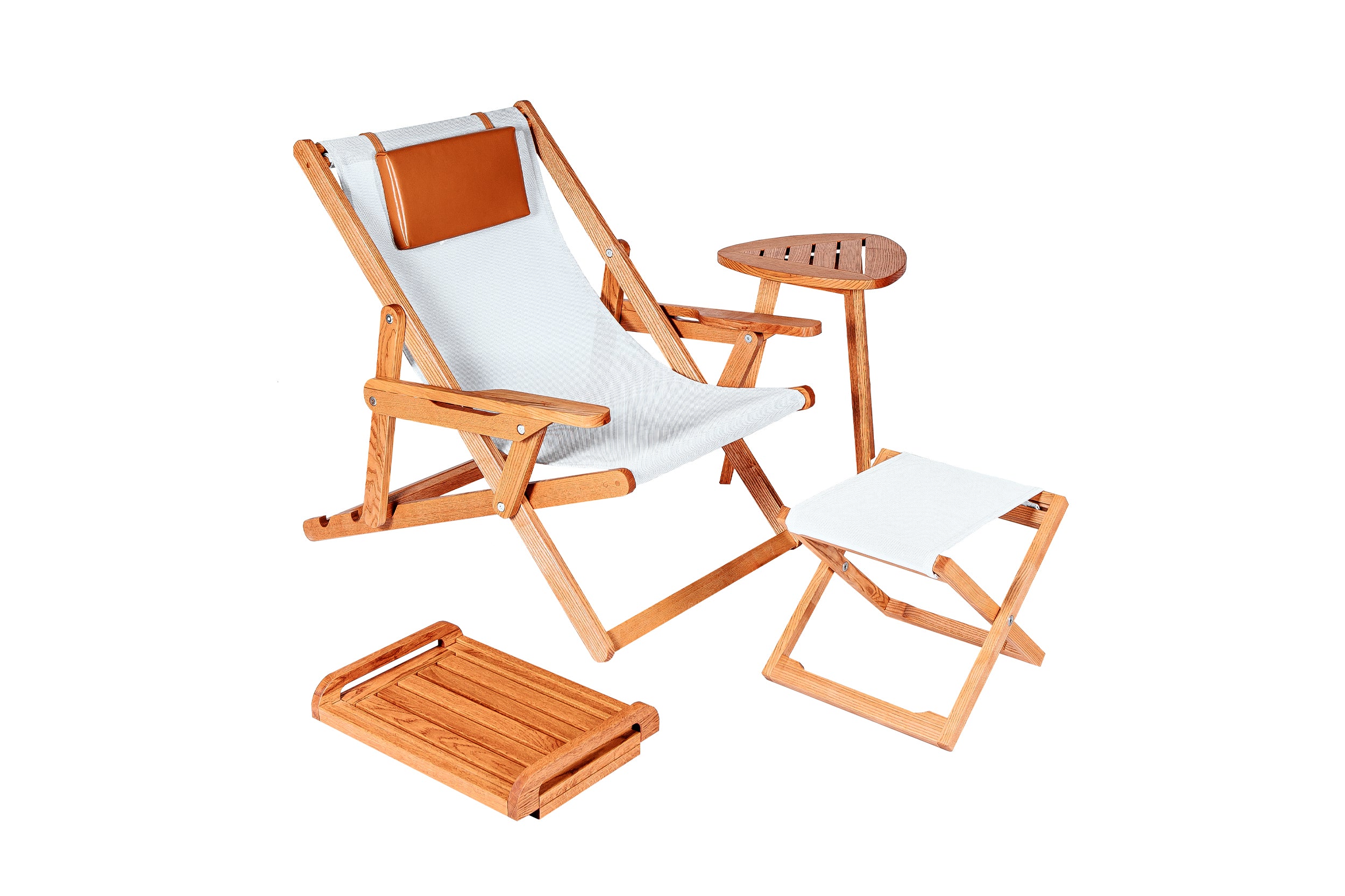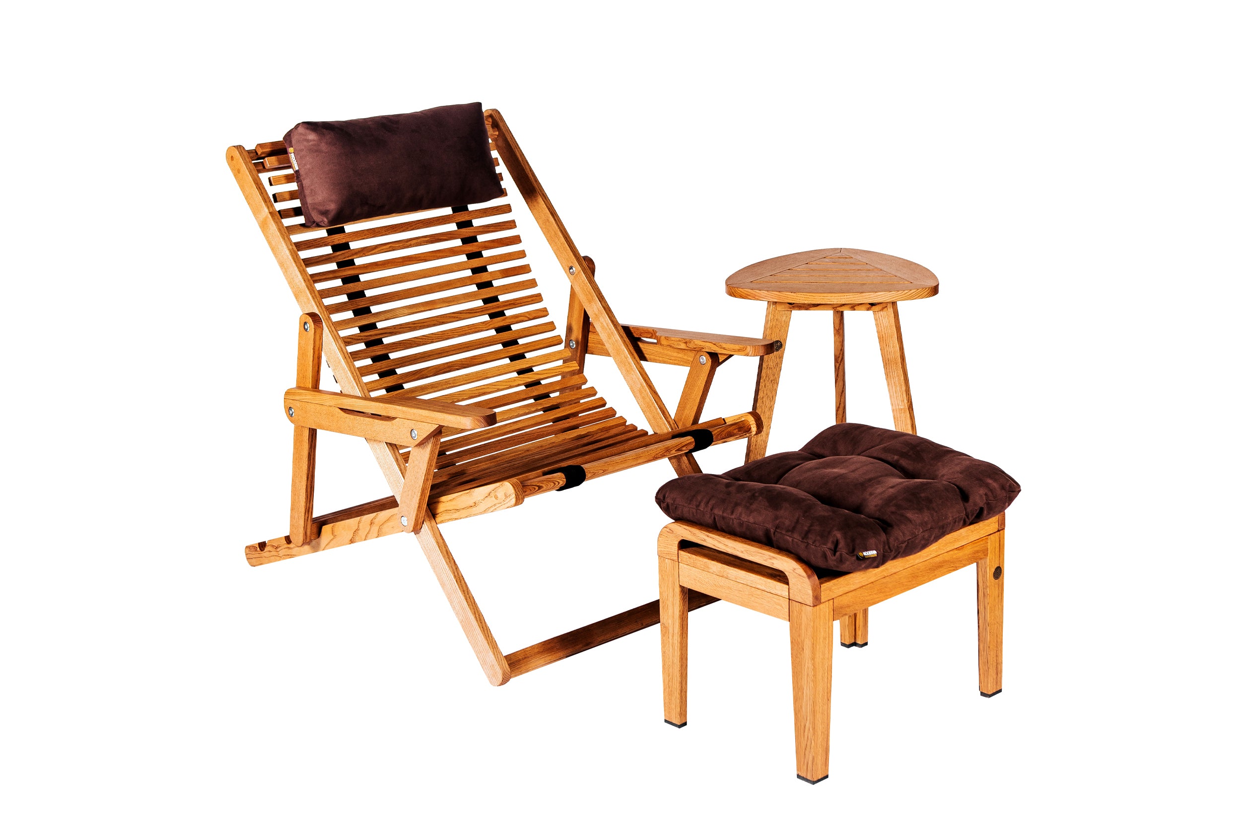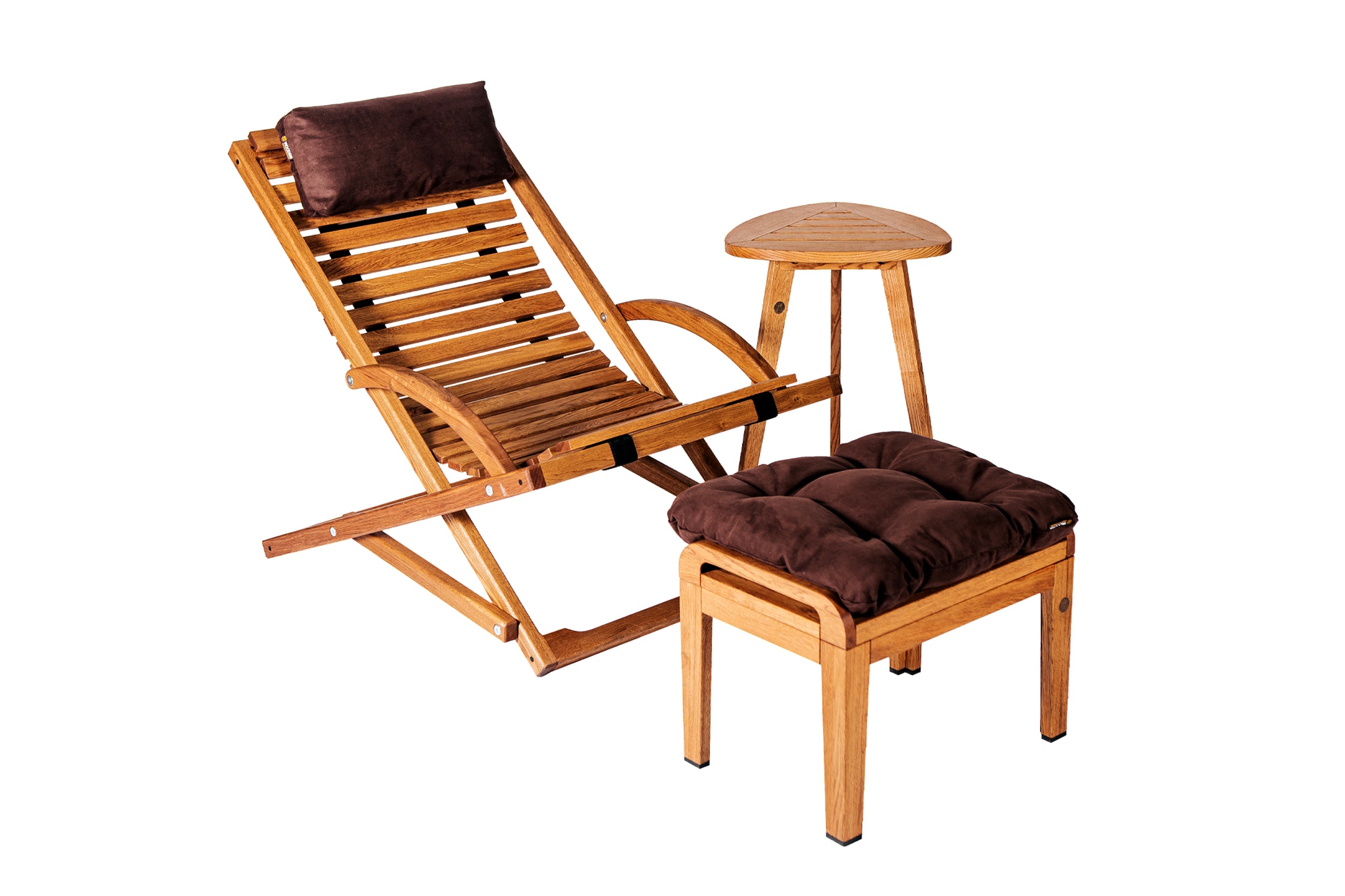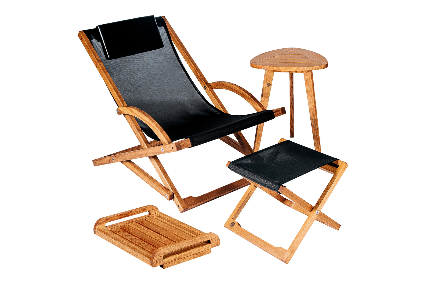 You have the option to order a complete set that includes a chaise lounge chair, a coffee table, a footrest, a tray and a head pillow.