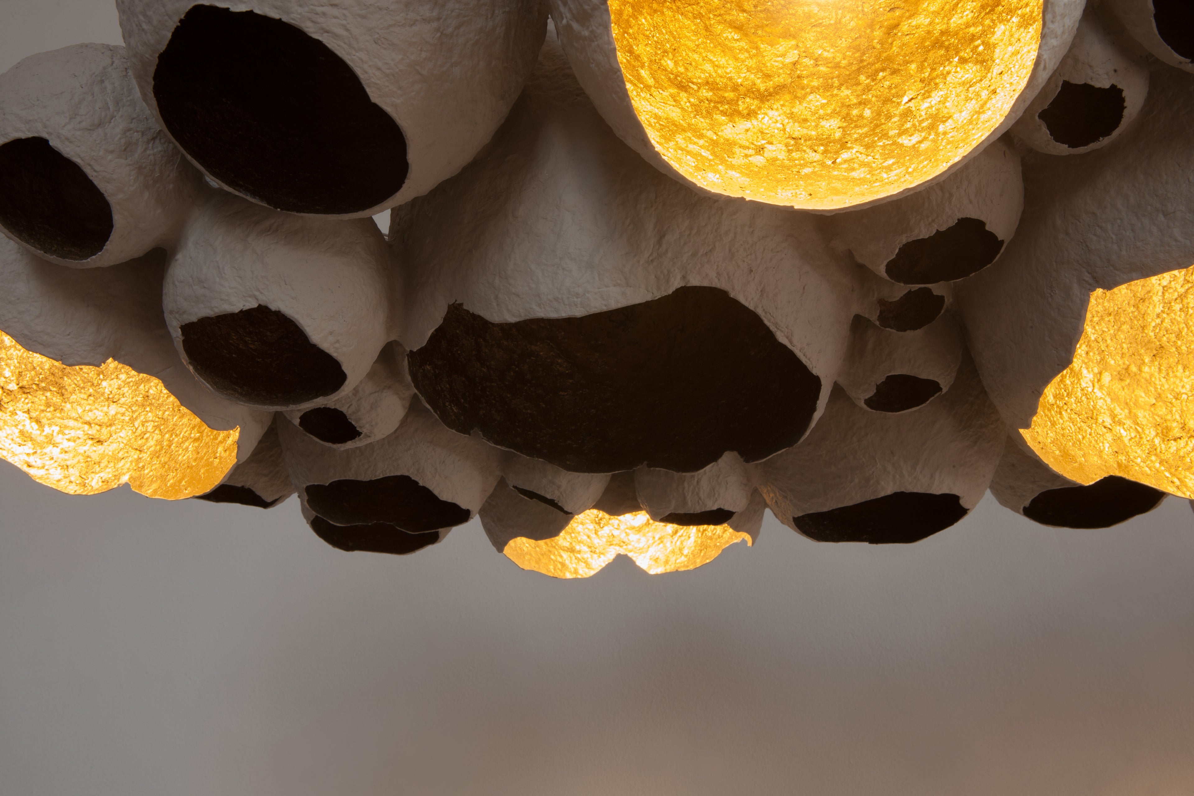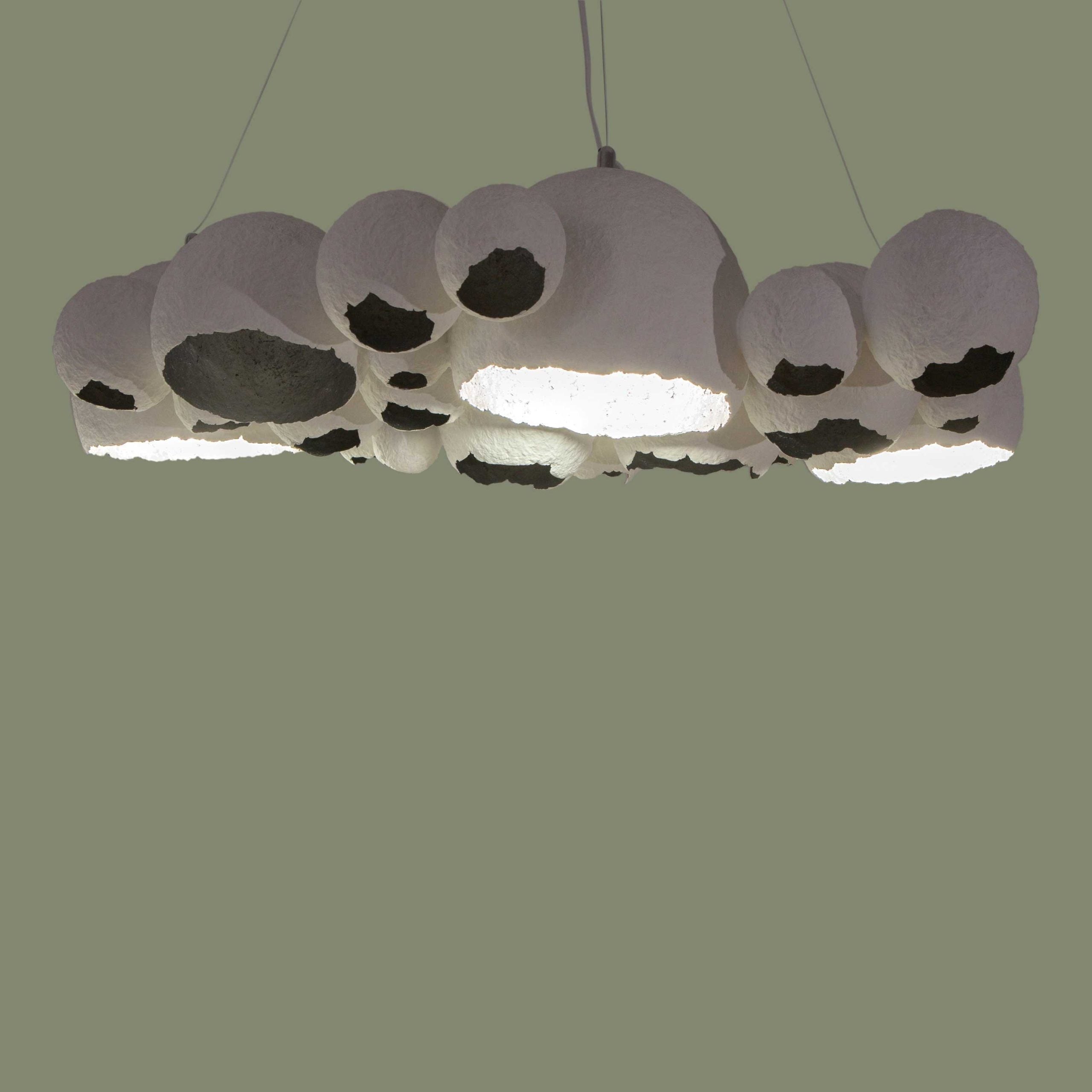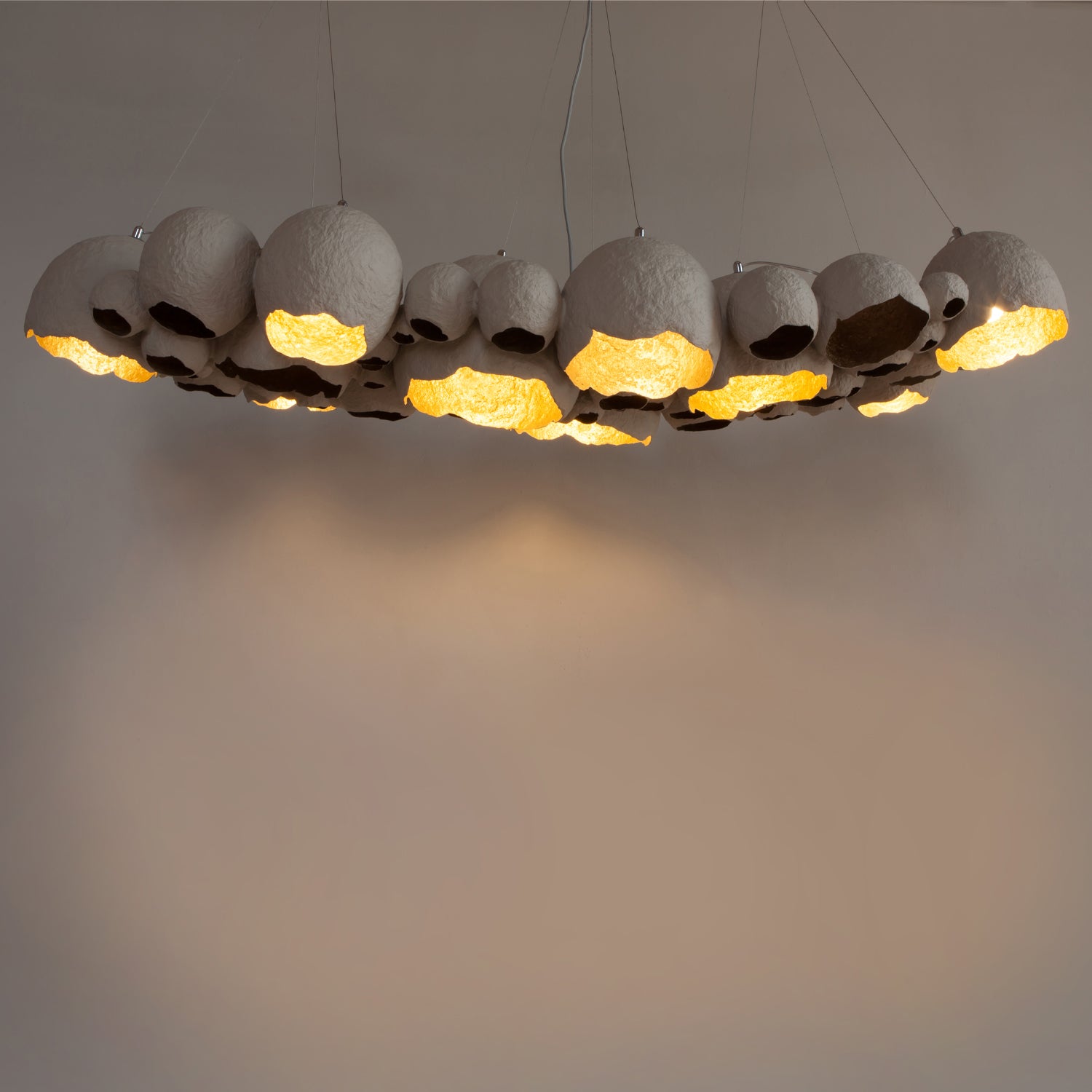 The name BAVOVNA, meaning 'Cotton' in Ukrainian, perfectly encapsulates the spirit of this luminaire. Its sprawling form is delicately arranged, destined to bestow an air of lightness upon your space. The capricious variety in the dimensions of each module introduces rhythm and a distinctive vibrational quality to your interior, making BAVOVNA a true work of art.