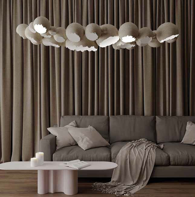 BAVOVNA is an artistic expression designed to enhance the ambiance of your living space. Perfect for illuminating your dining table or sofa group, it effortlessly underscores the logical focal point of the room, captivating the gaze of everyone present. For a tailored touch, we offer the option to create a Bavovna fixture proportionate to the size of your table.