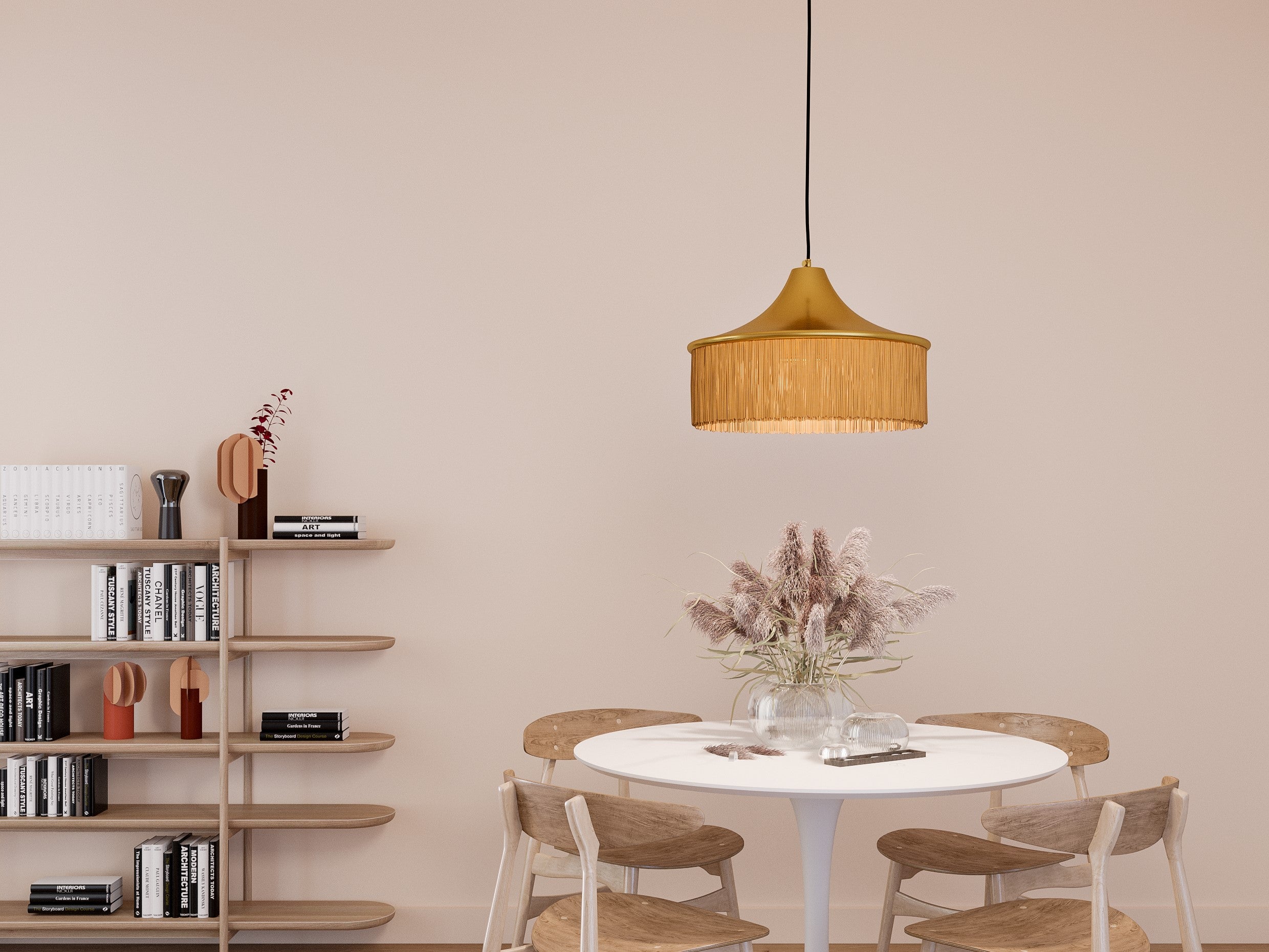 Fringe adds a unique charm to both the lamp and the room, creating a cosy atmosphere with its warm, softly diffused light. The delicate texture of the fringe not only enhances the lamp’s design but also brings a sense of comfort and warmth to the space