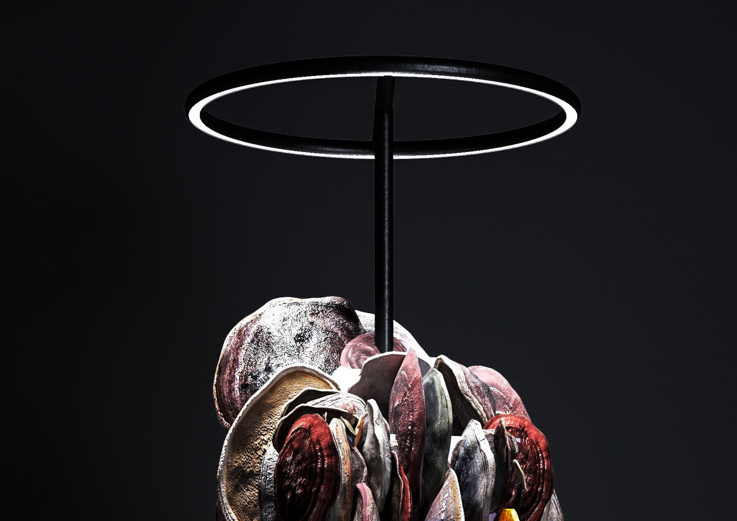Materials: Metal, plywood, wood polyporemushrooms, LED