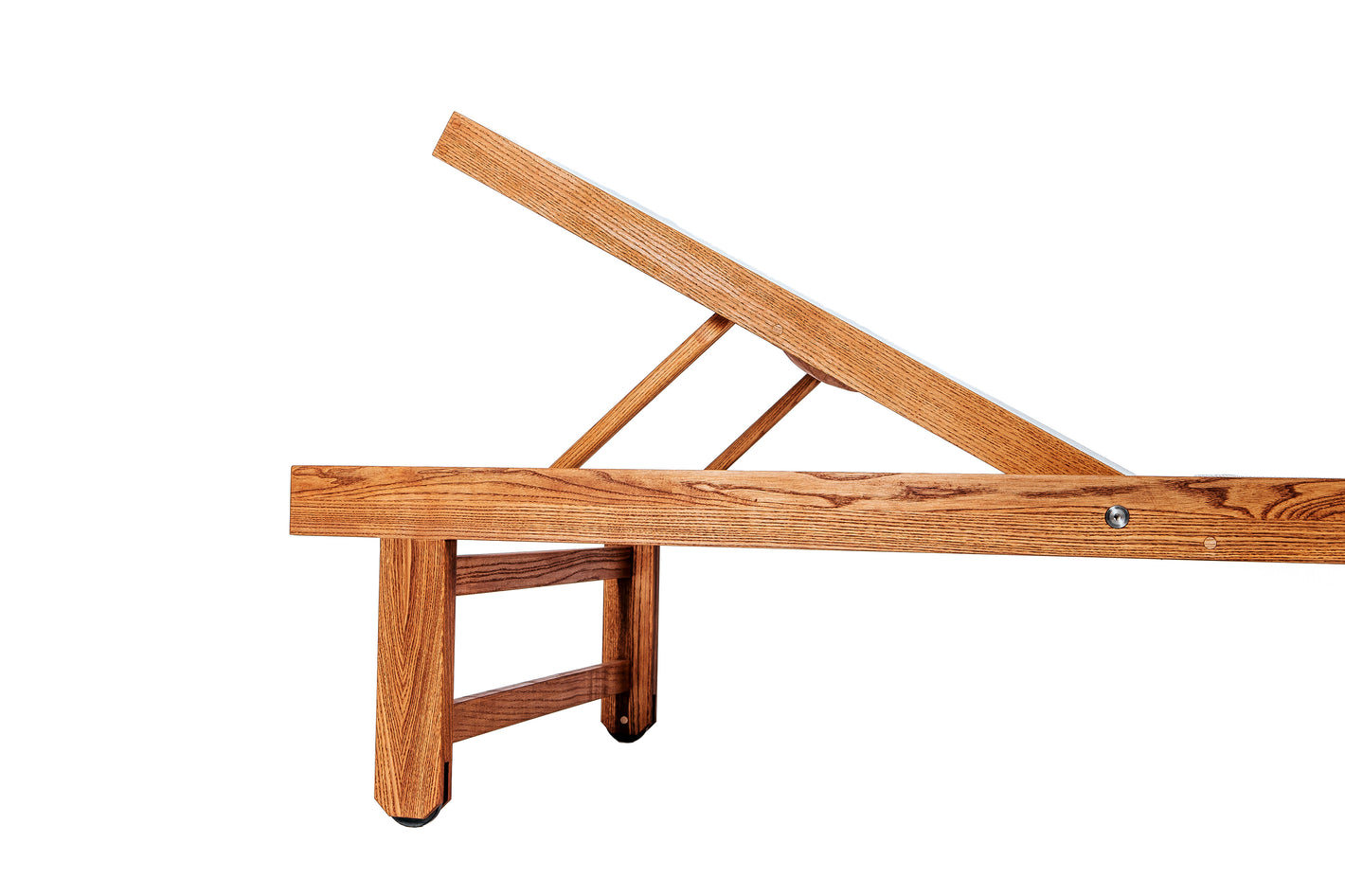 Sustainably crafted from natural materials, the "Chalet" chaise longue meets rigorous quality standards, ensuring both environmental friendliness and long-lasting durability. Its rich, natural wood tone is specially treated to resist fading and wear, providing both beauty and longevity to your outdoor decor.