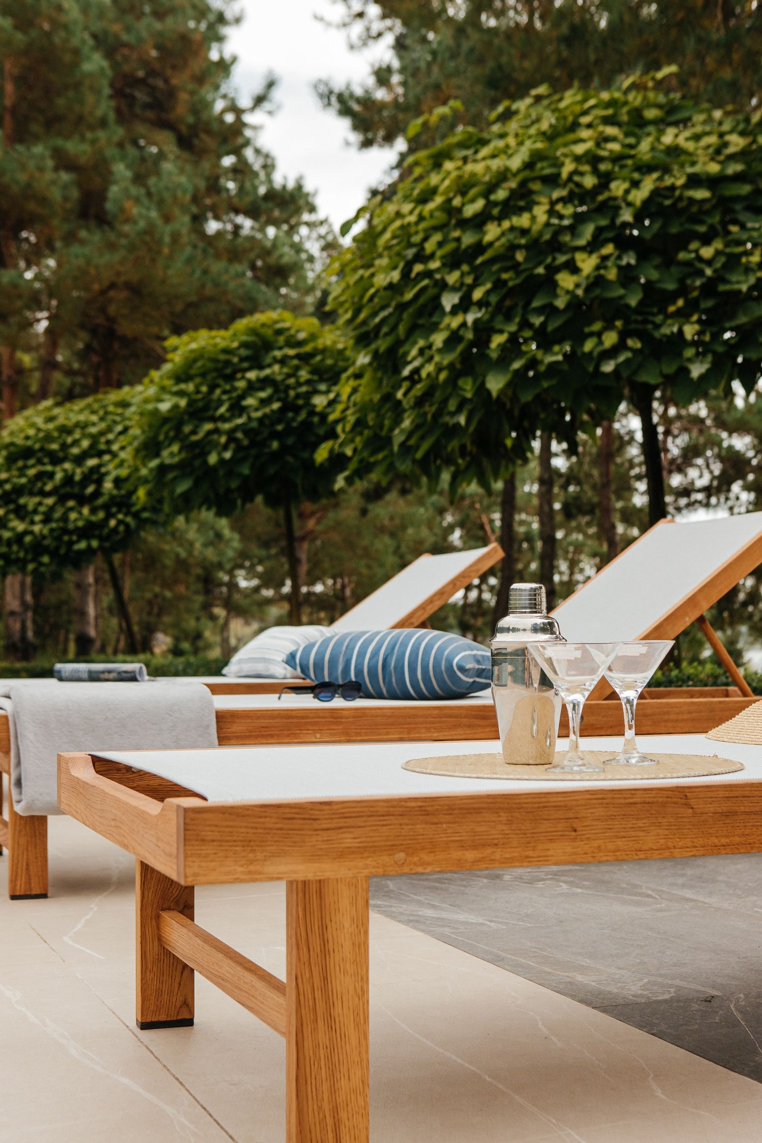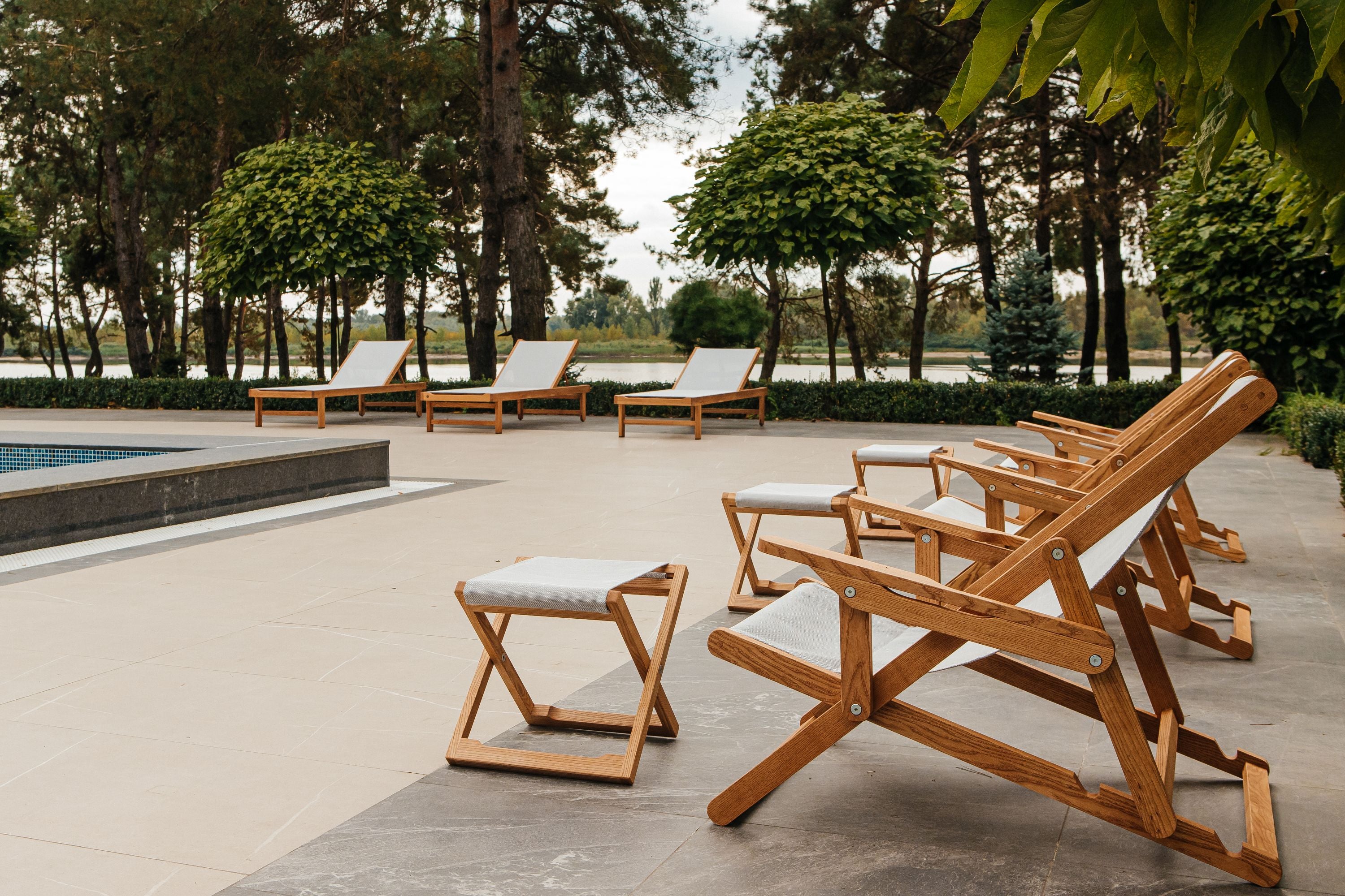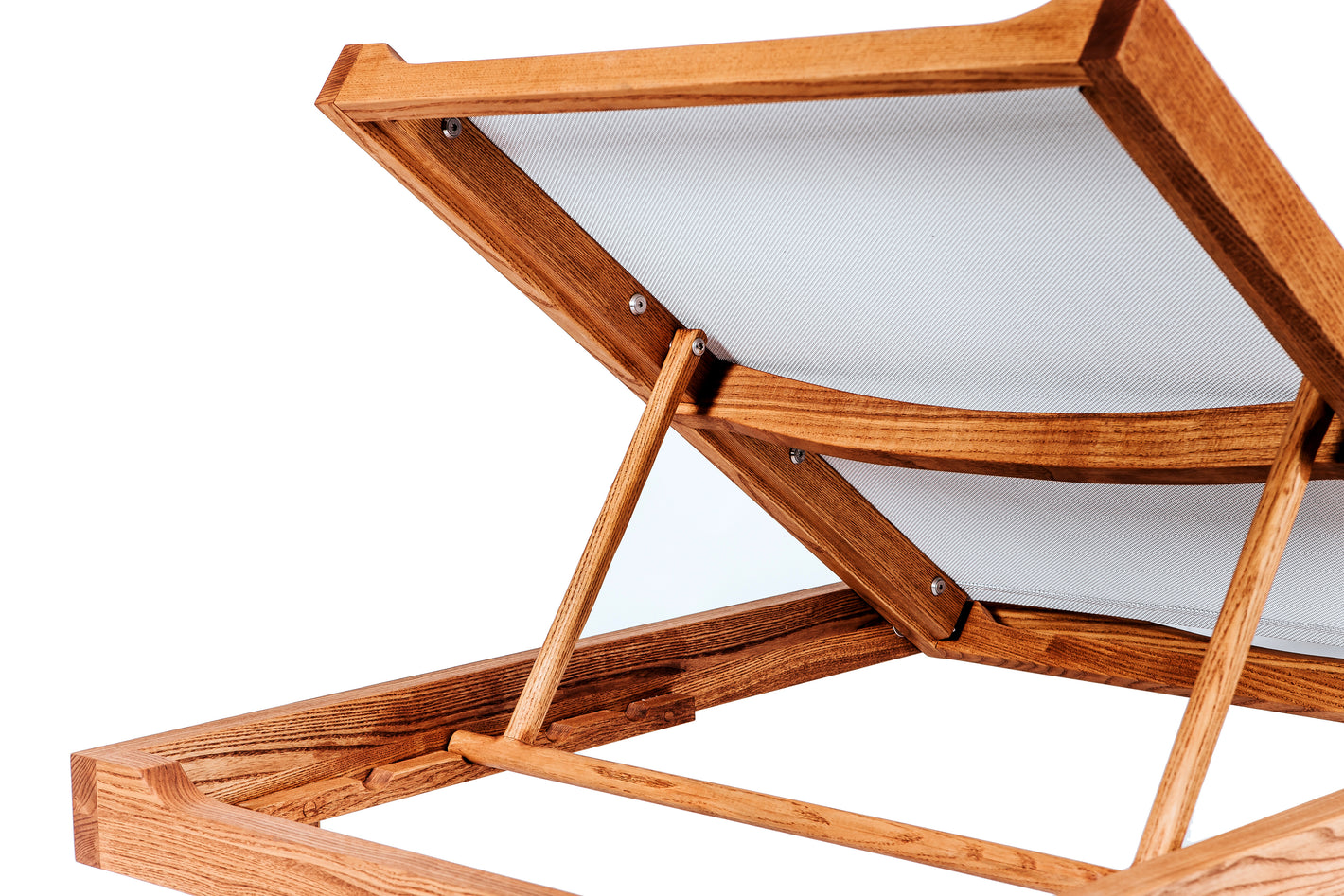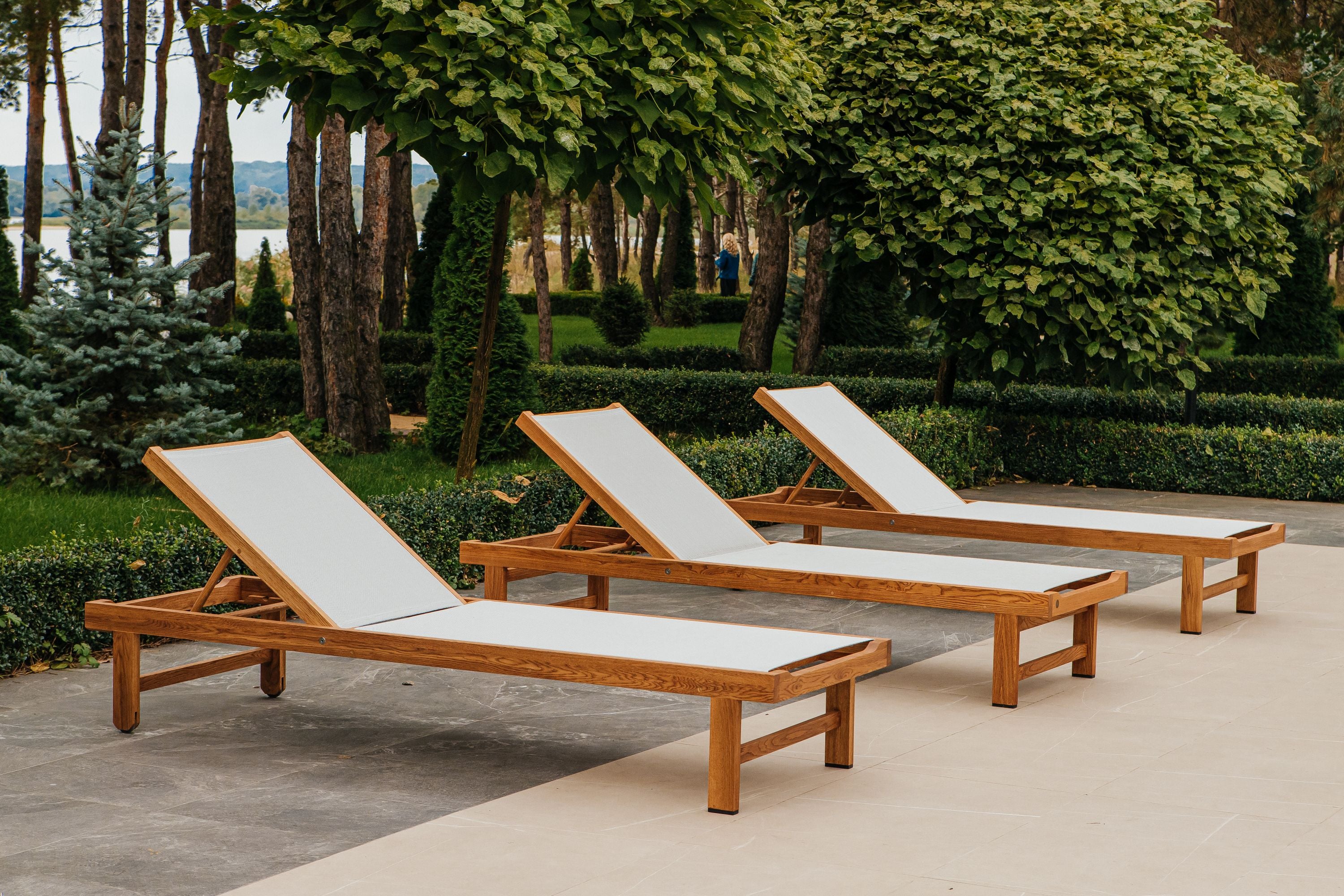 Furthermore, for the deckchair's fabric, we use high-quality Textilene — a polyester fiber coated with PVC from the renowned French company, "Serge Ferrari". This material is celebrated for its durability and is available in a wide variety of colors to match your style.