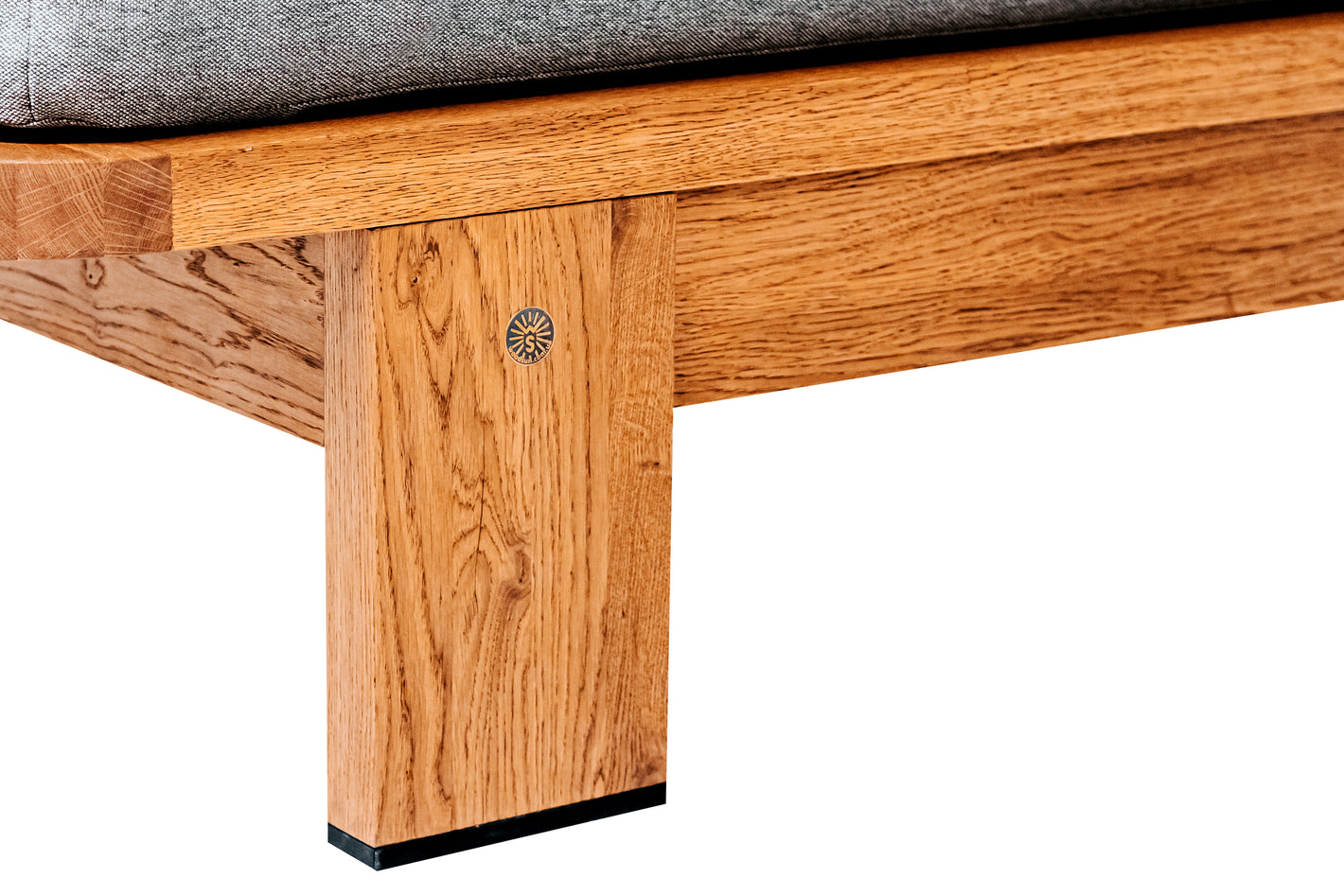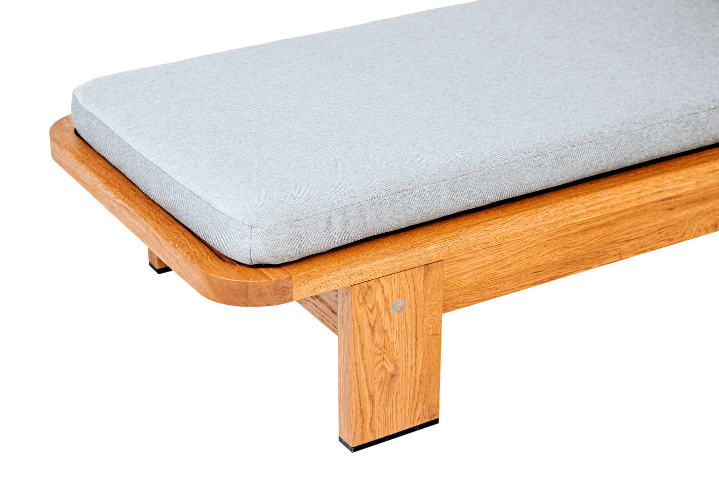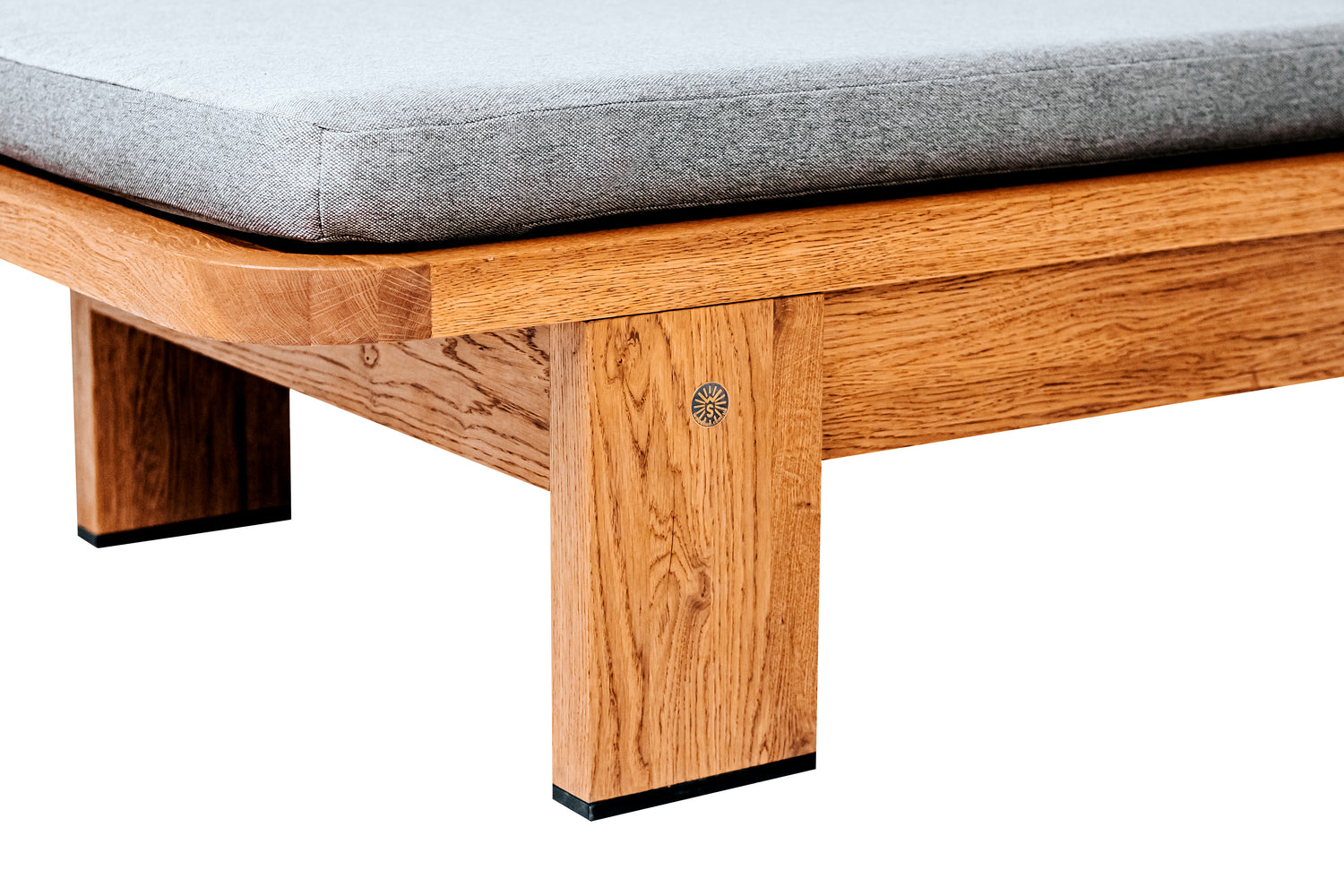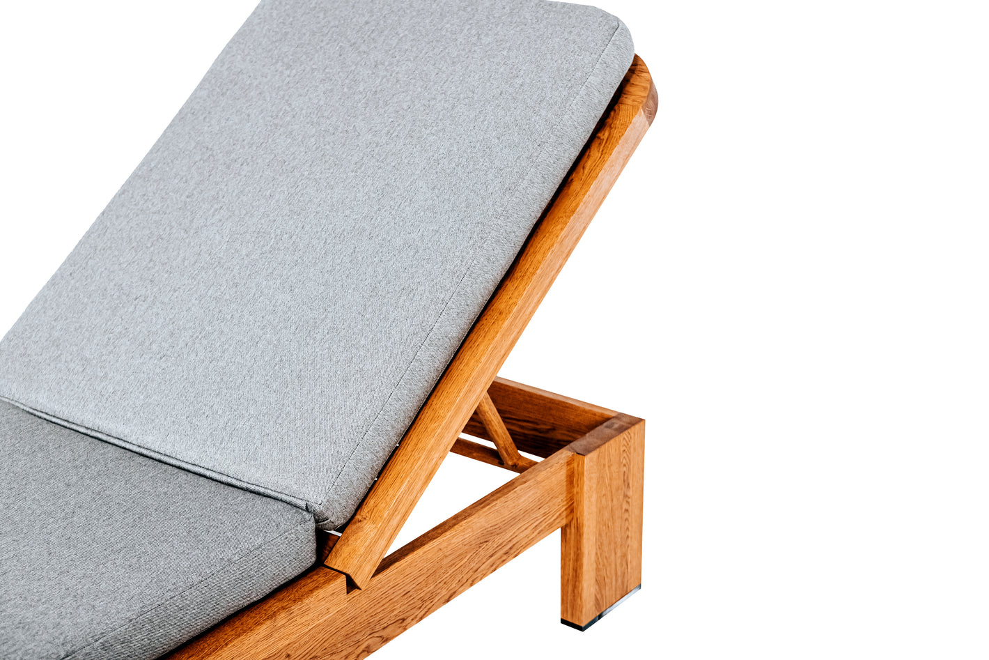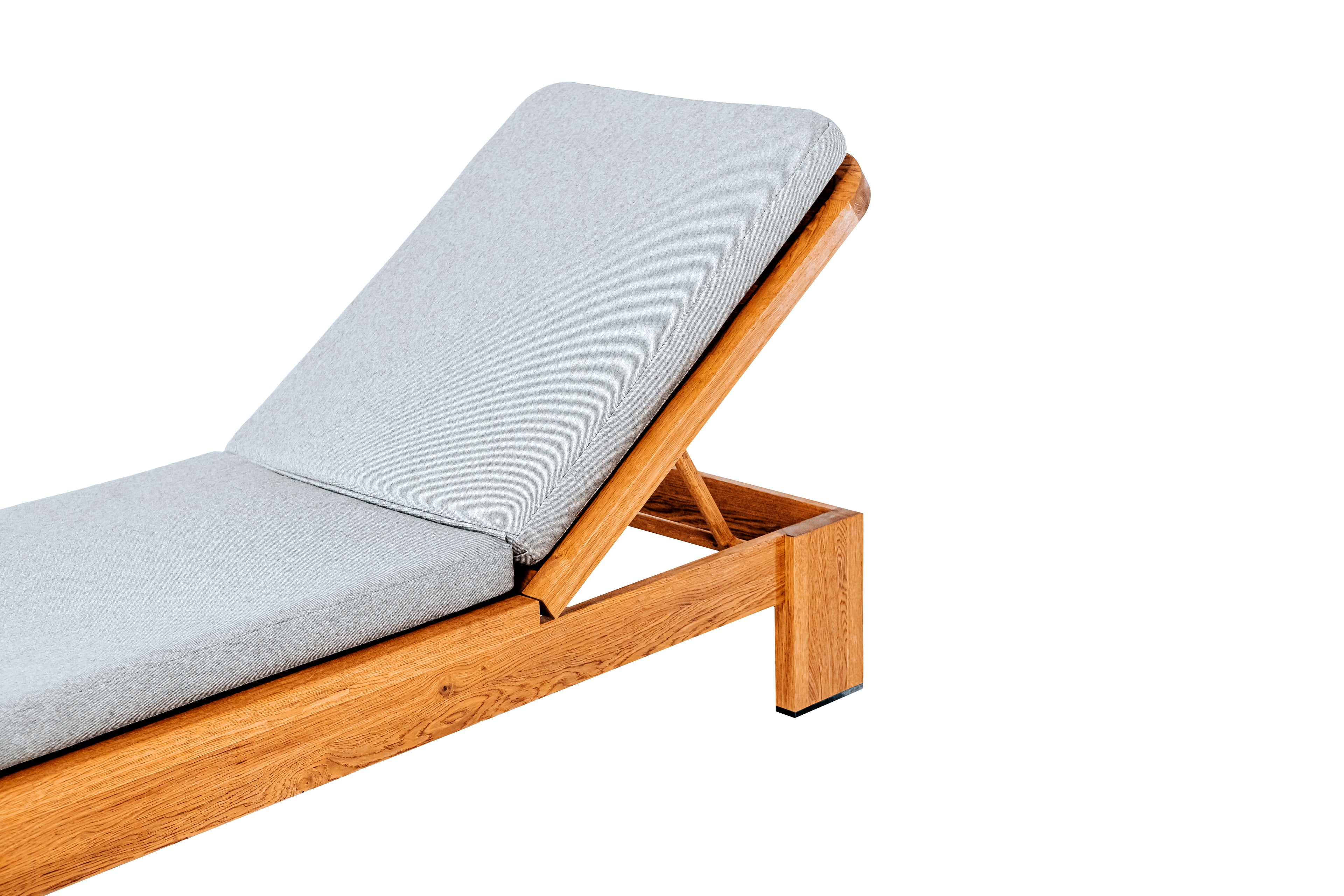 This chaise longue is crafted with a commitment to sustainability, utilizing natural materials and adhering to stringent quality standards. Its robust design ensures lasting durability, while the rich, natural wood finish is specially treated to resist fading and damage, maintaining both its functional and aesthetic appeal through the seasons.