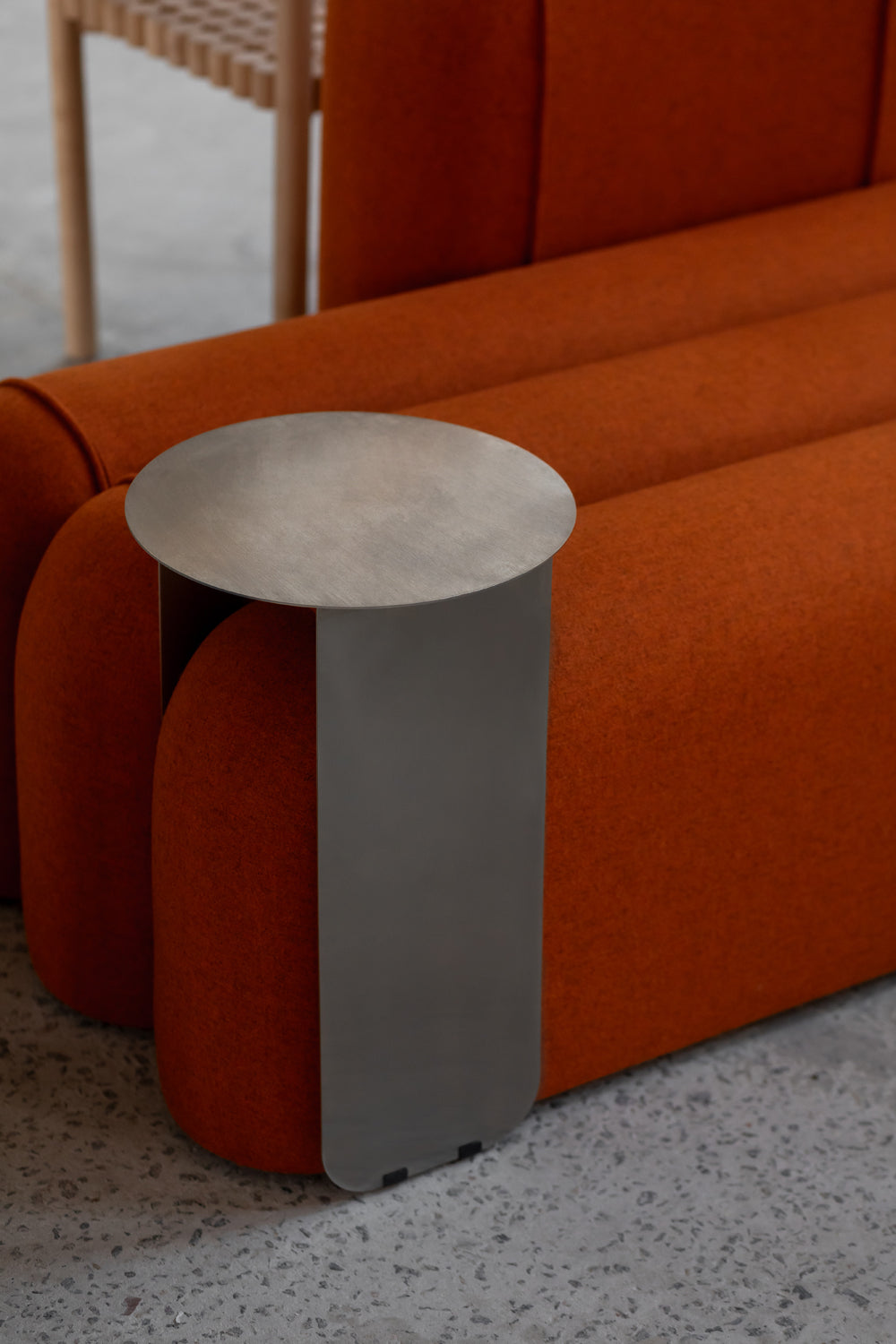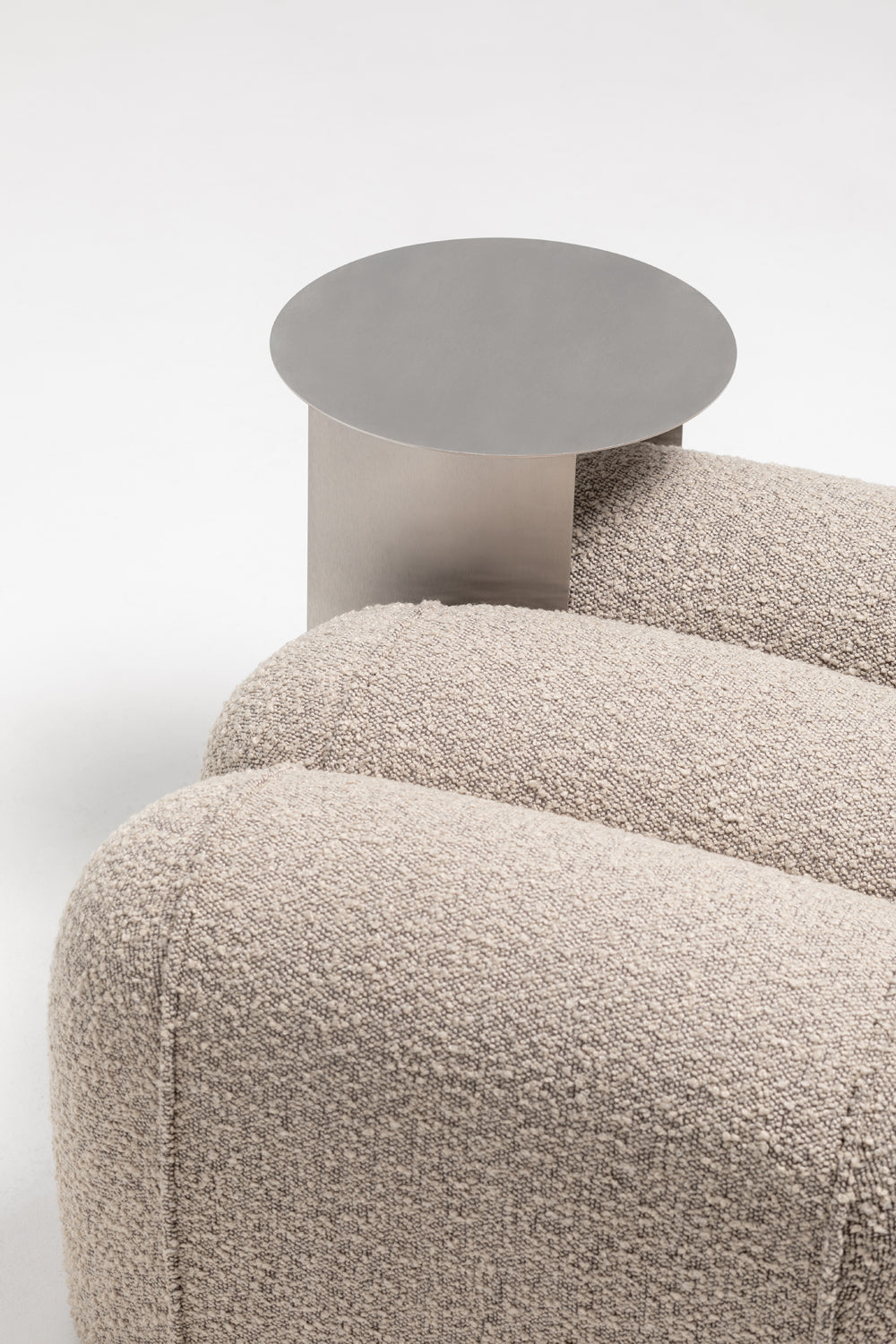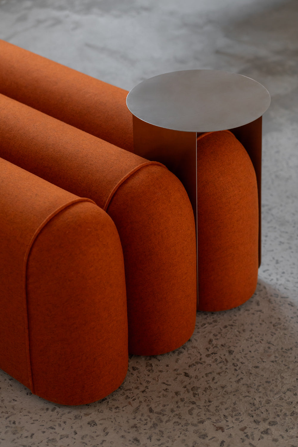 Max Modular Table is a compact, metal modular table designed by Rostyslav Sorokov as a functional component for the Puffa System collection of soft seating modules. It serves as a flexible surface that can be positioned between upholstered segments to support both residential and commercial interior layouts.