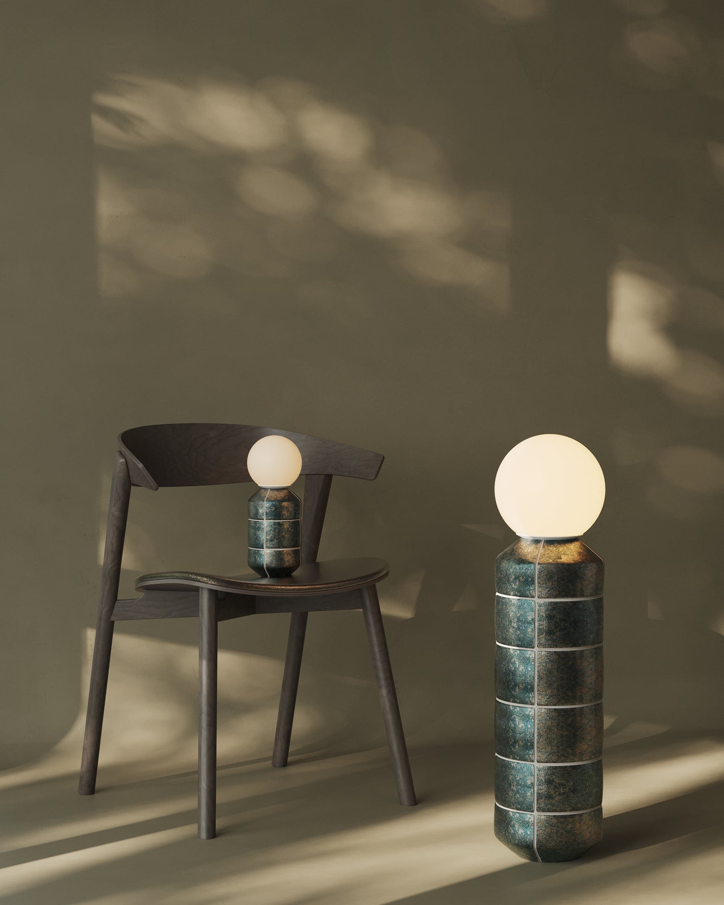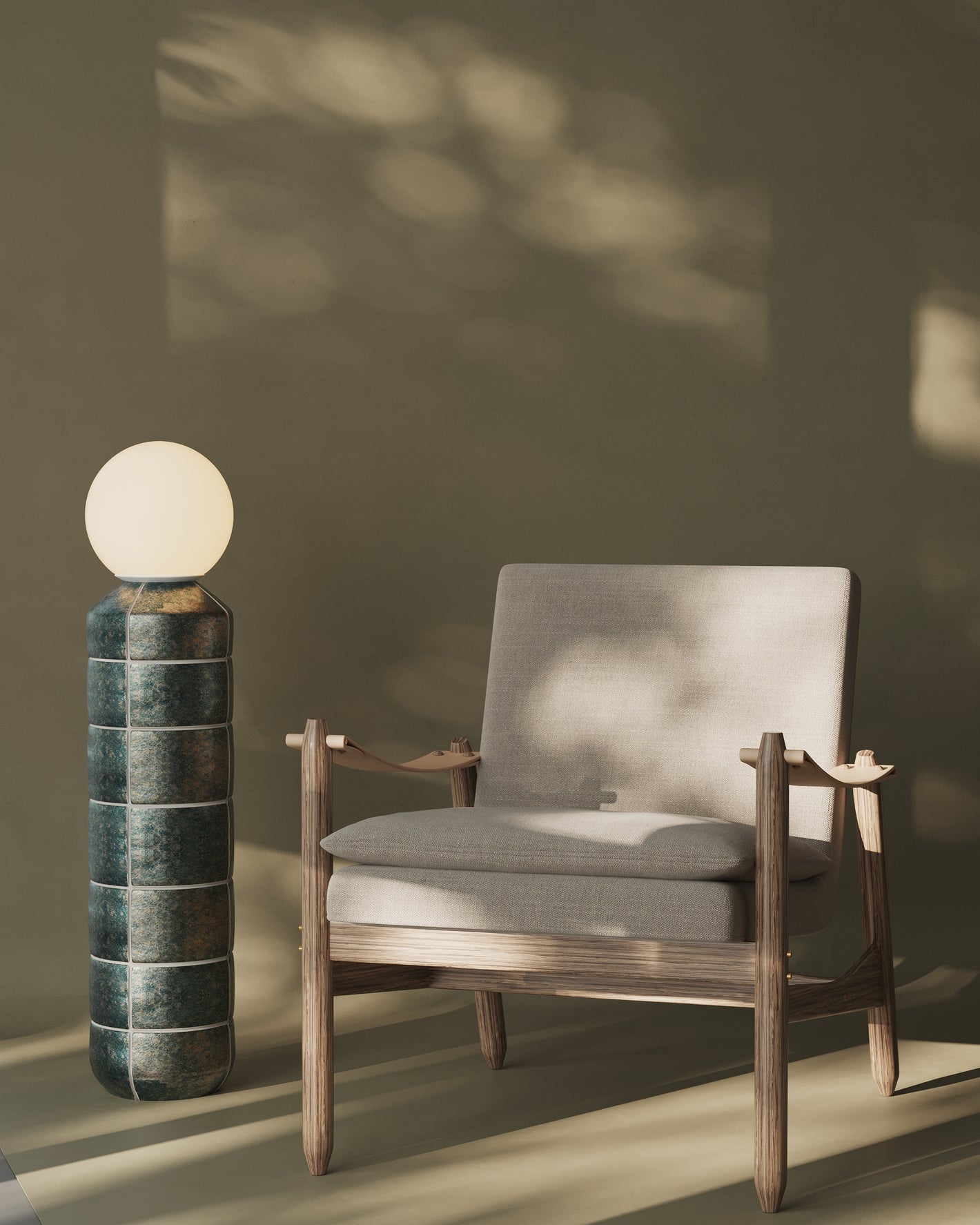 The NAVAZI floor lamp embodies an elegant design that seamlessly marries contemporary aesthetics with traditional techniques. Every detail has been carefully considered, resulting in a harmonious blend of form and function. The lamp's focal point lies in the hand-blown glass orbs, available in an array of colours, which cast a mesmerising display of light and shadows.