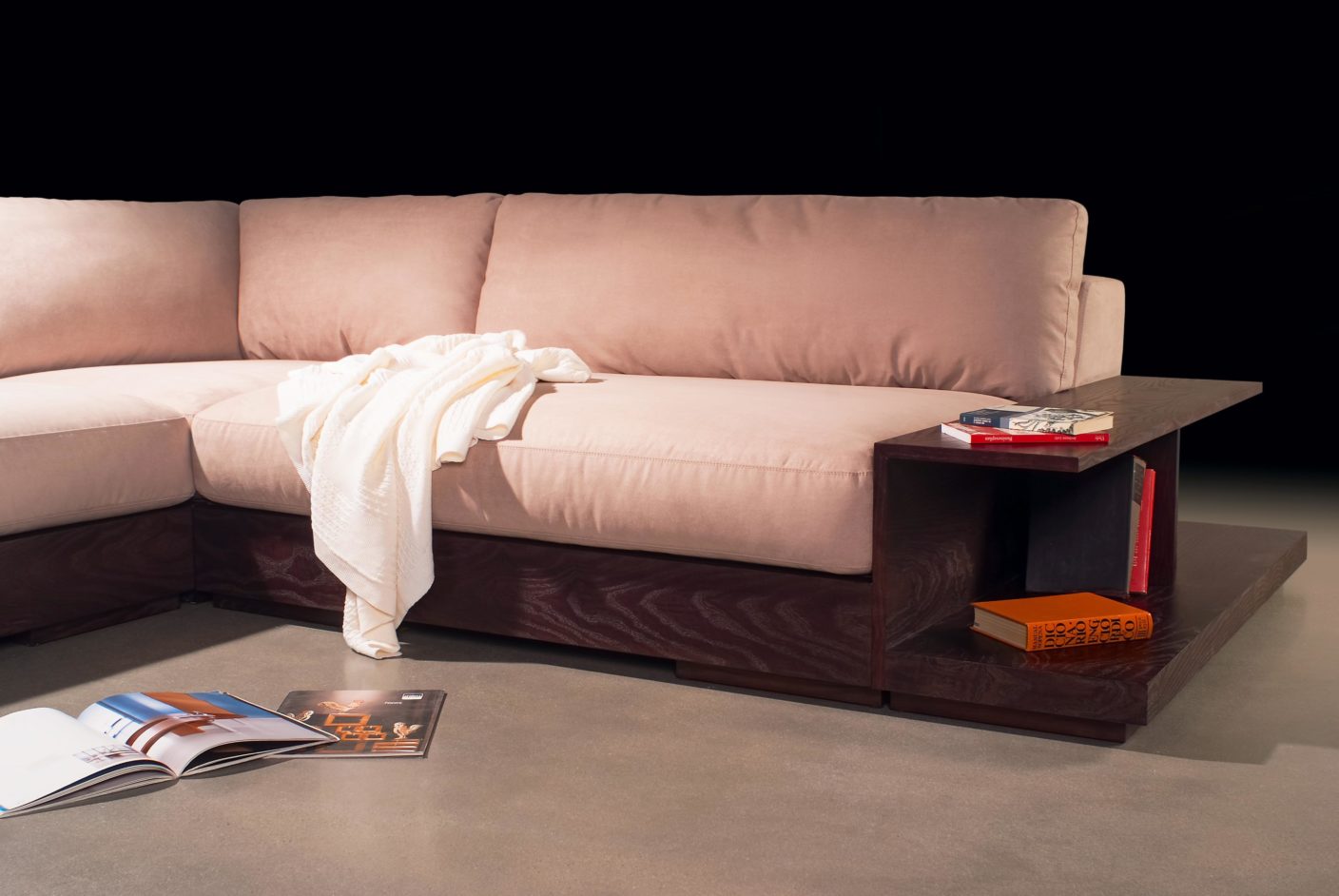 APPIANI is a premium collection of upholstered furniture that highlights the beauty of natural materials. The design focuses on a podium base crafted from solid ash wood, minimally processed to showcase the wood's natural grain and inherent beauty. Generously sized seats, plush back cushions, and voluminous armrests offer exceptional comfort, perfectly complementing the elegant design of this model.