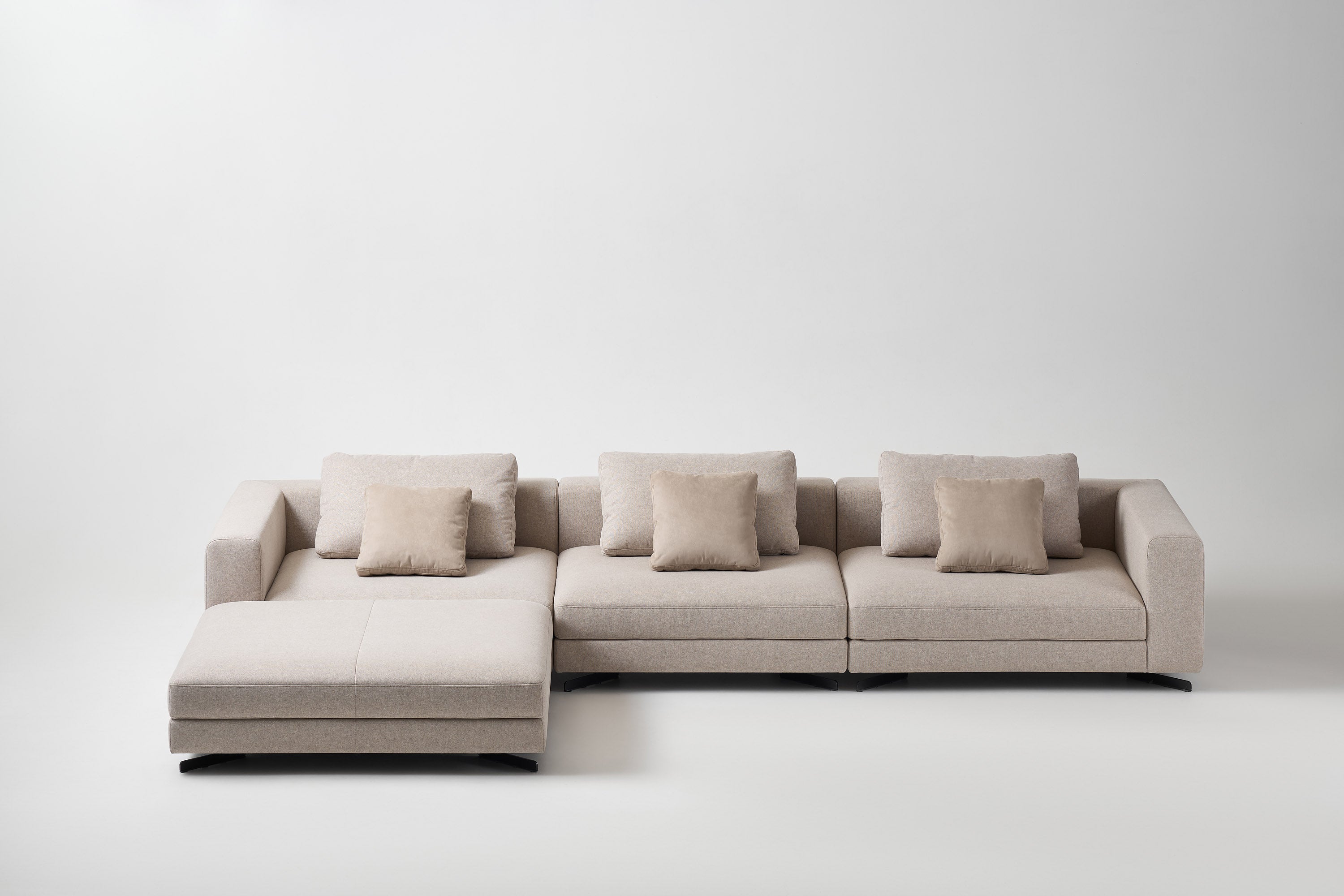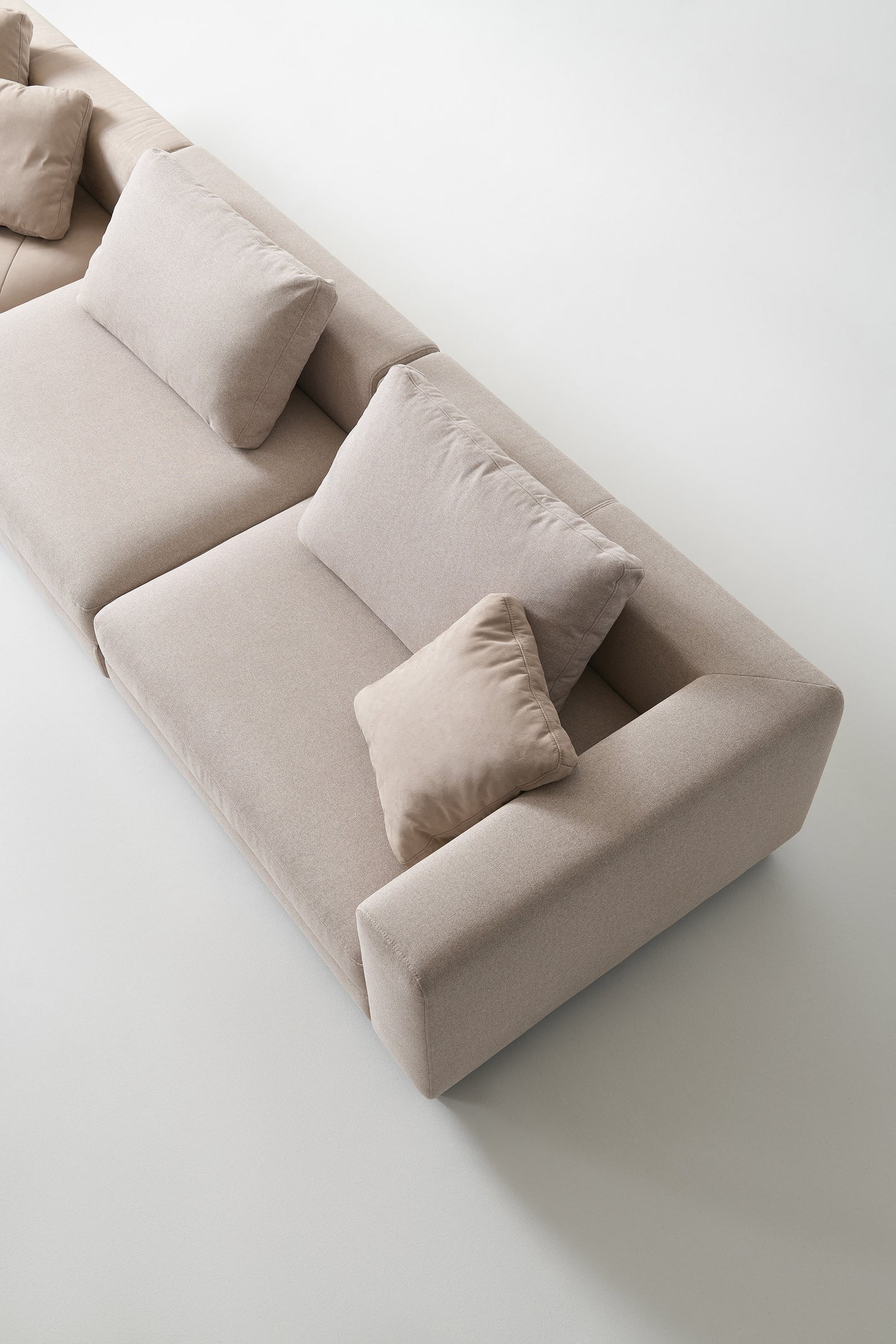 To purchase a modular sofa of this type, please add the following modules to your basket: Left armrest module, Armless module, Right armrest module and Pouffe Coin.