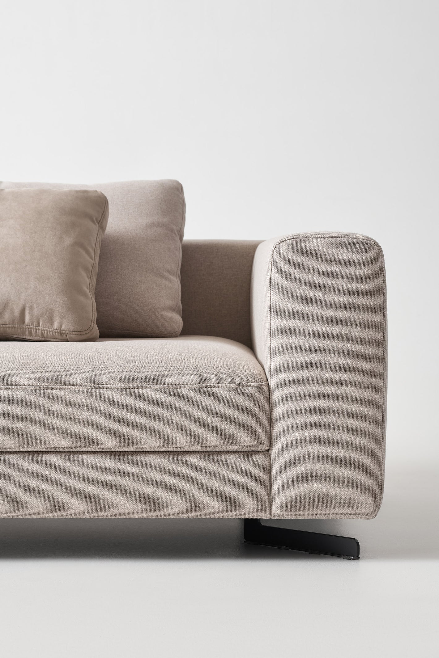 The Coin sofa embodies simplicity and style, making it a perfect addition to your interior. With this model, you can create a design that suits your taste by combining modules of different shapes, with or without defined quilting lines, and choosing upholstery materials in various shades and textures. The sofa’s supports are made of metal, while the frame is crafted from pine timber and birch plywood. The seat cushions are filled with polyurethane foam, and the back cushions with artificial swan down, ensuring both comfort and elegance. The Coin sofa is designed to bring cosy moments to your home.