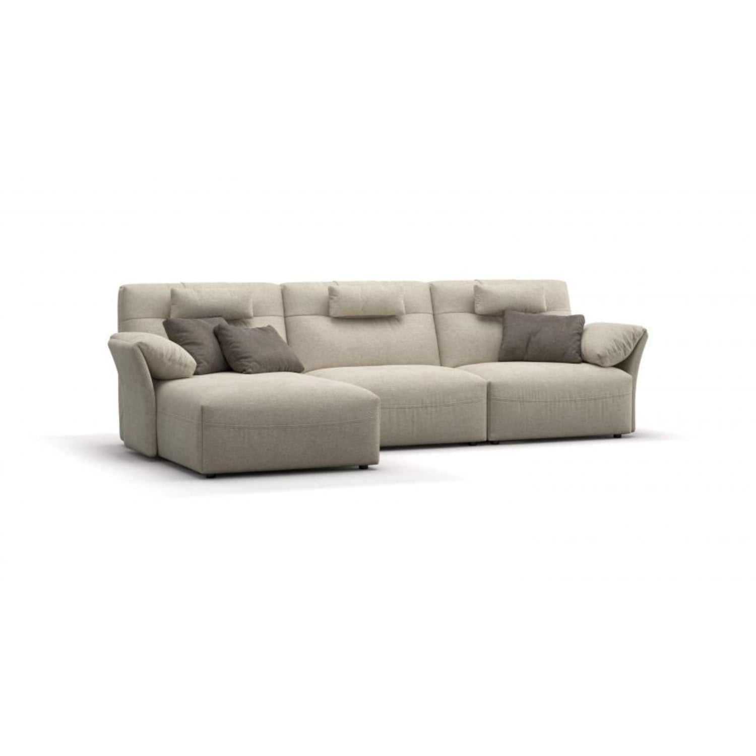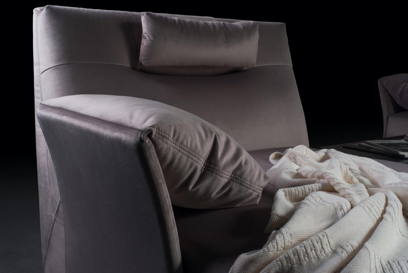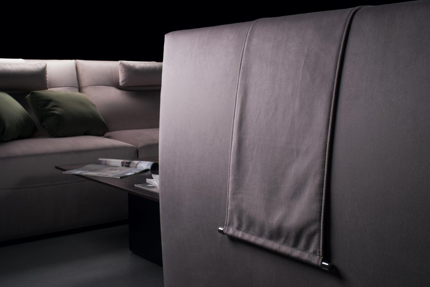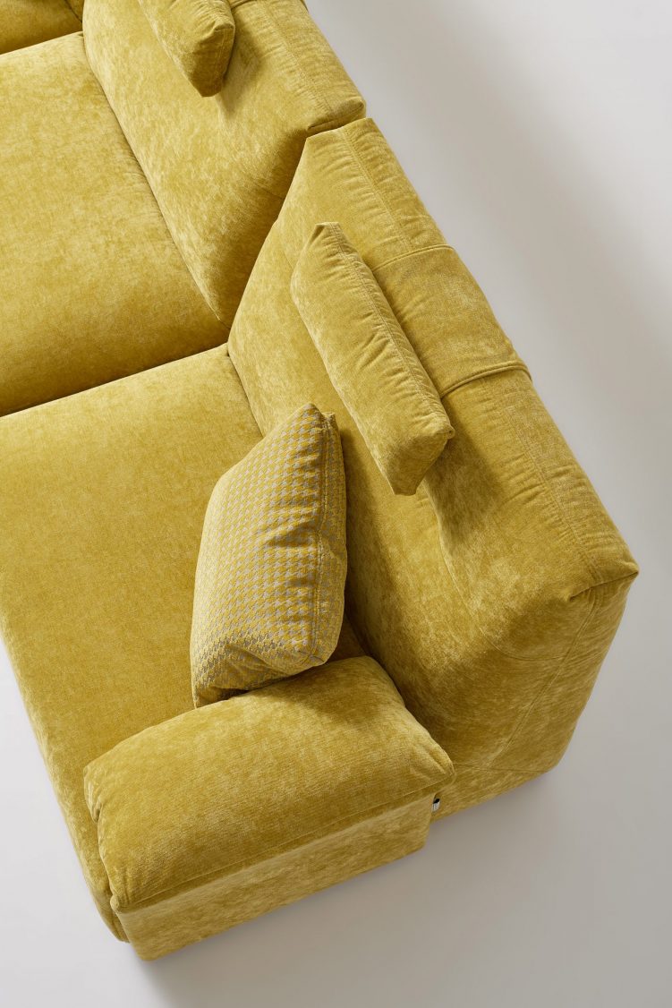 This sofa is available in two configurations: with side chaise moduls or as a straight sofa paired with a pouffe. For enhanced comfort, the Fio model is also equipped with adjustable head pillows, ensuring a relaxing and personalised seating experience.