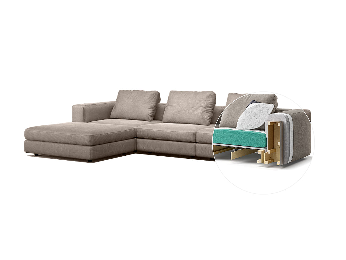 The Soho modular sofa features increased softness and high elasticity, offering exceptional comfort with plush cushioning that adapts to your body while maintaining its shape. Its balance of softness and support makes it perfect for a cosy, inviting living space.