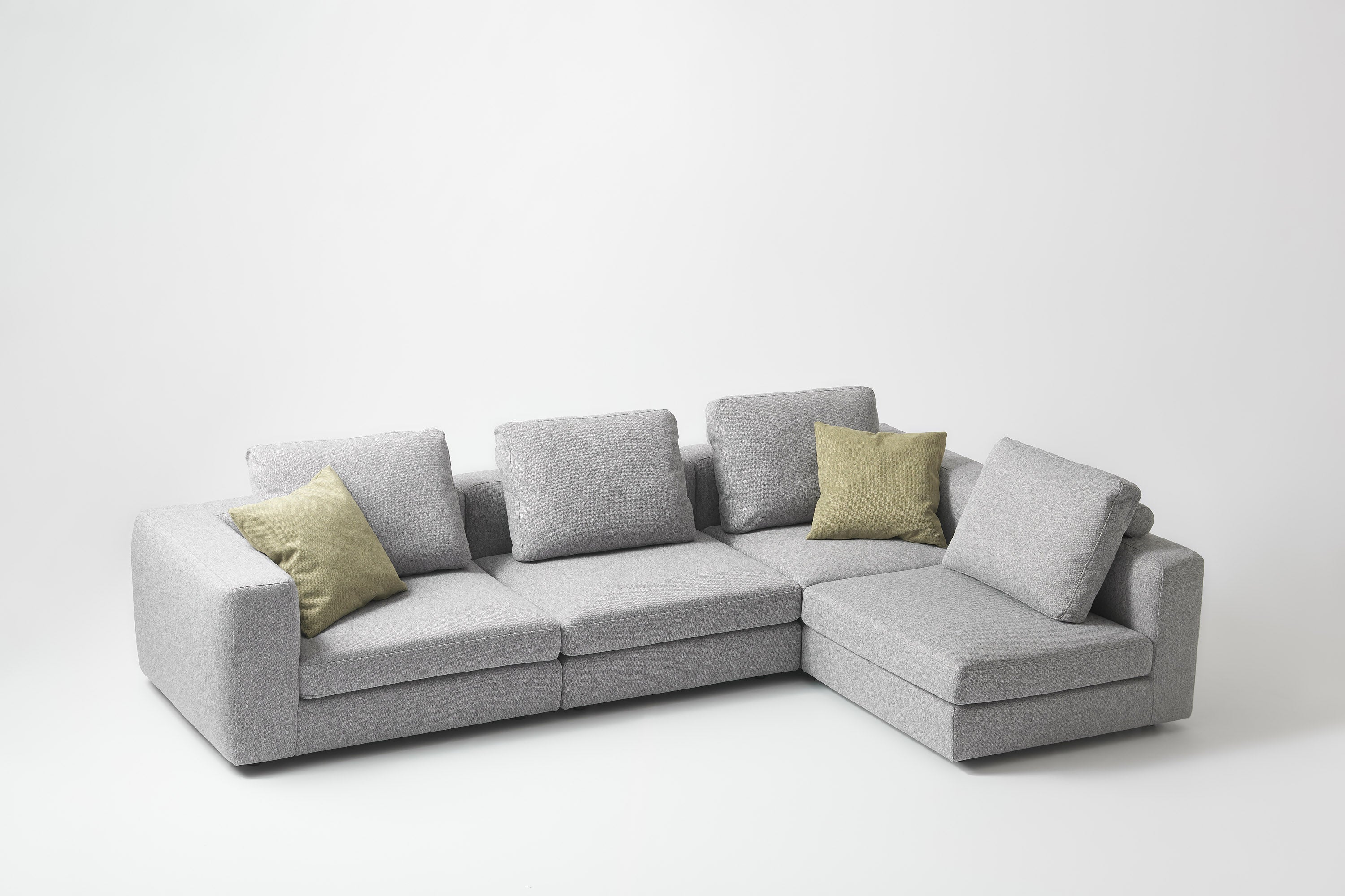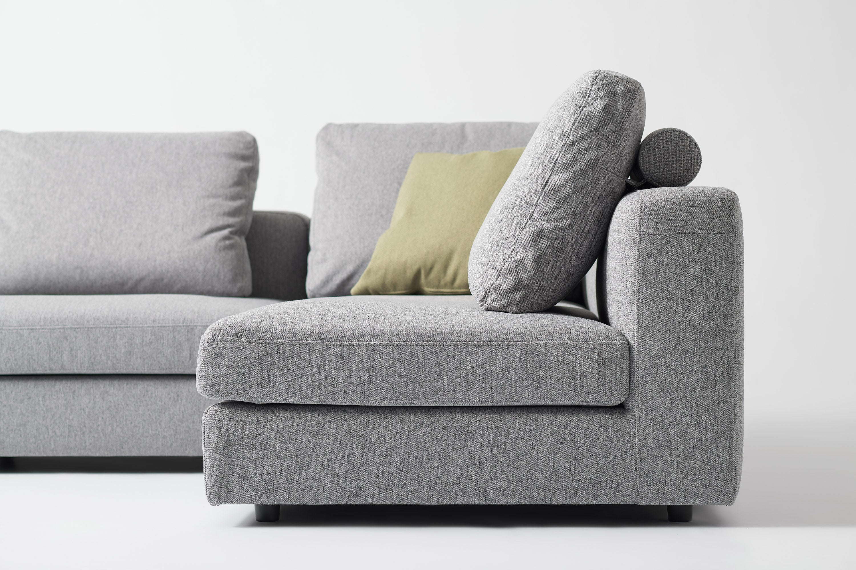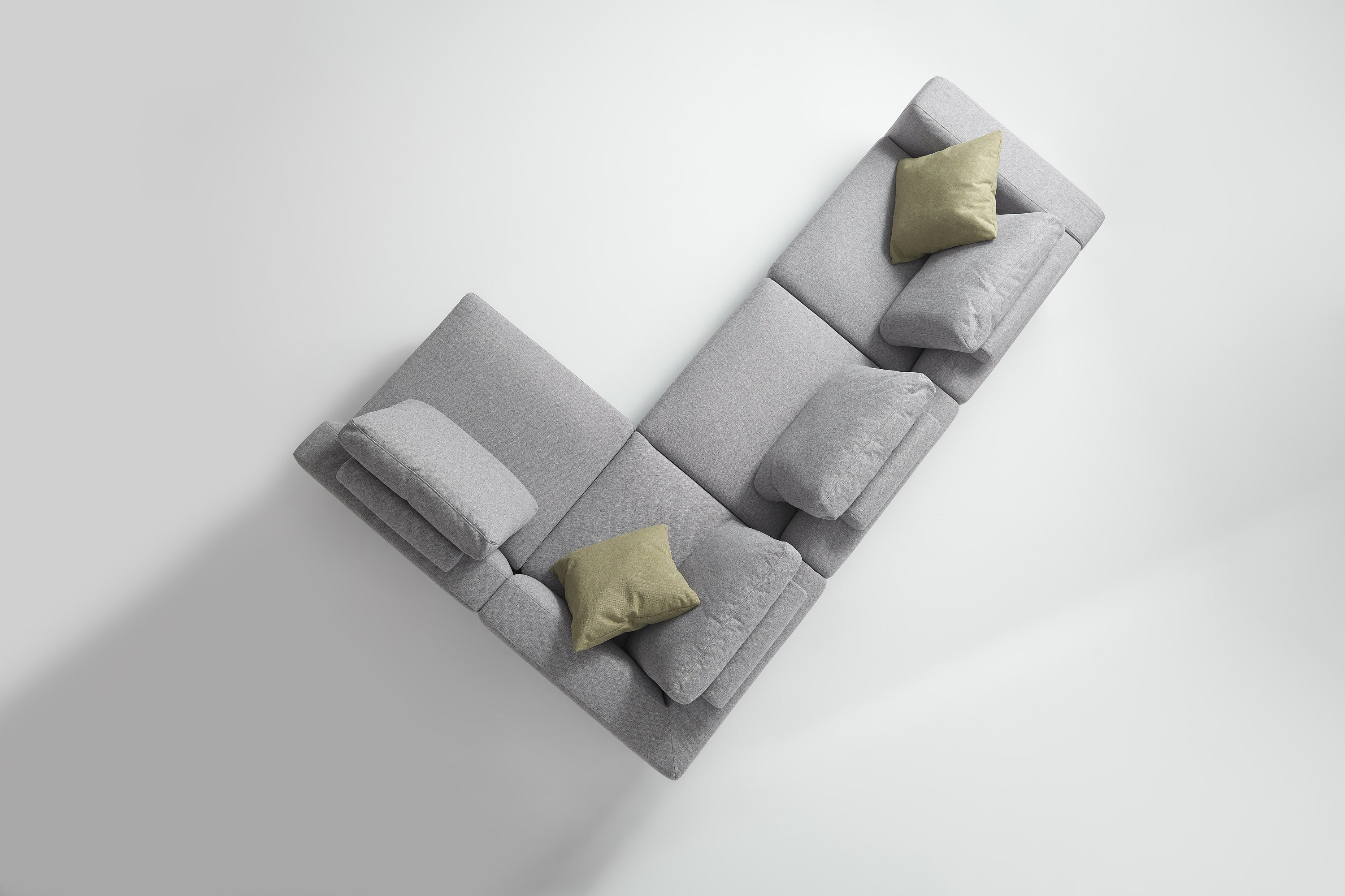 To purchase a modular sofa of this type, please add the following modules to your basket: Left armrest module, Armless module x 2, Corner module right.
