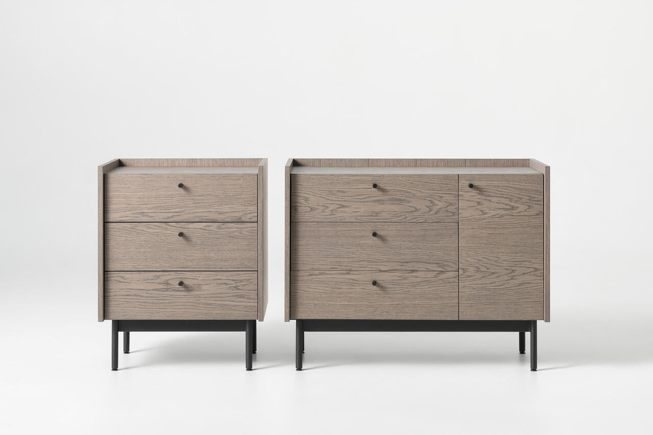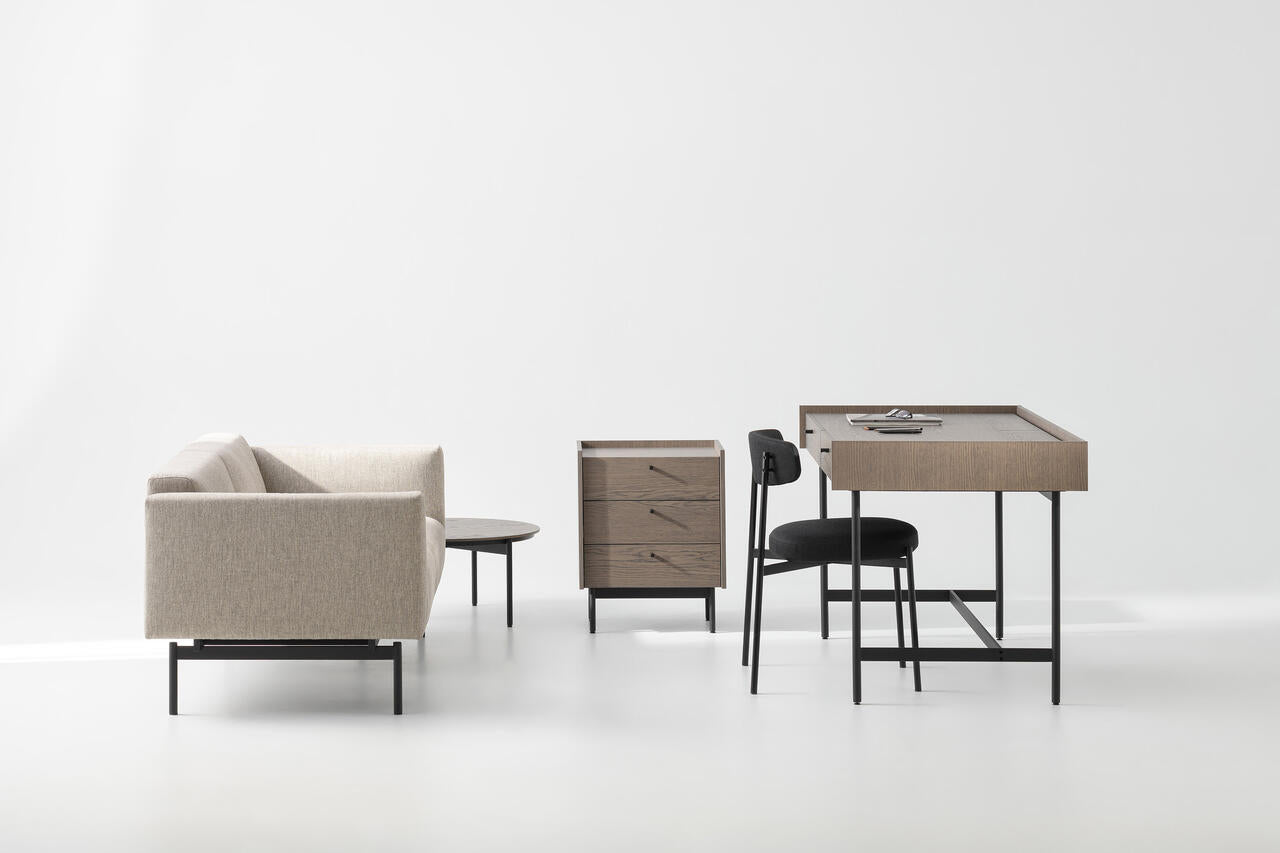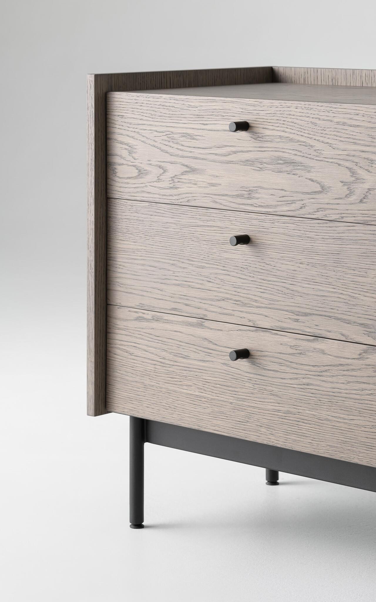 Elevate your home office with the CANELLI sideboard, infusing the space with an aura of lightness and sophistication. Crafted in a minimalist style, this sideboard features a harmonious blend of veneered plates and sleek metal supports.
