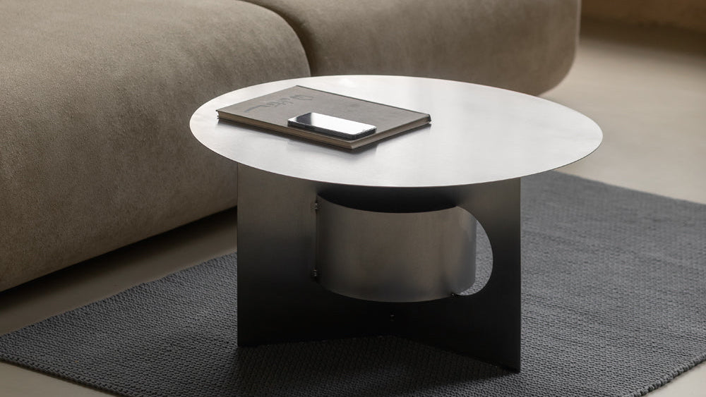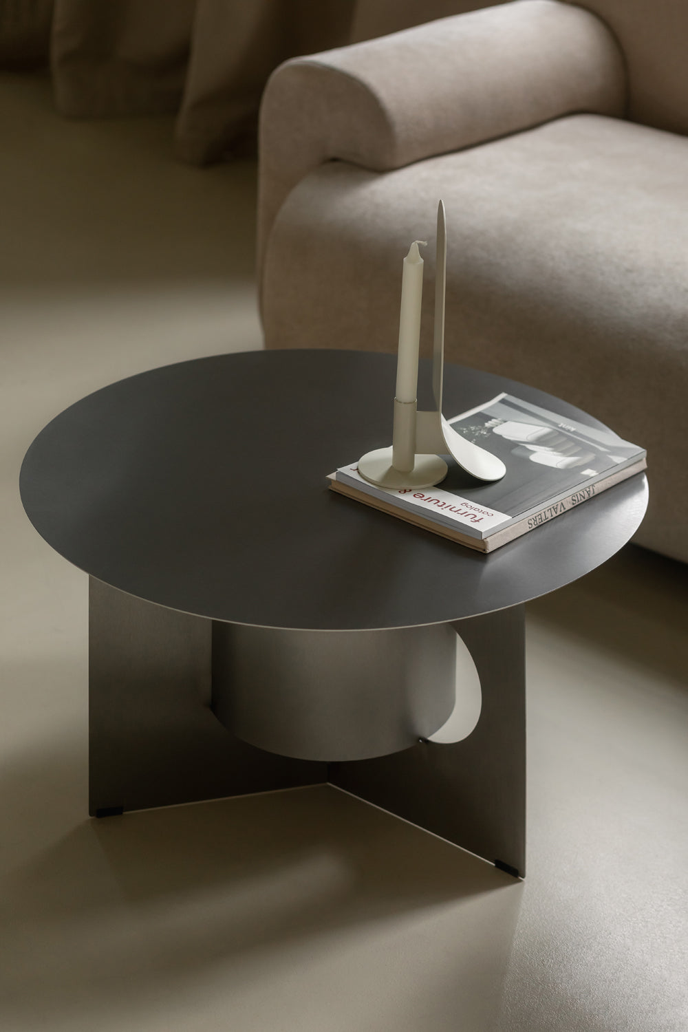 The design concept is based on a visual interplay of planes and space, where flat metal surfaces interact to create a sculptural yet functional object. Through the use of thin but structurally strong metal plates, the designer achieves a distinctive sense of visual lightness, giving the impression that the table has been cut from a single sheet of paper.