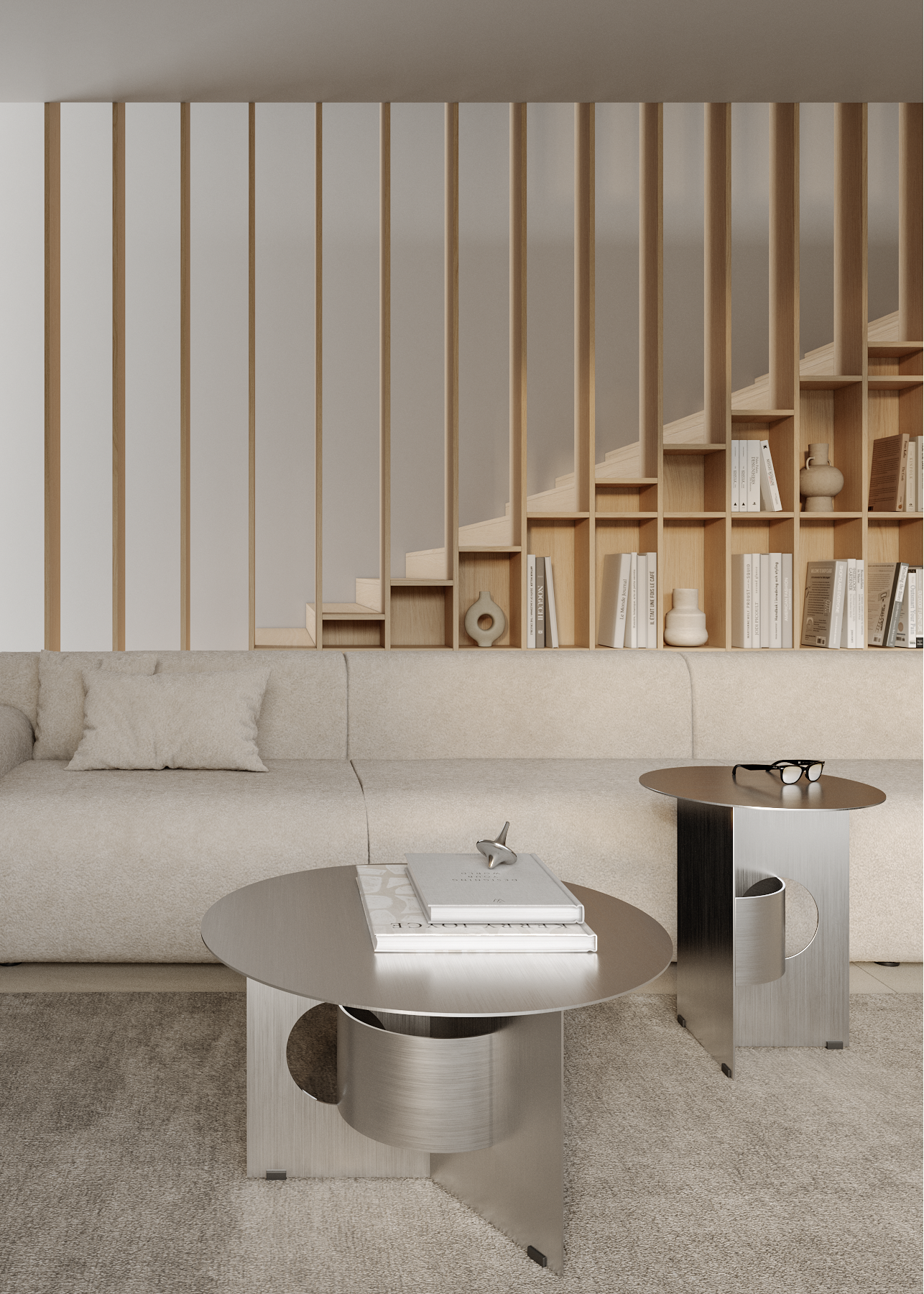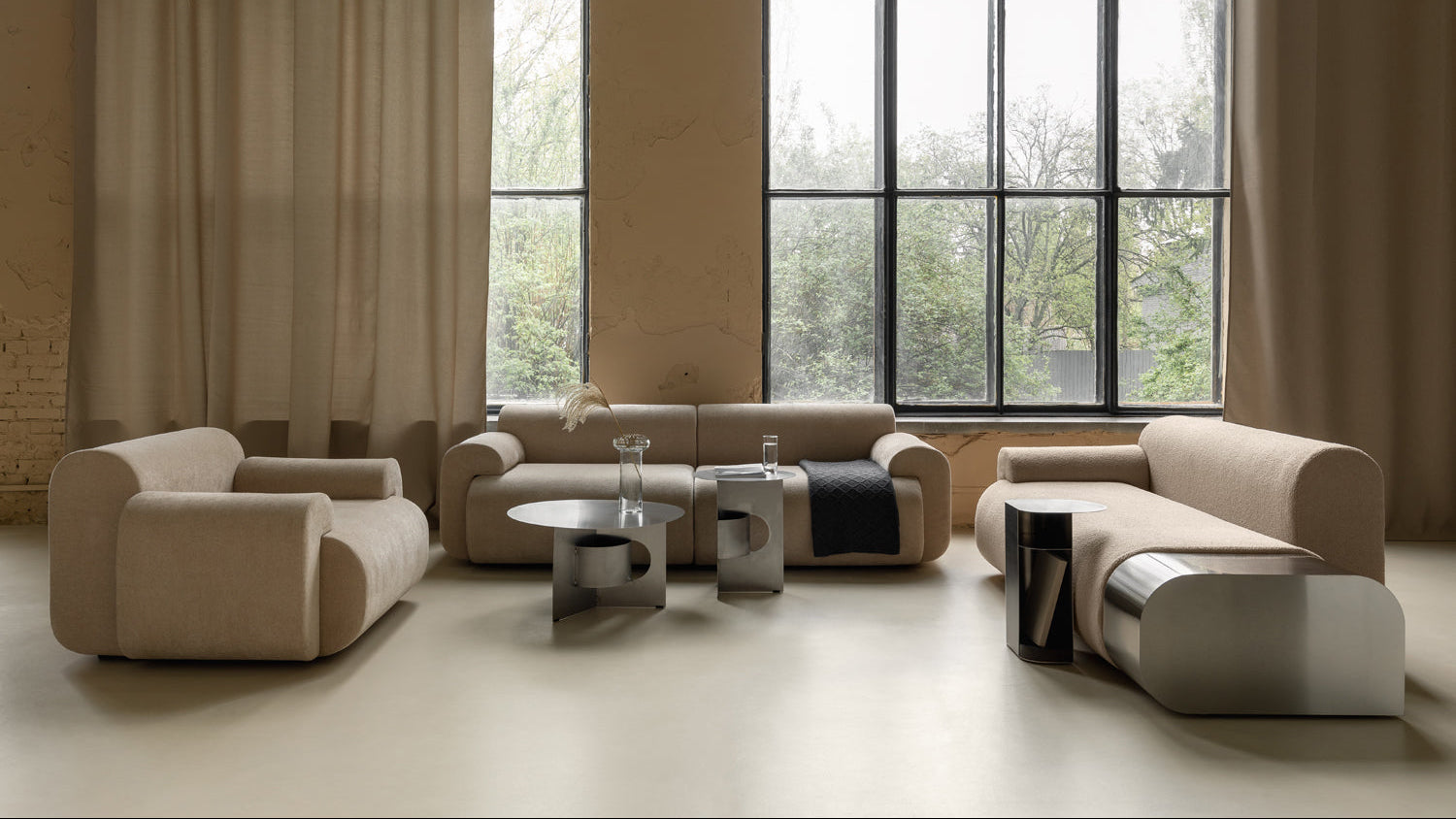 The design is defined by thin yet structurally strong metal plates, arranged to create a clear geometric composition. According to the designer, the form is based on a visual dialogue between surface and space, resulting in a refined structure that appears visually lightweight. The table is available in multiple colour finishes as well as brushed stainless steel, allowing precise coordination with interior palettes and material concepts.