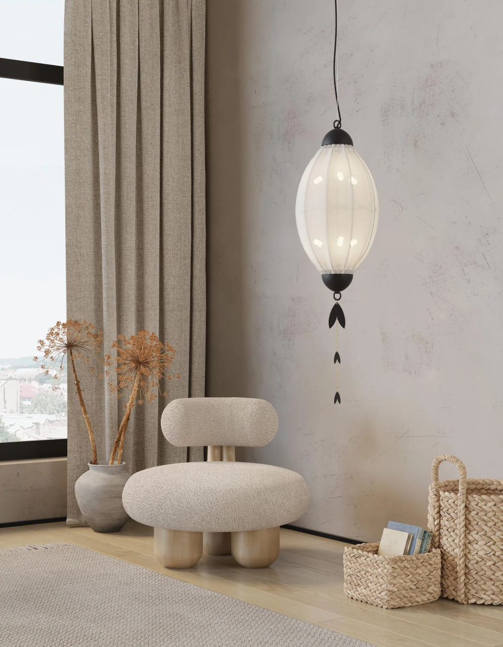 Introducing the Pendant Lamp Chrysalis Vertical, a stunning vertical variant from the Chrysalis series. This lamp not only enhances your space with a sense of lightness but also serves as a beautiful addition to your bedside or reading nook. Explore the variety of fixtures in this collection to mix and match, crafting your enchanting compositions.