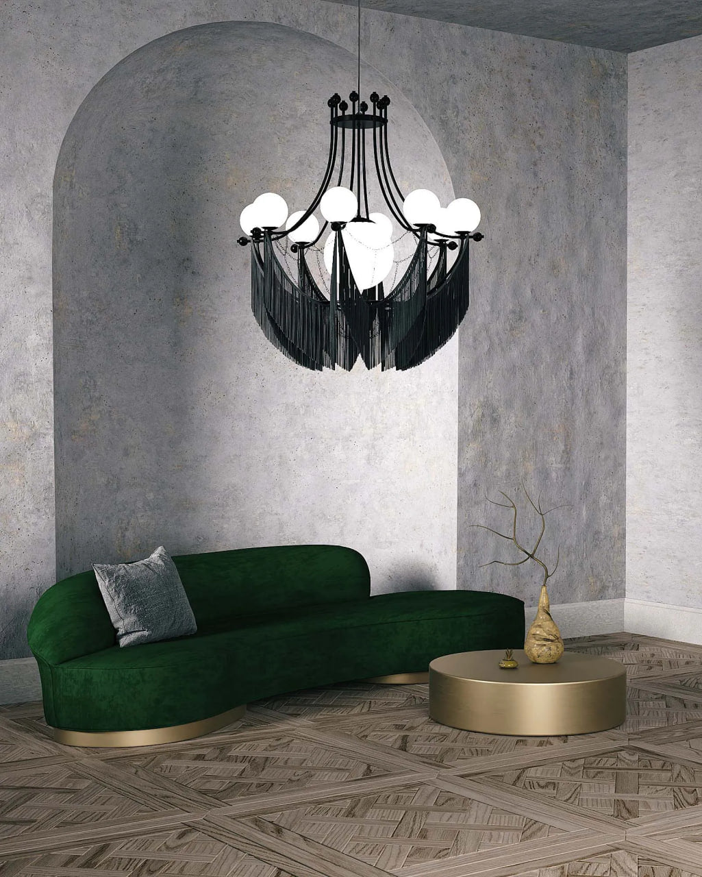 The Clementine chandelier is the epitome of grandeur and elegance. Its impressive size and opulent design make it a perfect choice for spacious private homes with high ceilings, where its full beauty can shine. Ideal for open spaces such as grand staircases, especially circular designs, the Clementine creates a stunning visual from all angles, not just from below.