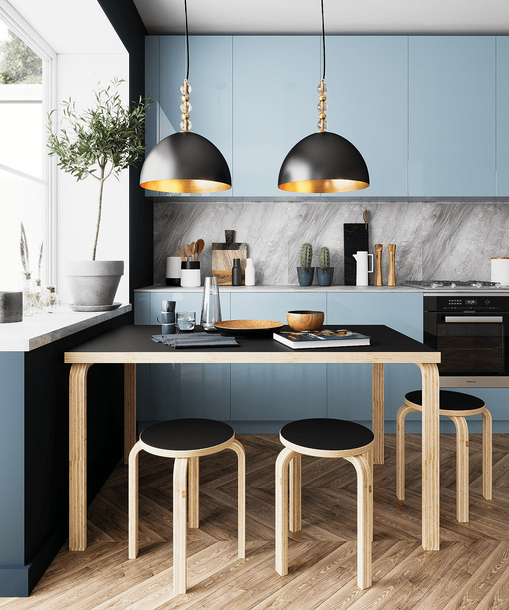 The pendant lamp HEMISPHERE from the KVKZ series, accented with glass and brass spheres, features a brass interior that casts a warm, soft light. Its generous shade shape allows light to diffuse across the room, unlike spotlights, which concentrate light. This pendant is an excellent choice for kitchens or restaurants, bringing unique charm when placed above guest tables and creating a cosy, inviting atmosphere.