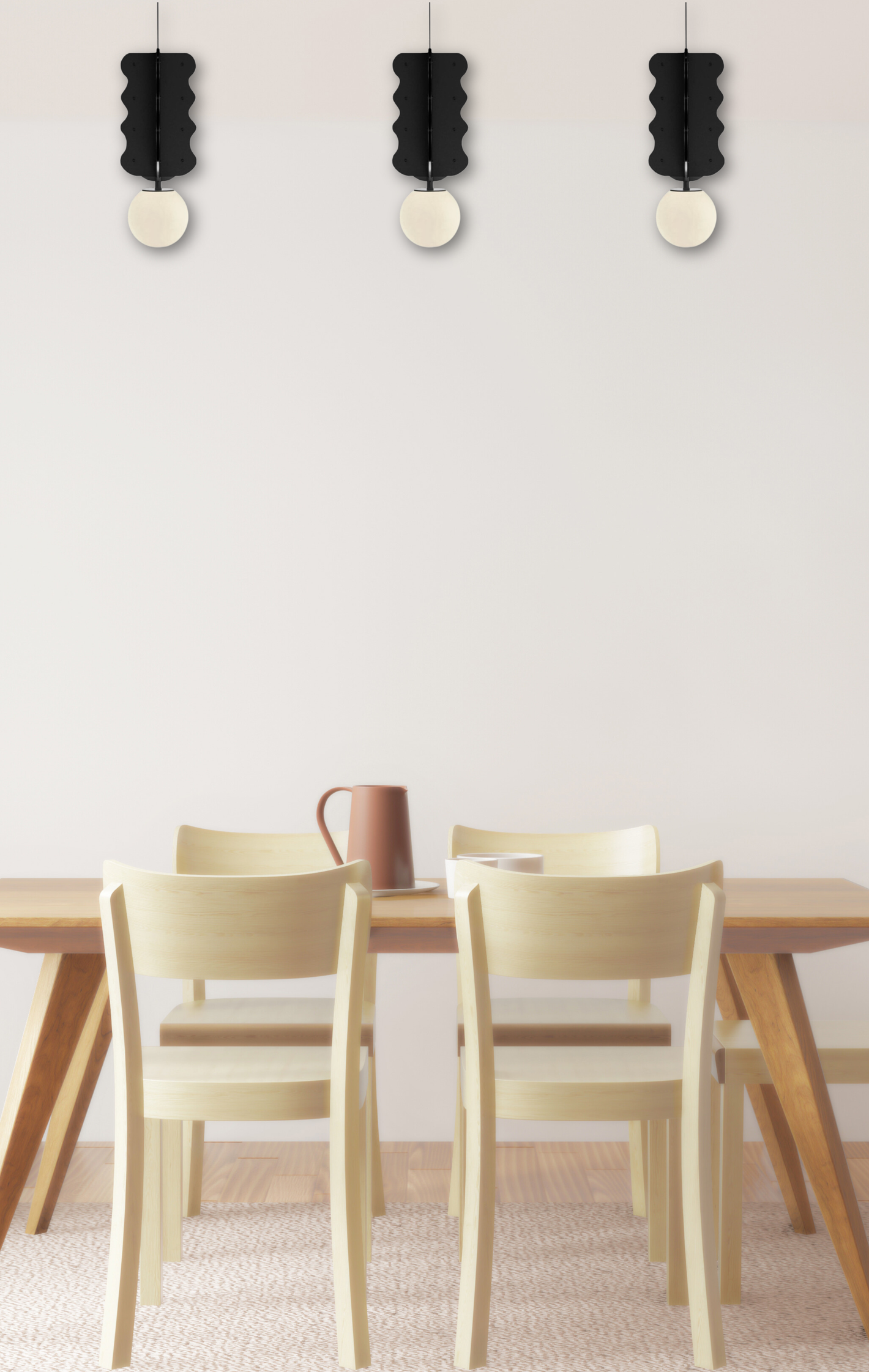 It can be installed above dining tables, kitchen islands, or seating areas, and works equally well in living rooms, bedrooms, or office spaces. Its sculptural form makes it suitable for both central ceiling placement and as a feature in clusters for layered lighting effects.